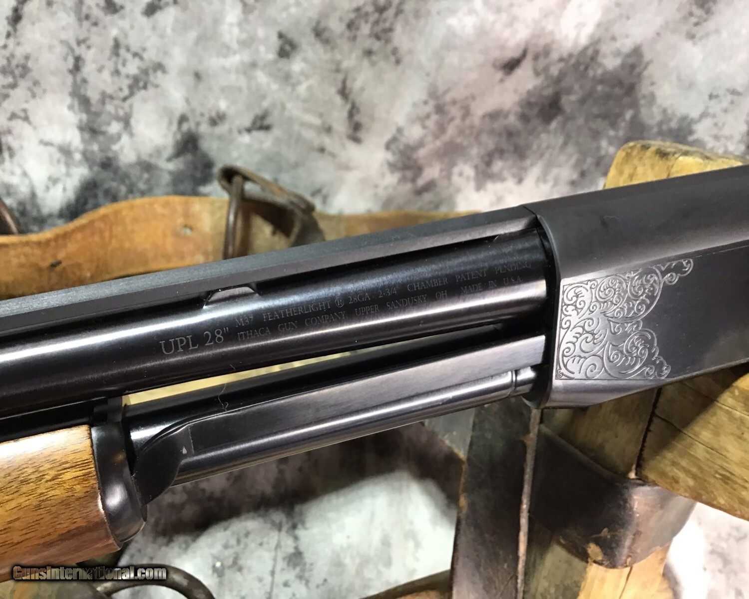 Engraved Ithaca Model 37 Slide Action Shotgun with Case, .28 Ga.