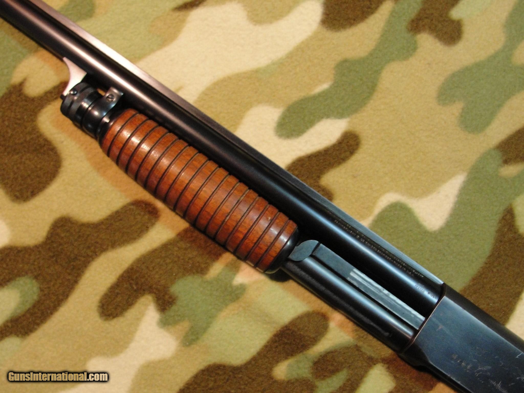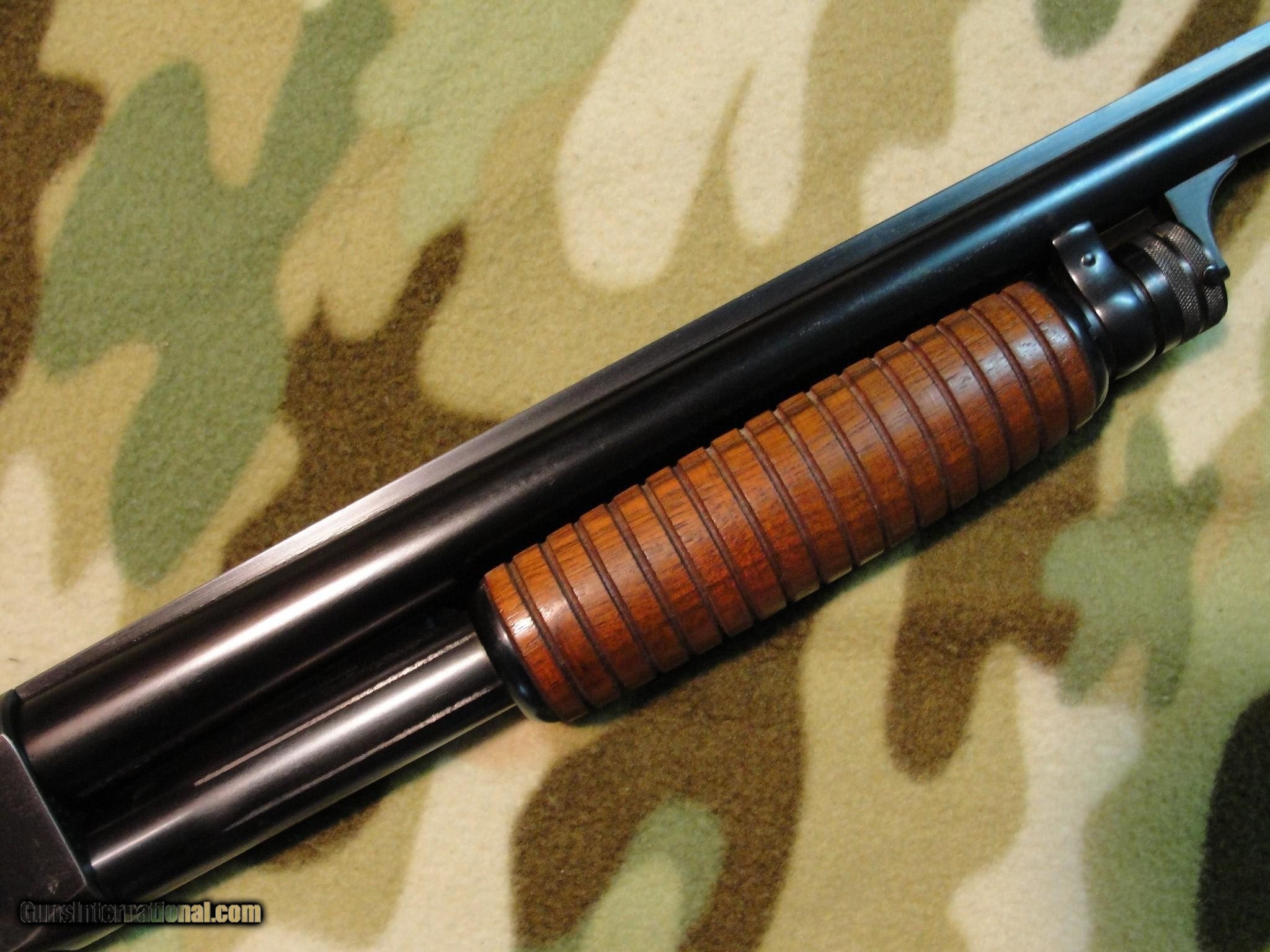 Description: Nice, original 30" FULL choke gun with solid rib and un-cut stock. Has only light handling marks and some high-edge blue wear. Mirror-clean .730 bore choked 0.040" FULL. Barrel# matches the receiver, and everything looks in order, inside and out. Model 37R Featherlight Serial # 5049xx made in 1953. 12ga 2-3/4" chamber. 14" pull over factory butt plate, 2-1/2" drop at heel. Front sight has been replaced, otherwise all appears factory. Used, but certainly not abused. CA OK,C&R OK. Call or email for more info. SOLD Curio/Relic: Yes |