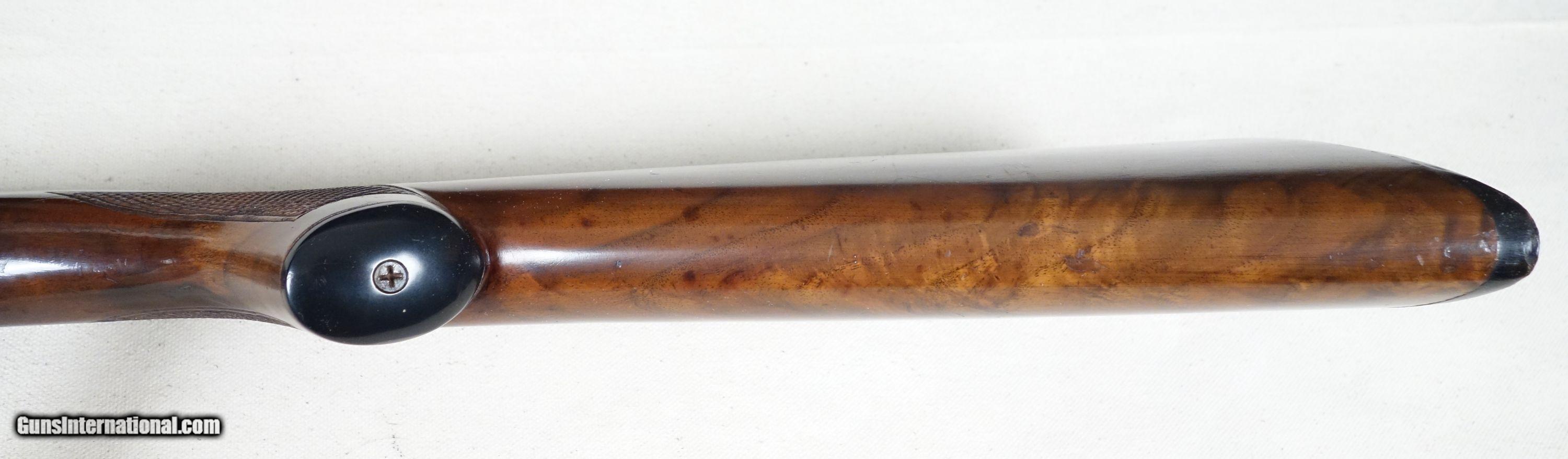 Description: Beautiful Wood Grain on this scarce Ithaca 37S Skeet grade bottom eject pump action shotgun. 28" ventilated rib barrel with modified choke and 2 3/4" chamber. S/N S82*** Mfg. 1948. Condition is 98% Blue over most, with one area of more significant wear on underside of magazine tube. 98% Varnish with some light handling and use marks on butt stock. A time proven and coveted shotgun in an increasingly difficult to find condition and grade. Please click on the top blue "see all listings" button for more exceptional vintage collector arms to be added daily. SOLD Curio/Relic: Yes |