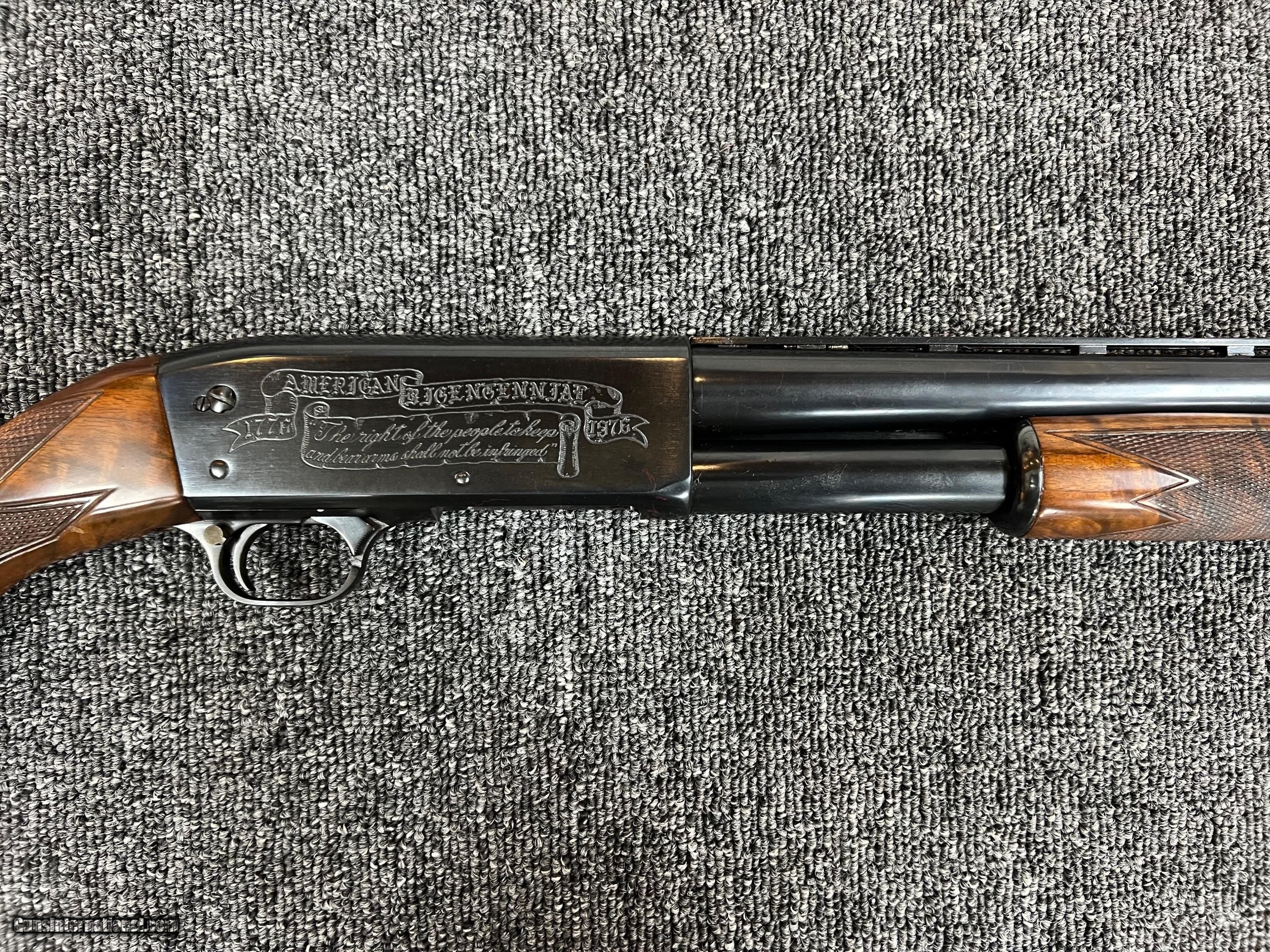 Description: Ithaca model 37 bicentennial edition. 12ga with 28" barrel. This is an unfired model. Metal is like new. Beautiful grain in the wood. A small ding in the wood under trigger guard as pictured. Comes with Ithaca hard case, original paperwork and Ithaca gun belt buckle. $1500...buyer pays shipping and insurance ***NO CREDIT CARD FEES*** W. Johnson Service Inc. 3654 N. Adrian Hwy. Adrian, Mi 49221 SOLD Manufacturer: Ithaca Model: 37 bicentennial Barrel Length: 28” |