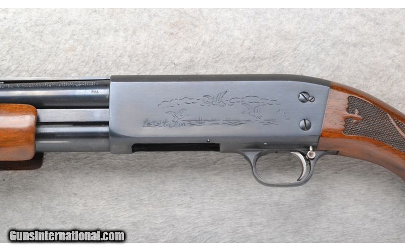 Description: This Ithaca Model 37 Featherlight is a right hand pump action shotgun in 12 Ga. It has a 30 inch ventilated rib barrel. A red high visibility front sight and a metal middle bead sight. With a 2 3/4 inch chamber it has a fixed Full choke. The butt stock is a checkered grip walnut pistol grip with a black cap and home made LOP spacer added. The forearm is a checkered grip walnut. The receiver is nicely engraved with duck and pheasant in flight in an outdoor scene. 12 Gauge SOLD Chambers: 2 3/4 inch. Metal Condition: Very Good. A few minor handling marks Wood Condition: Very Good. Some minor handling marks. Bore Condition: "Clean, bright and shiny. Barrels: 30 inch barrel with a ventilated rib. Stock Dimensions: LOP 15 inches. Has a home made clear plastic spacer added. Fore End: Checkered grip walnut. Butt Pad: Pachmayr White Line black rubber recoil pad. Weight: 7 Lb. 5 Oz. Sights: Red high visibility front. Metal middle bead. Chokes: Fixed Full. Item Location: Richfield, WI |