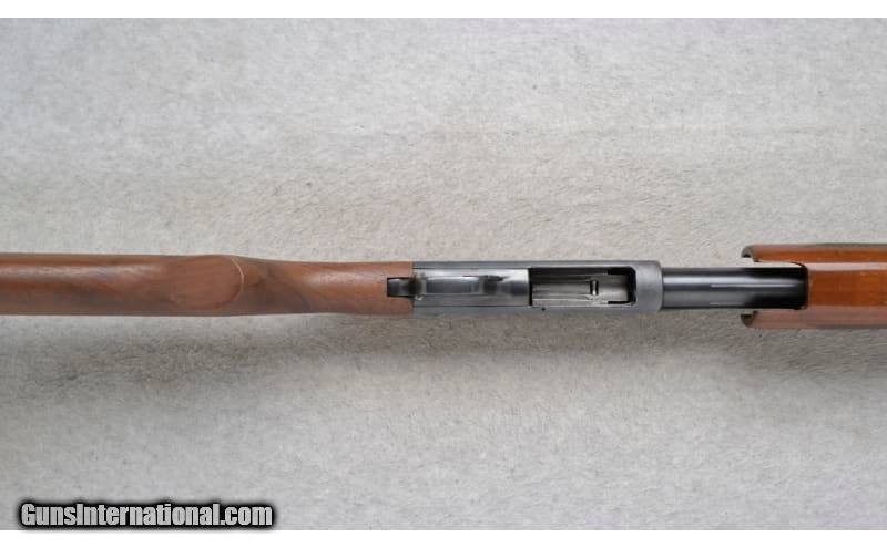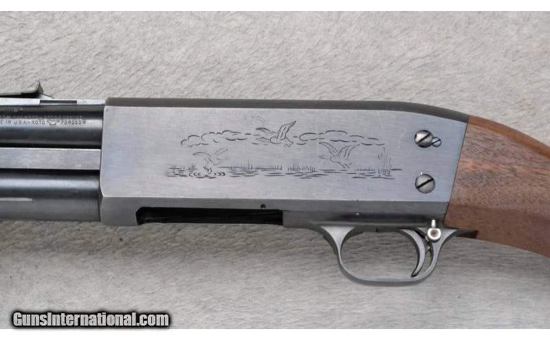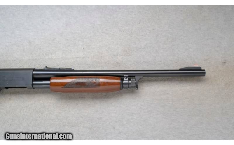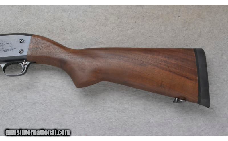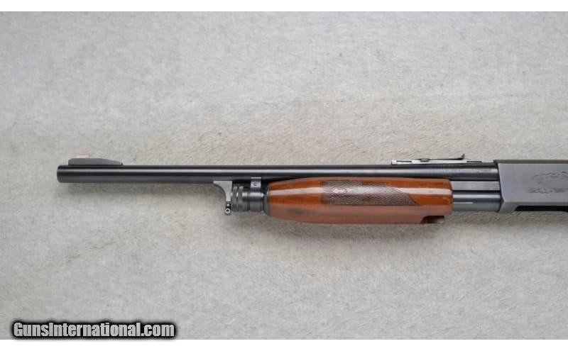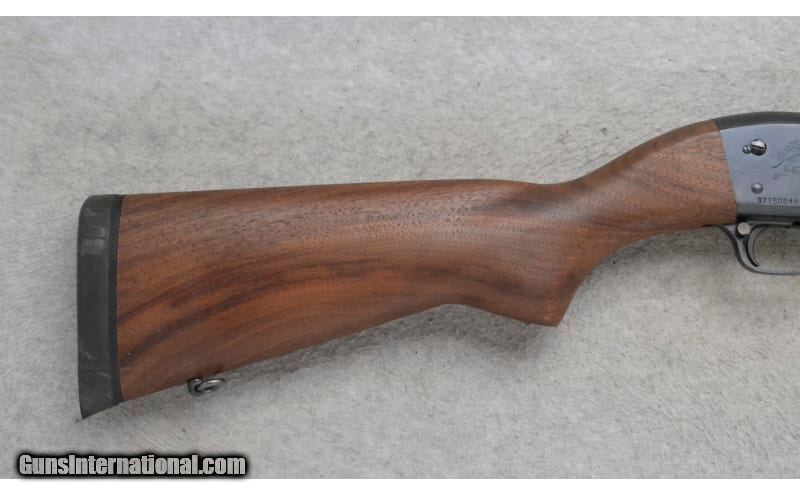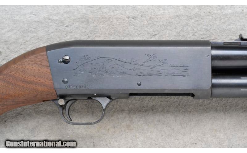 Description: This Ithaca Model 37 Featherlight is a bottom eject pump action shotgun in 12 Ga. It has a 20 inch smooth bore Deerslayer barrel. A raised red high visibility front sight and an adjustable notch middle sight. It is drilled and tapped. The (not original) butt stock is a smooth grip hardwood pistol grip. The (original) forearm is a checkered grip hardwood. The receiver is engraved with ducks and pheasants in flight in an outdoor scene. 12 Gauge SOLD Chambers: 2 3/4 inch. Metal Condition: Good. Has some minor handling/use marks. Wood Condition: Butt stock is excellent. Does not appear to be original. Original forearm has handling/use marks. Bore Condition: Shiny. Barrels: 20 inch smooth bore Deerslayer barrel. Stock Dimensions: LOP 14 1/8 inches. Fore End: Checkered grip hardwood. Butt Pad: Decelerator black rubber recoil pad. Weight: 6 lb. 10 oz. Sights: Raised red high visibility front. Adjustable notch middle. Drilled and tapped. Item Location: Richfield, WI |