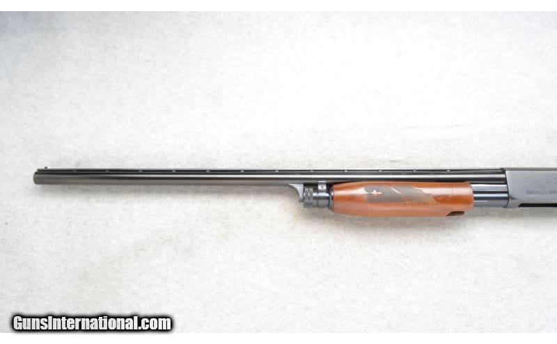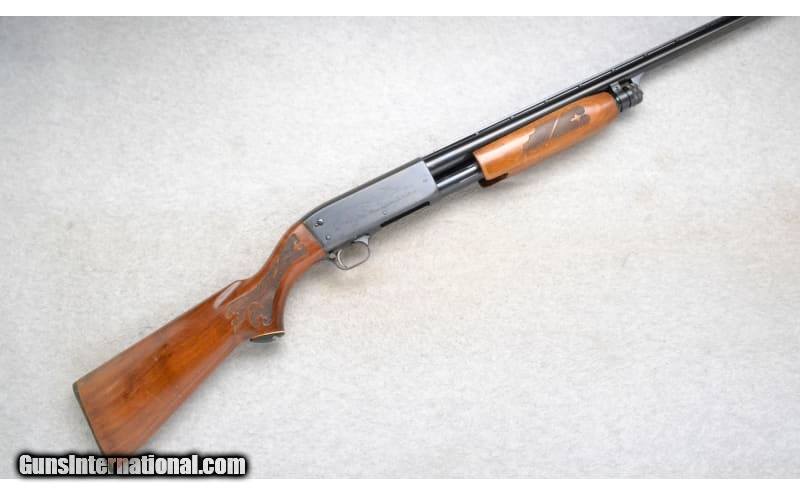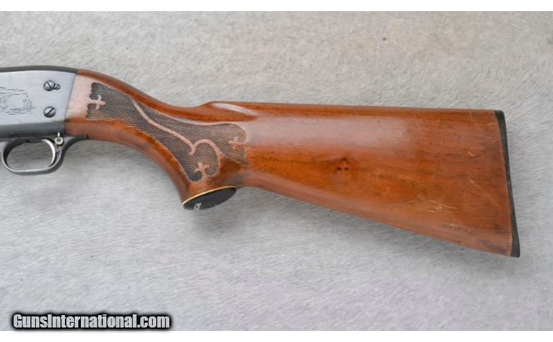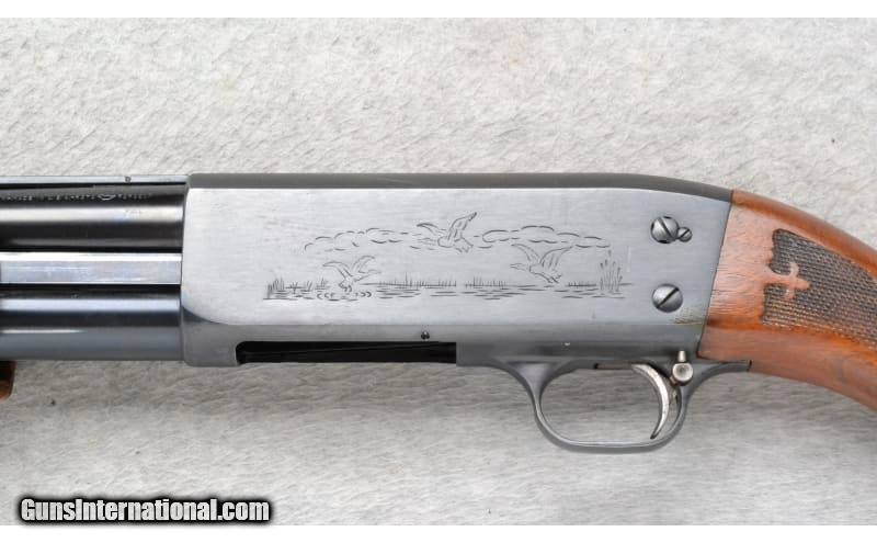 Description: This Ithaca Model 37 Featherlight is a right hand pump action shotgun in 12 Ga. It has a 28 inch barrel. A white bead front sight and a metal middle bead sight. With a 2 3/4 inch chamber it has a fixed Full choke. The butt stock is a checkered grip walnut pistol grip with a black cap. The forearm is a checkered grip walnut. The receiver is lightly engraved. 12 Gauge SOLD Chambers: 2 3/4 inch. Metal Condition: "Good. Light handling marks, freckling and edge blue wear. Wood Condition: Good. Light handling marks and wear. Bore Condition: Shiny. Barrels: 28 inch barrel with a ventilated rib. Slug Barrel. Stock Dimensions: LOP 14 inches. Fore End: Checkered grip walnut. Butt Pad: Ithacagun checkered black plate. Weight: 6 lb. 14 oz. Sights: White bead front. Metal middle bead. Chokes: Fixed Full. Item Location: Richfield, WI |