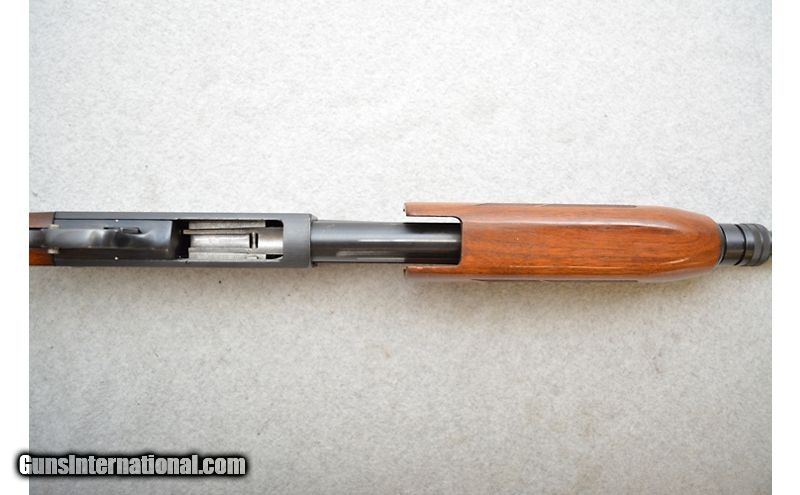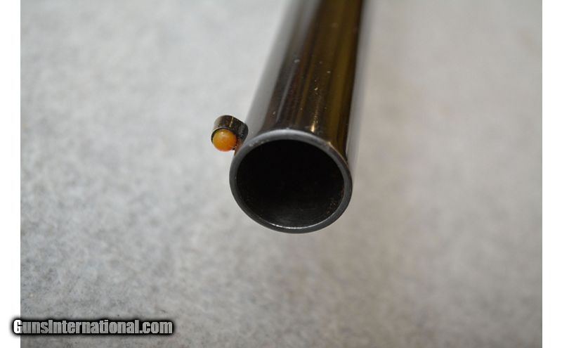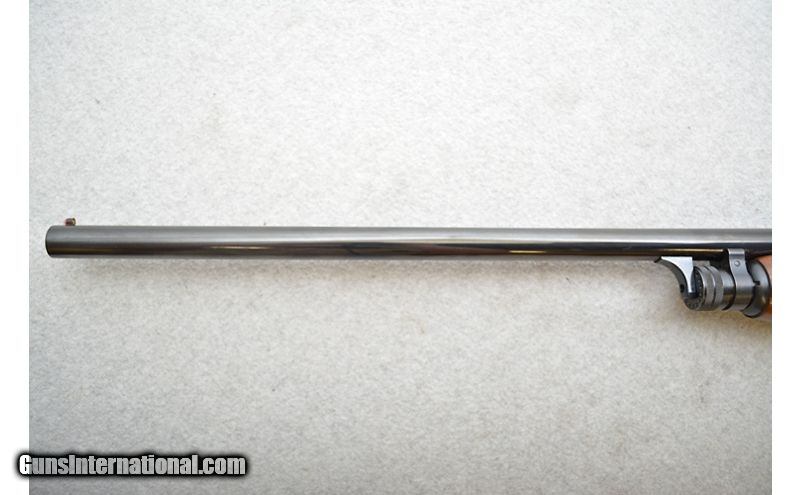 Description: Great shape overall but perfect. The metal has a short surface scratch here and there though none worth individual note. The top of the receiver has a number of light handling marks though they all seem to be from just being used. The outer bottom edges of the receiver have marks where the metal shows through the finish. The barrel appears to have been reblued. Just like the metal, the furniture shows signs of days spent in the field or blind. The lions share of marks are found on the left of the butt stock and thinned finish on the right. 12 Gauge SOLD Chambers: Pump action fed from a tubular magazine chambering up to 2¾" shells. Metal Condition: Good. Wood Condition: Good. Bore Condition: Excellent. Barrels: 28" Blued. Triggers: Blued metal with smooth face. Stock Dimensions: Fleur de lis style checkered hardwood with 14" LOP. Fore End: Fleur de lis checkered side panels on hardwood. Butt Pad: Black plastic plate with the Ithaca logo. Weight: 6lbs 12oz Sights: Red front light bead. Chokes: Fixed modified choke. Item Location: Green Bay |