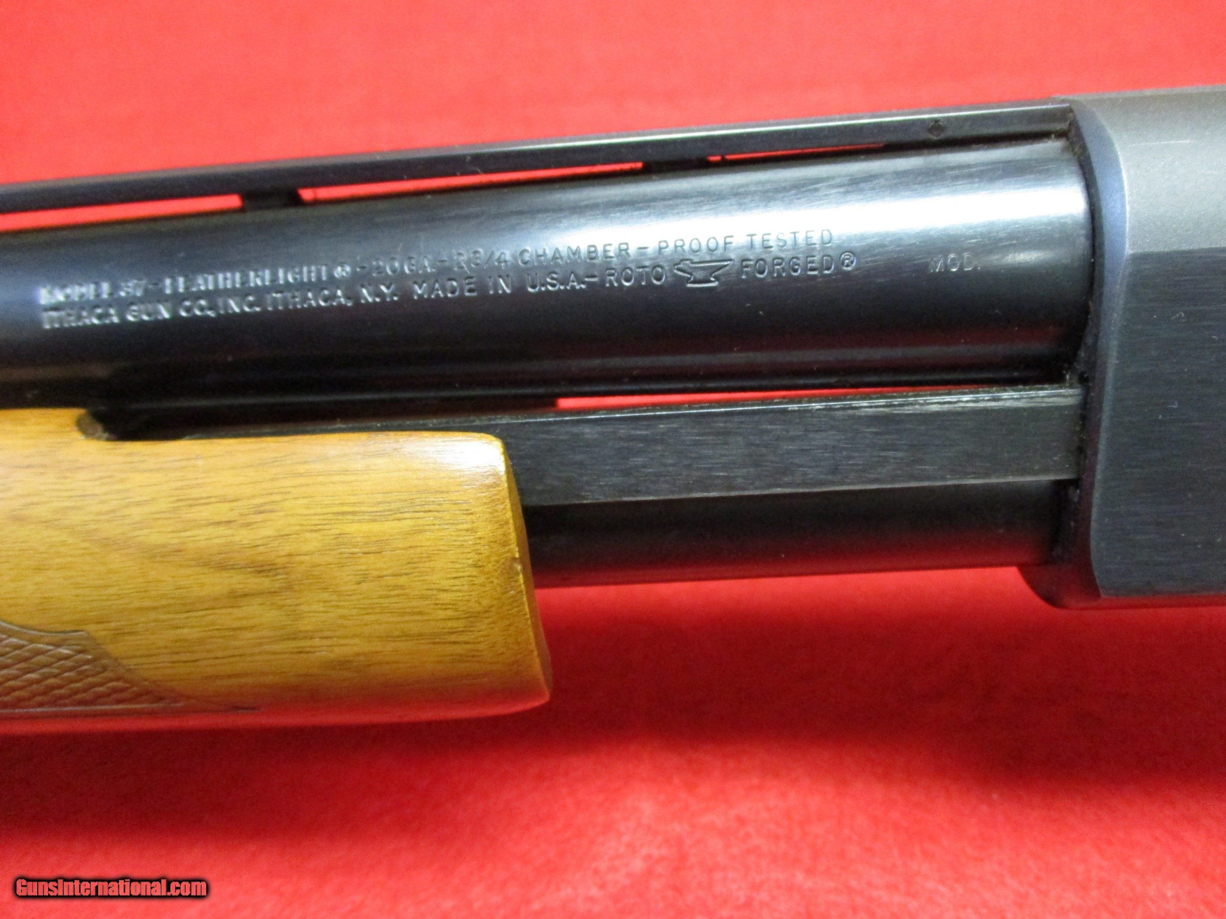 Description: The Ithaca Model 37 is one of the original classic shotguns along with the Remington Models 31, and 870, and the Winchester Models 1897 and 1912. It was based on a 1915 patent by the famous John M. Browning, initially marketed as the Remington Model 17. Introduced in 1937, the 37 was an immediate hit in part due to the nature of its operation. Unlike most pump shotguns which eject shells to the side, the 37 ejected its spent shells downward through the same port shells were manually loaded into the magazine from. This enabled both left and right-handed shooters to operate the 37 with equal ease, without the former having to deal with empty shells hitting them in the face. The Featherlight model featured a walnut stock and forearm with cut checkering, light receiver engraving, and a smoothbore barrel (modified choke) with orange fiberoptic front sight. The use of a fiberoptic makes it easy to see the front sight at dawn or dusk. The bore is in excellent condition. The bluing is in excellent condition on both the barrel and receiver. The only spot of bluing loss is a short strip on the right side of the barrel. The buttstock has a mar on the right side. According to research, the serial number indicates this example was manufactured in 1976. Considering what this shotgun has been used for since then, it is in good condition and would make an excellent hunting weapon. The Model 37 was found to be reliable in even the worst of conditions and was utilized by the U.S. military in World War II, Korea, and Vietnam. They have also seen extensive use with law enforcement. As a testament to the 37’s popularity and quality, over two million have been produced since it was introduced. SOLD Manufacturer: Ithaca Model: 37 Featherlight Serial Number: 371578949 Chambers: 2.75 inches (70mm) Condition: Used - Excellent Action: Pump Action Triggers: Single Gauge Info: 20 Stock: Checkered Wood Stock Comb: 1.5 inches (38mm) Stock Heel: 2.25 inches (57mm) Fore End: Checkered Wood Butt Pad: Vent Rubber LOP: 14.75 inches Sights: Orange Fiber Optic Front Bead Manufacture Date: c. 1976 Chokes: Fixed - Modified Engraving: Standard |