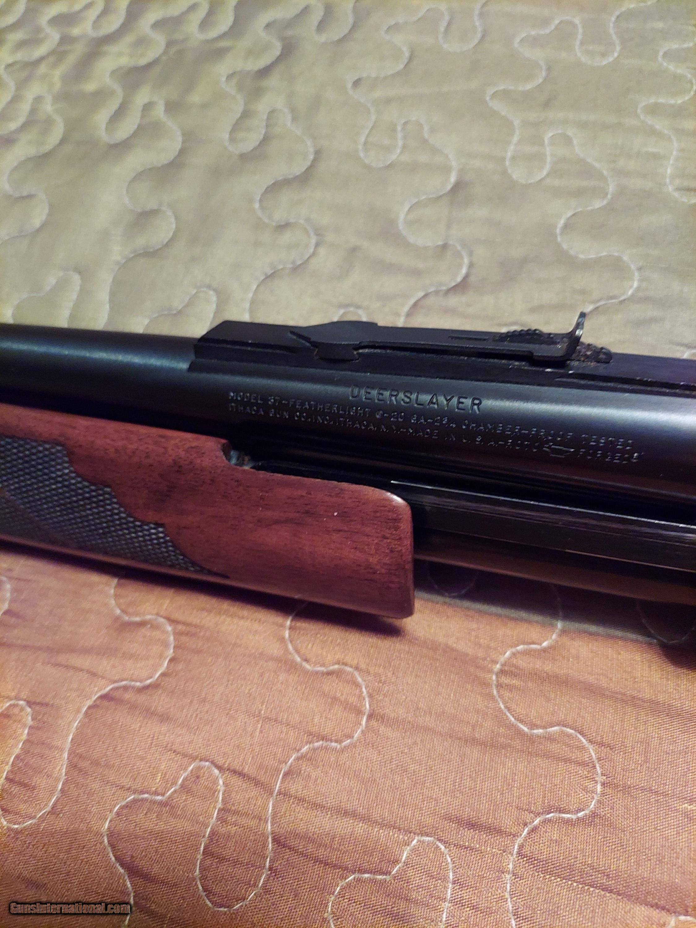 Description: Ithaca 37 Featherlight 20ga Deerslayer 2 3/4" chamber 20" barrel Ithaca recoil pad in Excellent all original condition. Nice piece for vintage collector. SOLD |