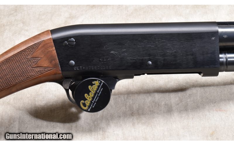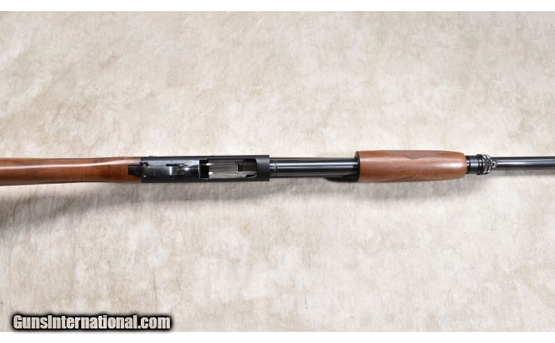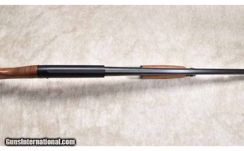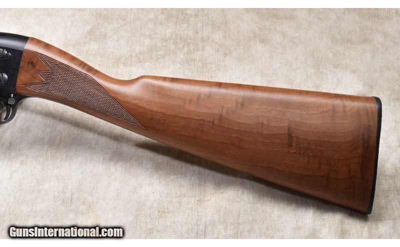 Description: Very light pump shotgun with straight grip walnut stock, and bottom ejection for ambidextrous shooting. The stock itself is a better grade of walnut and shows some figure. It has been used a bit, but it doesn't show much. 20 Gauge SOLD Chambers: "4+1 capacity (unplugged), 2-3/4 or 3-inches Metal Condition: Excellent. Wood Condition: Excellent. Bore Condition: Shiny and bright. Barrels: 26 inches Triggers: Factory trigger. Stock Dimensions: LOP: 13-1/4 inches Fore End: Hand-filling matched walnut. Butt Pad: Black plate. Weight: 5 LB - 4 OZ Sights: Ventilated rib with white beads. Chokes: "Two barrels one has screw-in choke, second has a fixed IC choke. Item Location: Rogers |
