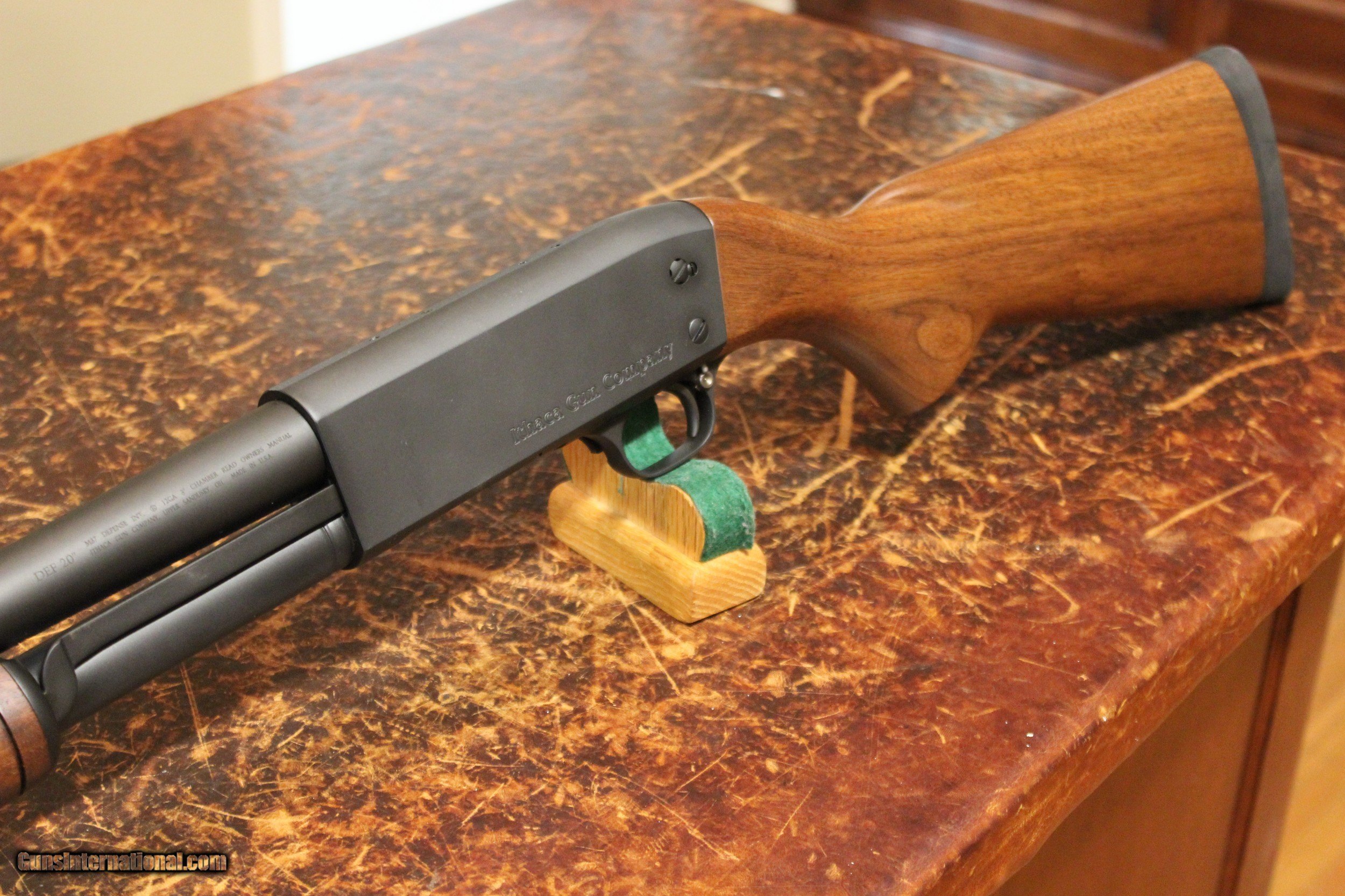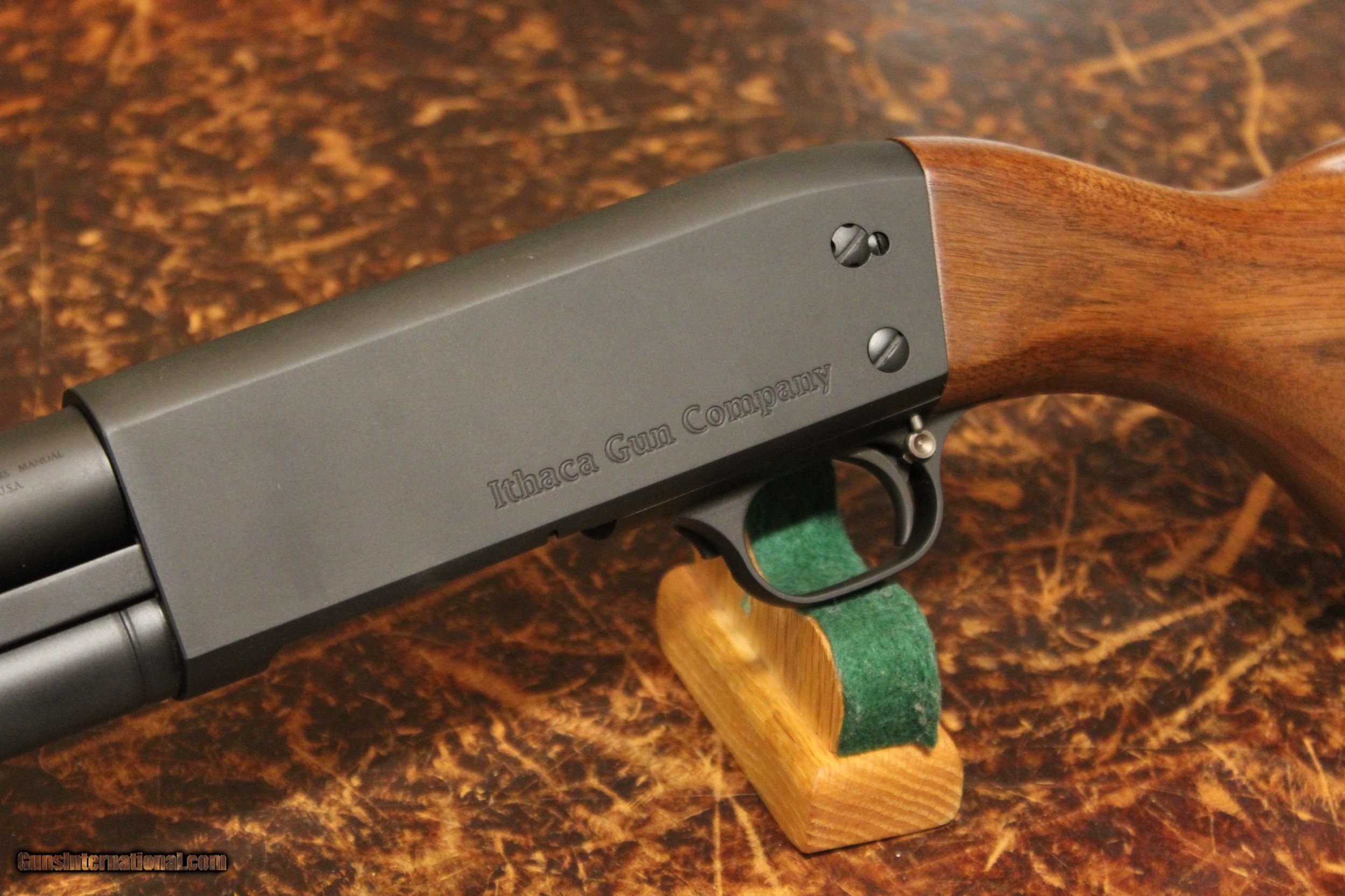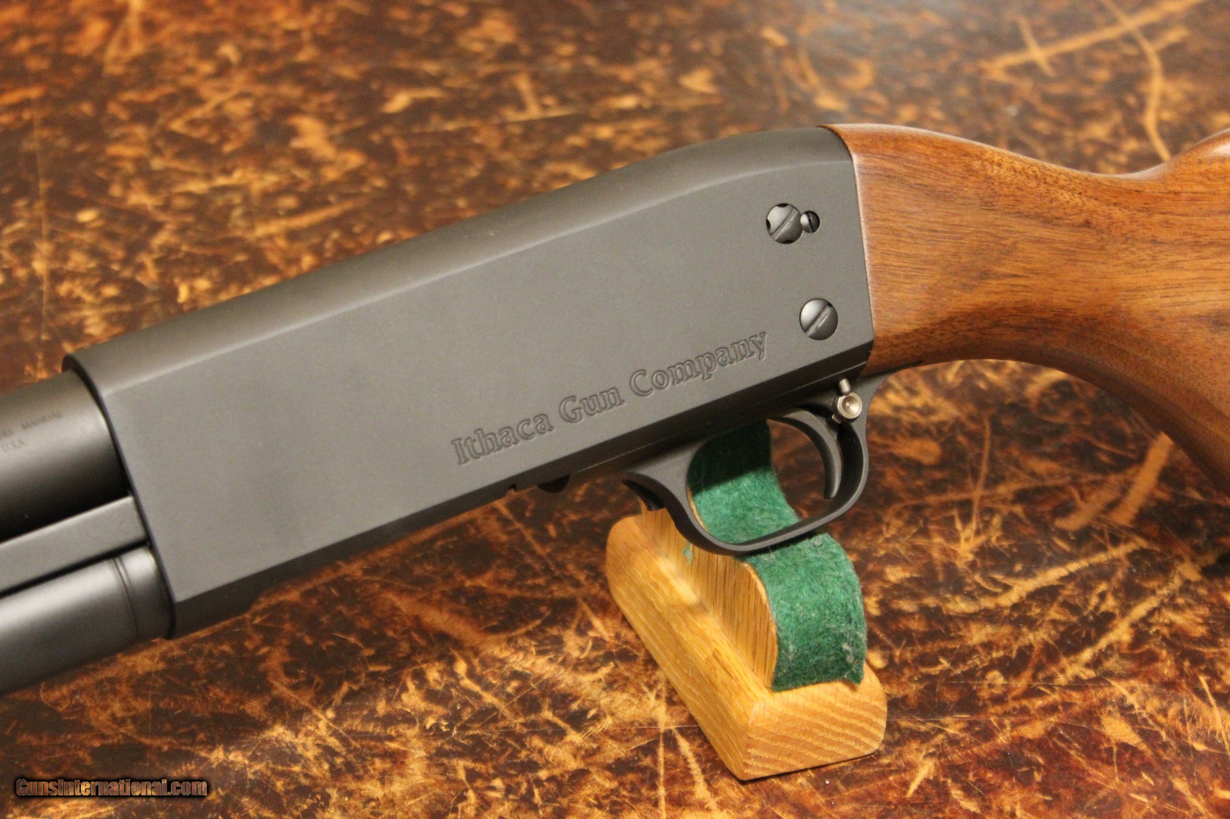 Description: Ithaca model 37 Defense model 12ga. with 20" barrel and 8 shot capacity. Black walnut wood stock and forend. 7.1lbs with decellarator pad 13 3/4" LOP. 3" chamber OHIO mfg. matte finish blue and satin wood.Receiver top is drilled and tapped for optic mount. SOLD |