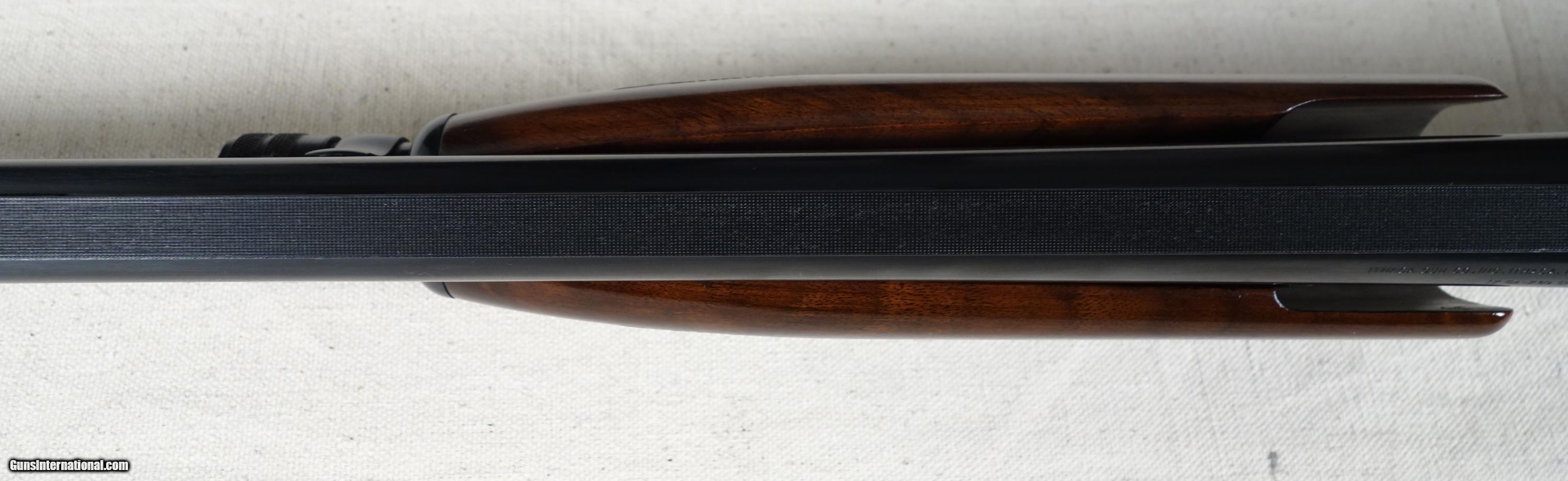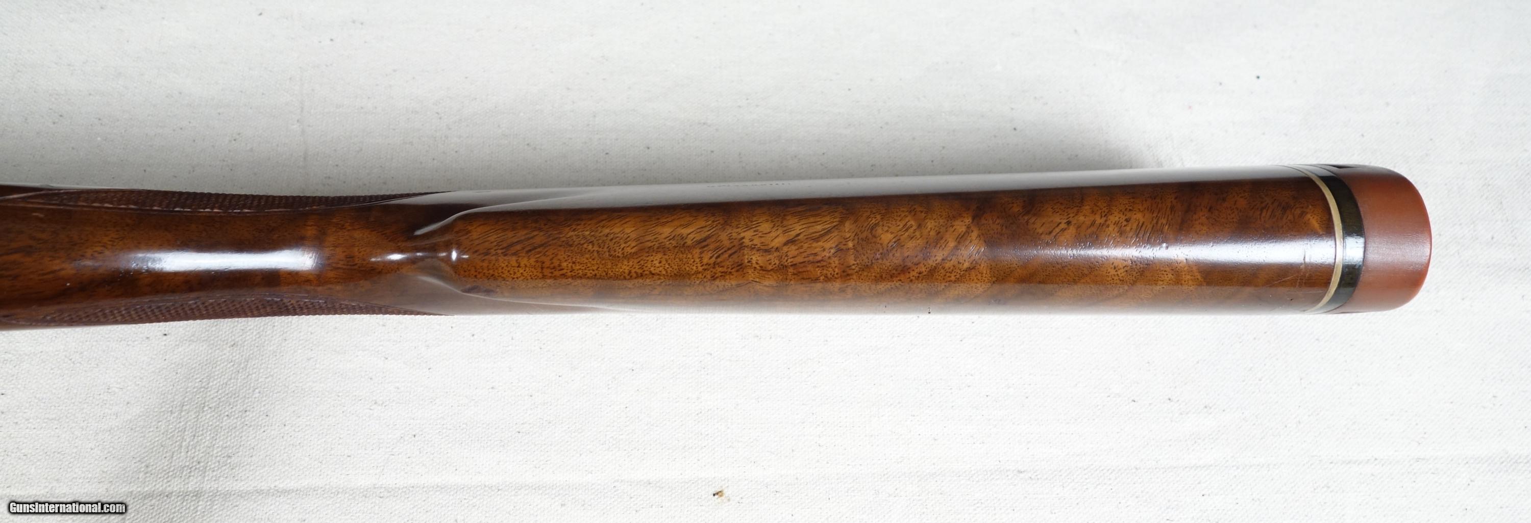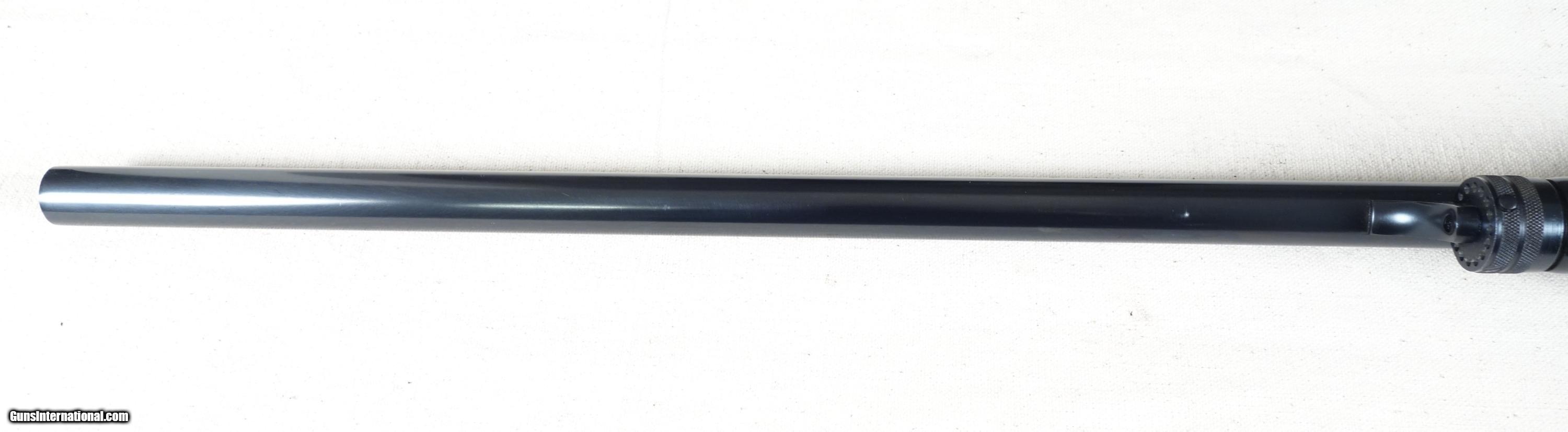 Description: Beautiful Ithaca 37 T Trap Grade 12 Ga. with 30" Ventilated Rib Barrel and factory deluxe figured wood. Full Choke. 2 3/4" Chamber. Receiver is factory engraved with tasteful, conservative scenes of waterfowl on left side and a bird dog with pheasants on right. Equipped with factory issued sunburst pad. S/N 89*** Mfg. 1948. Bluing 98%, Varnish 98% with only superficial handling marks on either. 100% original. An excellent example of a scarce configuration shotgun. SOLD Curio/Relic: Yes |