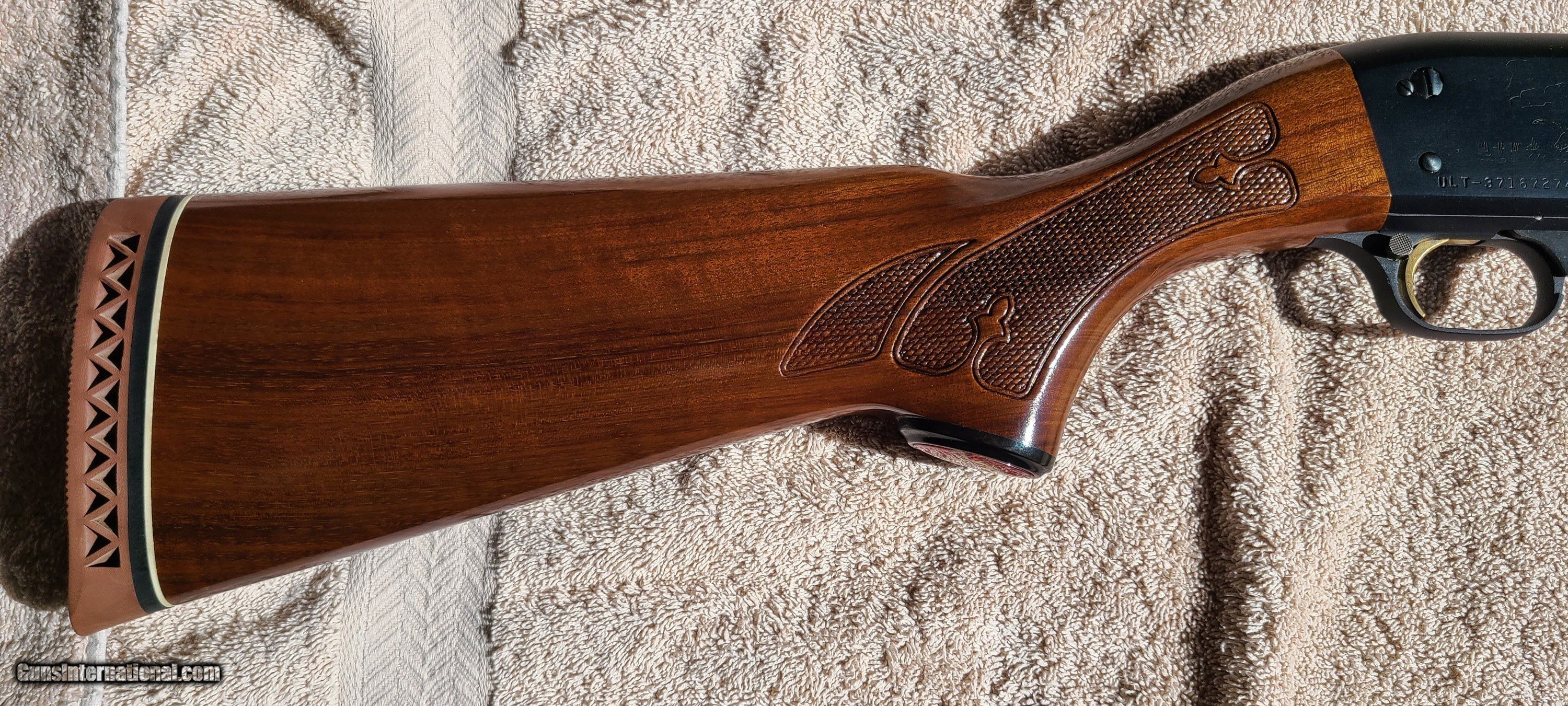 Description: Reduced! Ithaca model 37 Ultra Featherlight 20 guage. 25" vent rib barrel with modified choke. This gun is in outstanding condition. $950 cashiers check or postal money order Please ad $50 for shipping from my FFL to your FFL. No International sales. It is the buyers responsibility to verify it is legal for them to own this gun. SOLD Shotgun Gauge: 20 Gauge Manufacturer: Ithaca Model: Ultra Featherlight Serial Number: ULT - 371672xxx Bore: 20 guage Chambers: 2 3/4 Condition: Excellent Metal Condition: Excellent Wood Condition: Excellent Bore Condition: Excellent Barrels: 25 Barrel Type: Vent rib Action: Pump Stock: Excellent LOP: 14 1/16 Weight: 5 Sights: Orange Ithaca Chokes: Modified Engraving: Wildlife Case: Plastic Item Location: MN |