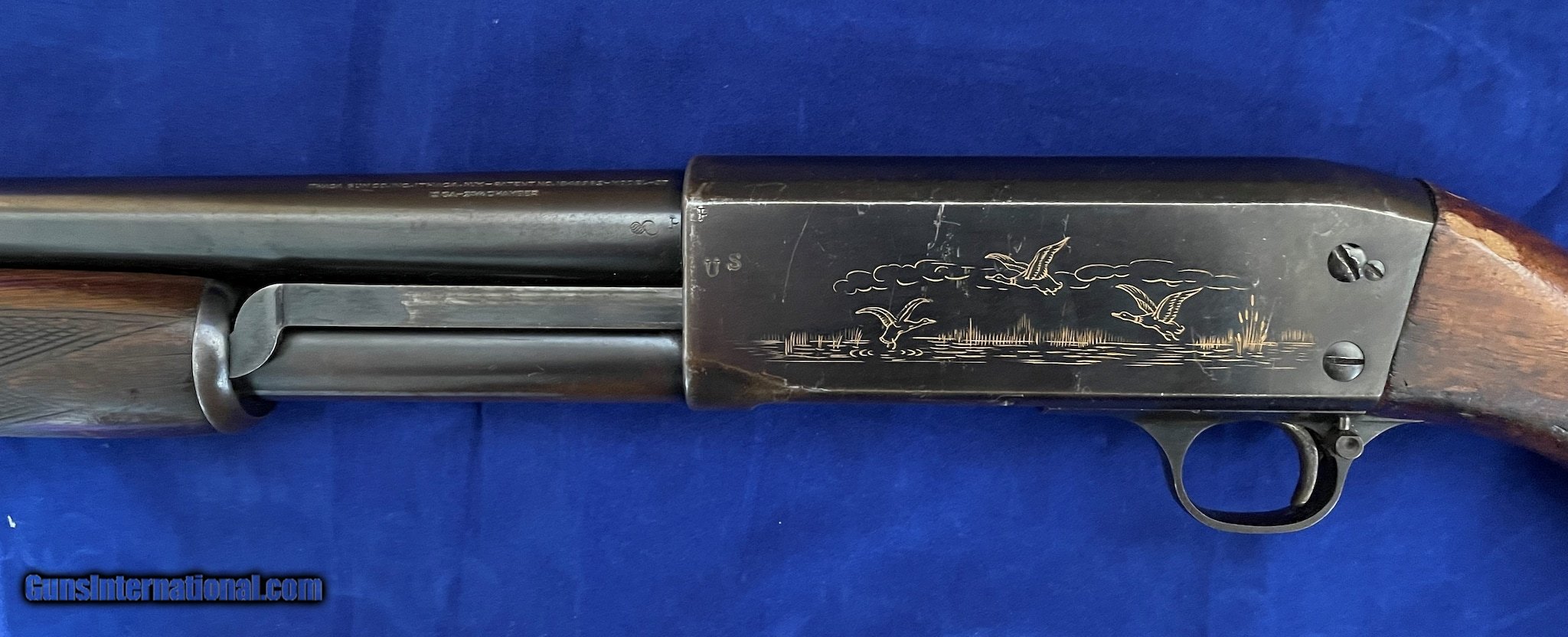 Description: Guns Listing ID: 524273 This listing is for an Ithaca Model 37, pump action, 12 Gauge Shotgun. This Ithaca has the \"Dog & Pheasant\" scene engraved on both sides of the gun. It also has a \"US\" stamp on the side of the receiver, and a \"P\" which I believe stands for a Proof mark. The US stamp should indicate that this was one of the \"Model 37 Riot Guns\" that we made for the US government. All the research I have done indicates that the riot guns were all 20 inches, and this barrel is measuring approximately 18 inches. So it might have been modified. It is marked \"12GA - 2 3/4 CHAMBER\" and also is stamped \"MODEL-37\" directly following the patent number. The shotgun pumps smoothly seems to be fully functional, but we have not test fired it. The barrel measures approximately 18 inches long. There are a few scuff marks and gouges throughout the gun, but it is in overall good condition. Please let us know if you have any questions before purchasing. Thank you. SOLD Manufacturer: ITHACA Model: 37 Condition: Used - Non-Certified Barrels: 18 BARREL Gauge Info: 12 GA. Finish: BLACK |