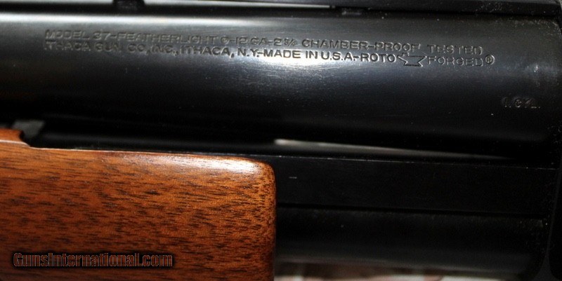 Description: Never fired, Ithaca Model 37 Featherlight 12 gauge repeater shotgun. Two barrels, 30 inch with full choke and 26 inch in cylinder choke. All steel with vented rib design. Has the desirable bottom ejection port. Beautiful wood working craftsmanship throughout. This gun is in outstanding condition. Original owner asking $1600. Serial number 3713352xx. Also comes with owners manual. SOLD Manufacturer: Ithaca Model: Model 37 Featherlight Serial Number: 3713352xx Barrel Length: 30 inch and 26 inch Bore: 12 guage Condition: Outstanding Metal Condition: Excellent Wood Condition: Excellent Bore Condition: As new |