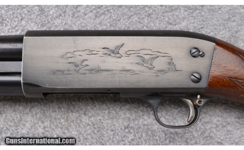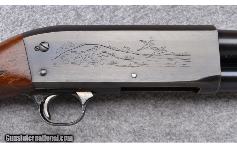 Description: One small spot of light pitting on left side of barrel in front of forend. Light blue wear at muzzle. Some finish wear on underside of pistol grip. Bore is excellent. Gun is solid and functionality is good. No box. SOLD Manufacturer: S/N 260XXX Caliber Info: 12 GA Chambers: 2 3/4 Metal Condition: Very Good Wood Condition: Very Good Bore Condition: Excellent Barrels: 28 Triggers: Factory Stock: Checkered Walnut Pistol Grip with Black Cap Stock Dimensions: 14" LOP Fore End: Ribbed Walnut Butt Pad: Ribber Black Plastic Weight: 6 1/2 LB Sights: Single Front Bead Chokes: Full - Fixed Item Location: Wheeling, WV |