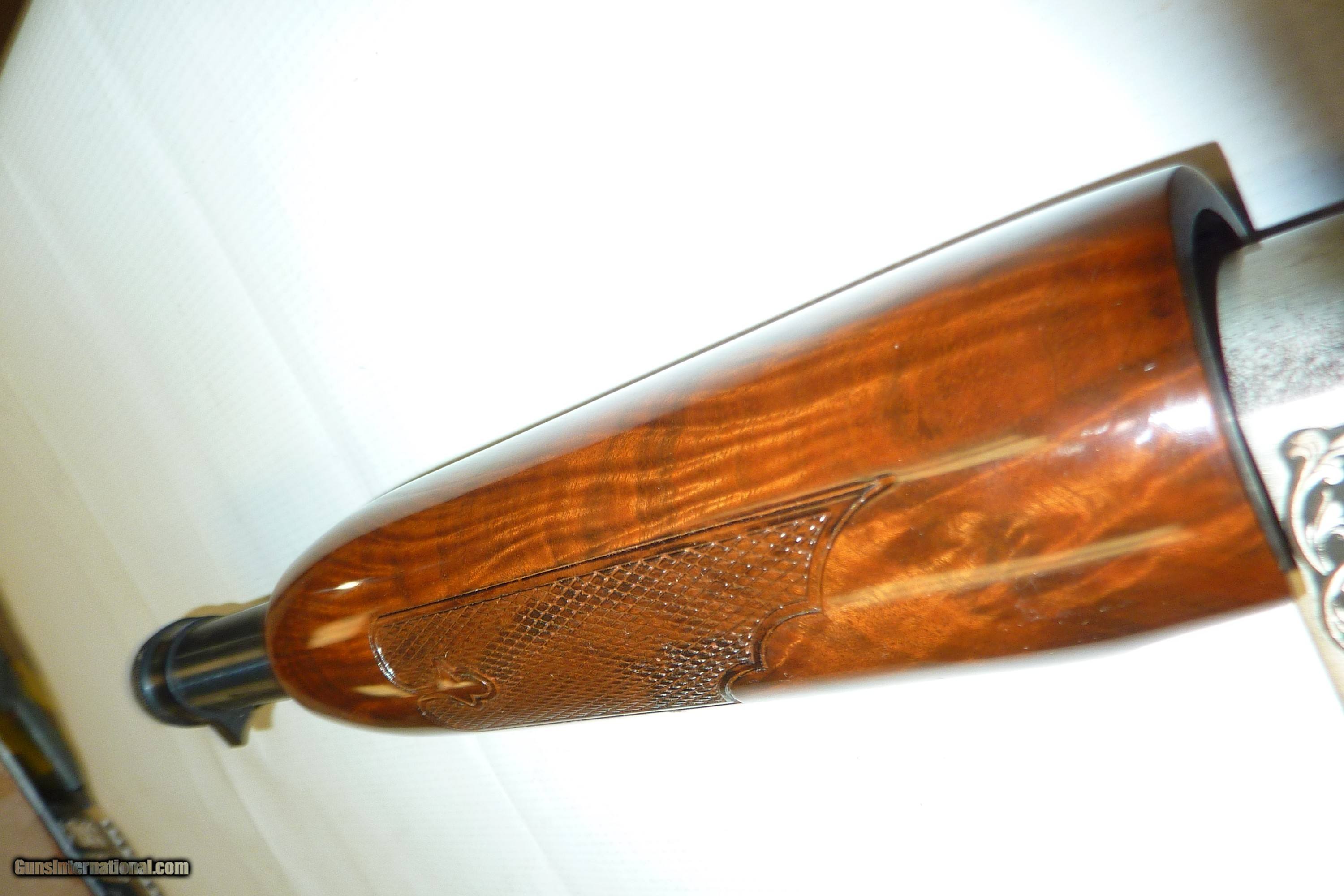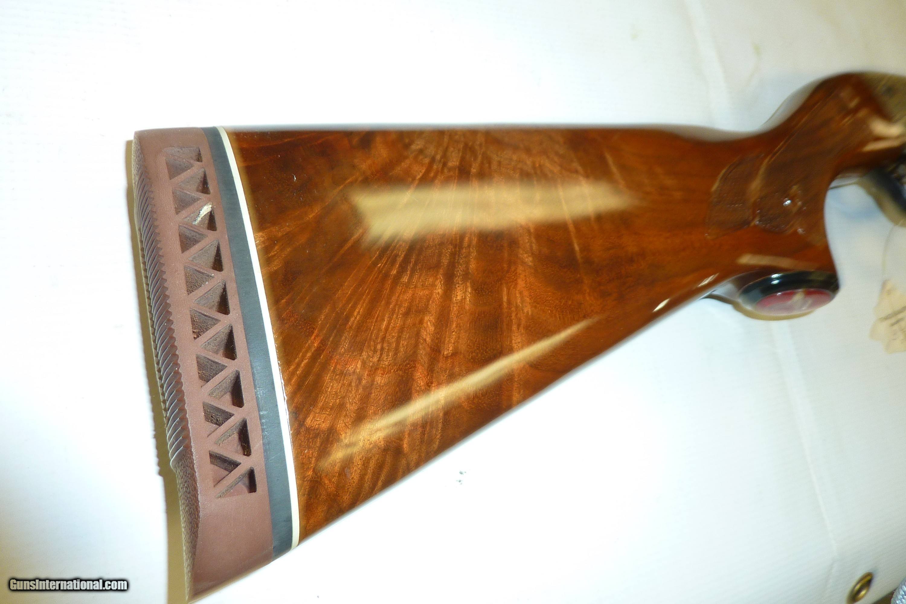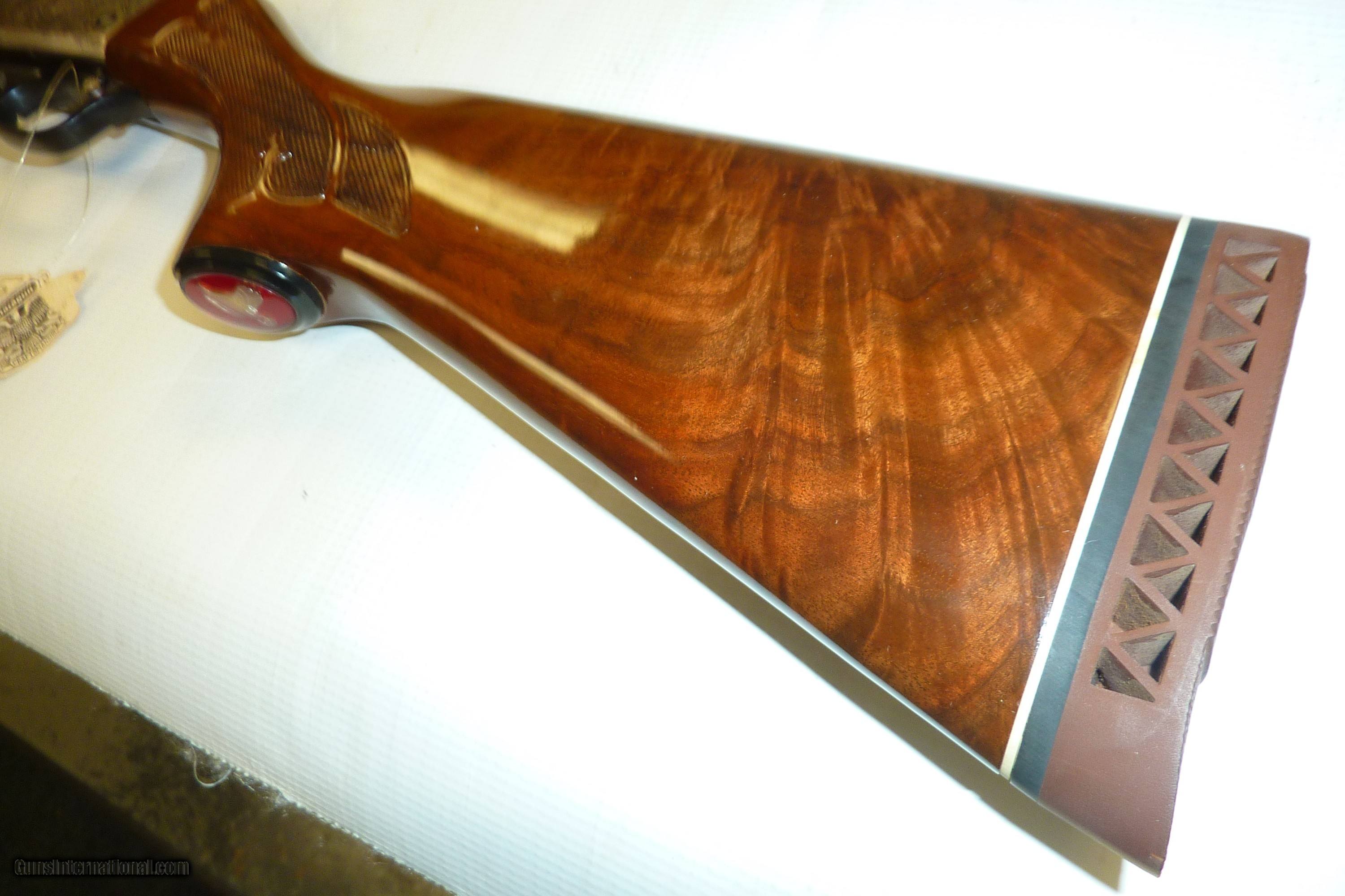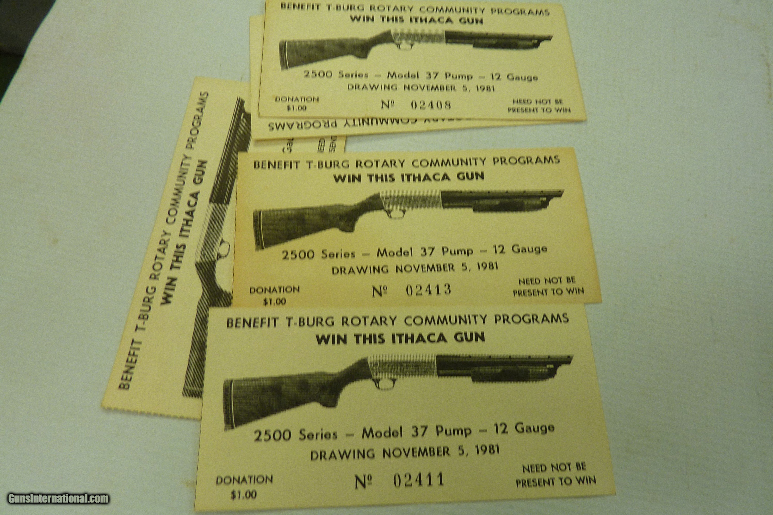 Description: ITHACA MODEL 37 12 GA 28" BBL MODIFIED CHOKE, CENTENNIAL 2500 SERIES UNFIRED. THIS FIREARM FEATURES SUPER DELUXE GRADE SEMI-FANCY GRADE CHECKERED STOCK AND FOREND. THE ETCHED RECEIVER WHICH IS SILVER PLATED WITH AN ANTIQUE FINISH WITH THE ARTIST'S RENDERING OF THE ITHACA PLANT AS IT LOOKED AT THE TURN OF THE CENTURY, AND A PORTRIAT OF LOU SMITH, PRESIDENT AND GUIDING GENIUS OF ITHACA GUN FOR A SUBSTANTIAL SHARE OF THE FIRST 100 YEARS. THE FINISH HAS TURNED PATINA, AS WITH ALL THESE RECEIVERS. THIS ITHACA WAS NEVER ASSEMBLED AND IS IN THE ORIGINAL BOX WITH AN ITHACA 100-YEAR CATALOGUE INSPECTORS TAG ON THE TRIGGER GUARD, AND A DUCK PLUG ONLY 2500 PRODUCED. THIS ONE OWNER WAS WON ON A GUN RAFFLE IN 1981, AND THE TICKETS ARE INCLUDED. THE ITHACA ALSO SHIPS WITH A FULL LENGTH HARD LEATHER CASE WITH THE ITHACA LOGO AND THE DATES 1890-1990. SHIPPING AND INSURANCE IS $65.00. SOLD Shotgun Gauge: 12 Gauge Manufacturer: ITHACA Model: 37 Serial Number: CENT-0669 Barrel Length: 28 Bore: EXCELLENT Chambers: 3 Condition: EXCELLENT Metal Condition: GOOD Wood Condition: EXCELLENT Bore Condition: EXCELLENT Barrels: OK Barrel Type: VENT RIB Action: PUMP Stock: EXTRA FANCY Manufacture Date: 1980-1981 Chokes: MODIFIED Engraving: FACTORY Case: LEATHER |