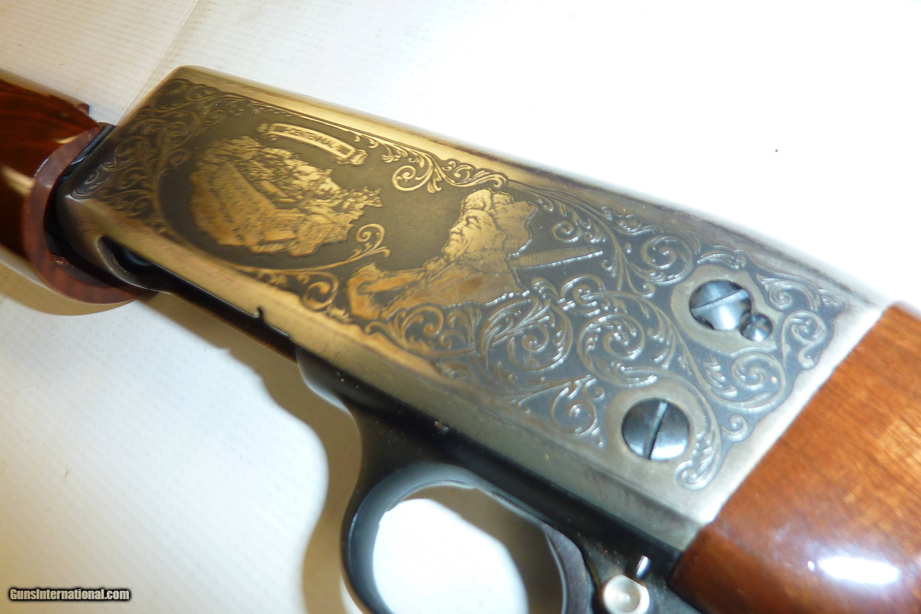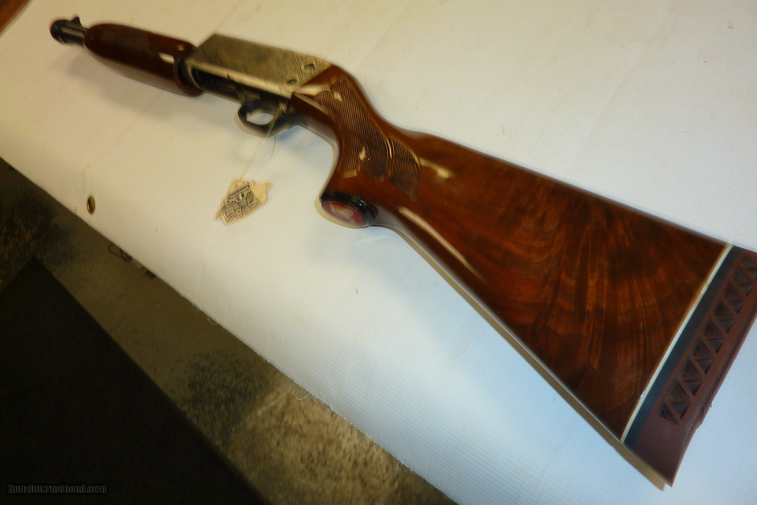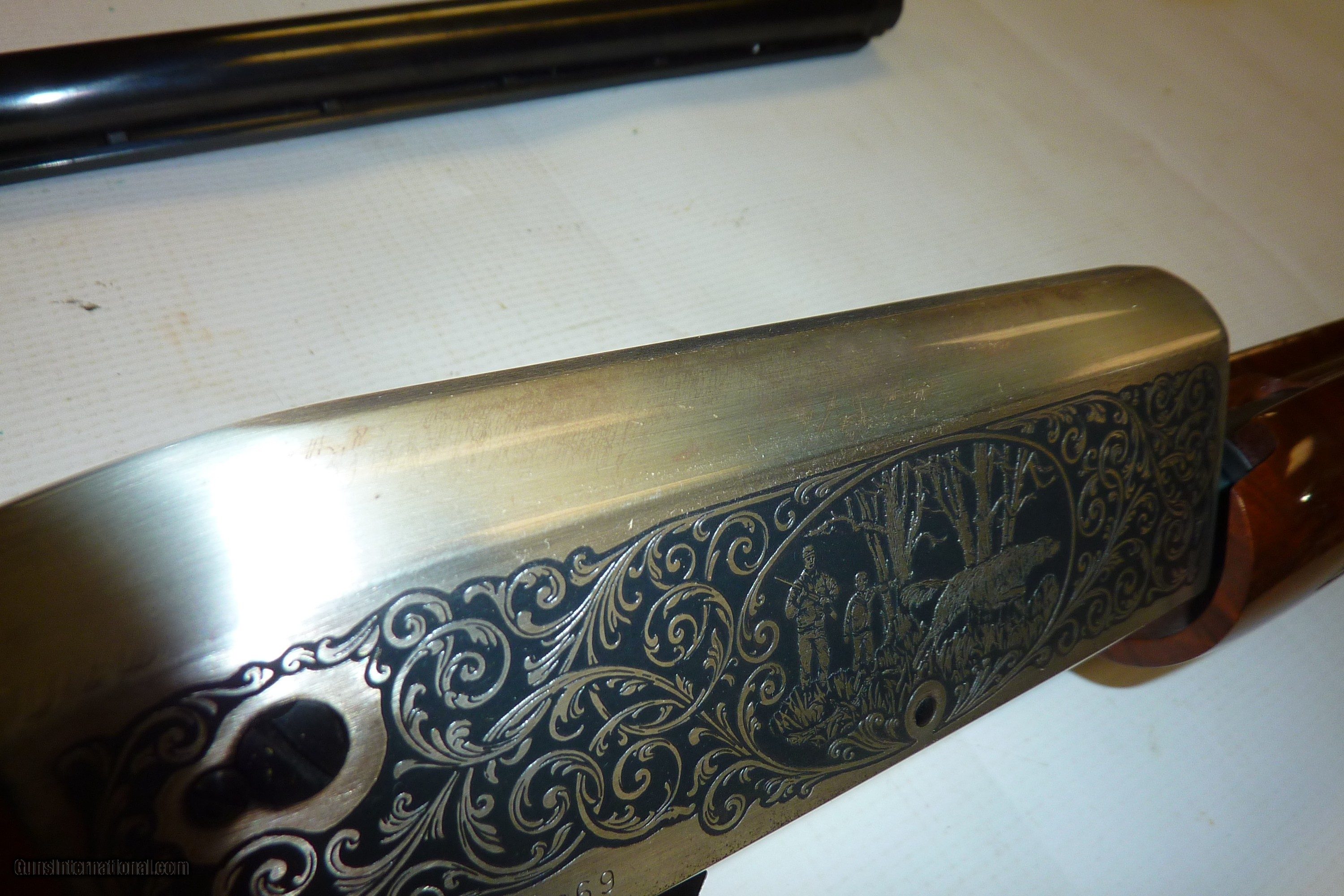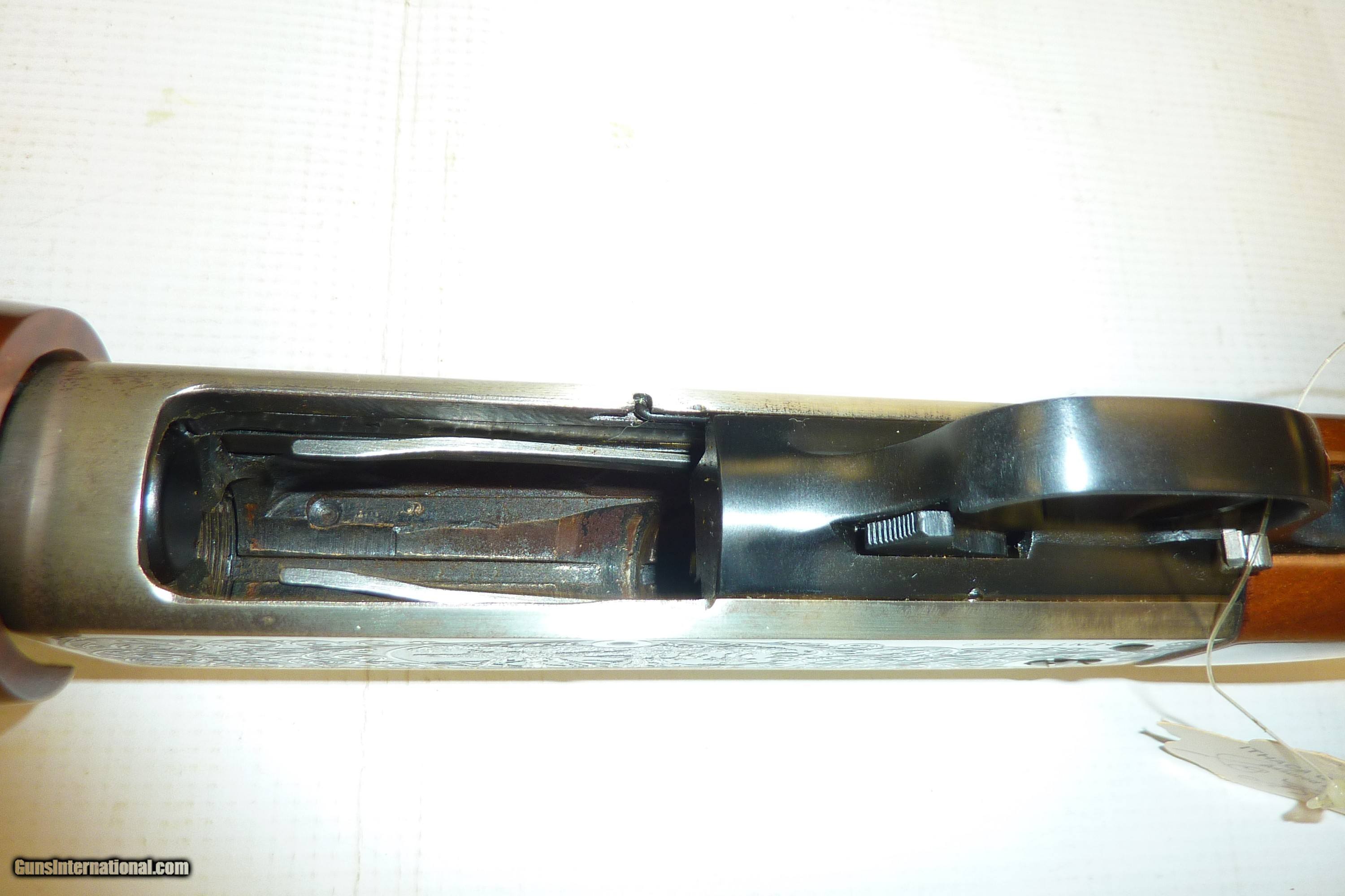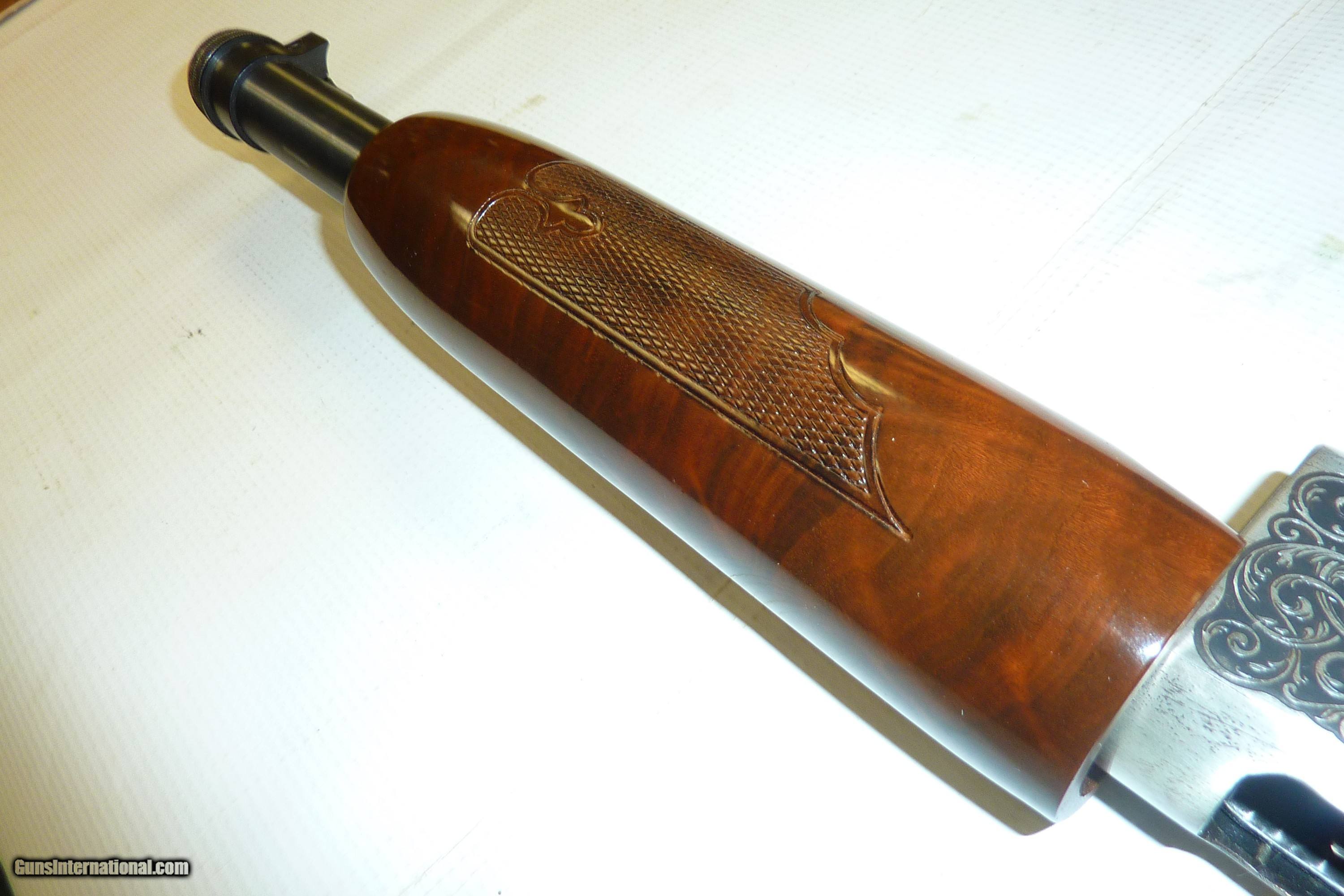 Description: ITHACA MODEL 37 12 GA 28" BBL MODIFIED CHOKE, CENTENNIAL 2500 SERIES UNFIRED. THIS FIREARM FEATURES SUPER DELUXE GRADE SEMI-FANCY GRADE CHECKERED STOCK AND FOREND. THE ETCHED RECEIVER WHICH IS SILVER PLATED WITH AN ANTIQUE FINISH WITH THE ARTIST'S RENDERING OF THE ITHACA PLANT AS IT LOOKED AT THE TURN OF THE CENTURY, AND A PORTRIAT OF LOU SMITH, PRESIDENT AND GUIDING GENIUS OF ITHACA GUN FOR A SUBSTANTIAL SHARE OF THE FIRST 100 YEARS. THE FINISH HAS TURNED PATINA, AS WITH ALL THESE RECEIVERS. THIS ITHACA WAS NEVER ASSEMBLED AND IS IN THE ORIGINAL BOX WITH AN ITHACA 100-YEAR CATALOGUE INSPECTORS TAG ON THE TRIGGER GUARD, AND A DUCK PLUG ONLY 2500 PRODUCED. THIS ONE OWNER WAS WON ON A GUN RAFFLE IN 1981, AND THE TICKETS ARE INCLUDED. THE ITHACA ALSO SHIPS WITH A FULL LENGTH HARD LEATHER CASE WITH THE ITHACA LOGO AND THE DATES 1890-1990. SHIPPING AND INSURANCE IS $65.00. SOLD Shotgun Gauge: 12 Gauge Manufacturer: ITHACA Model: 37 Serial Number: CENT-0669 Barrel Length: 28 Bore: EXCELLENT Chambers: 3 Condition: EXCELLENT Metal Condition: GOOD Wood Condition: EXCELLENT Bore Condition: EXCELLENT Barrels: OK Barrel Type: VENT RIB Action: PUMP Stock: EXTRA FANCY Manufacture Date: 1980-1981 Chokes: MODIFIED Engraving: FACTORY Case: LEATHER |