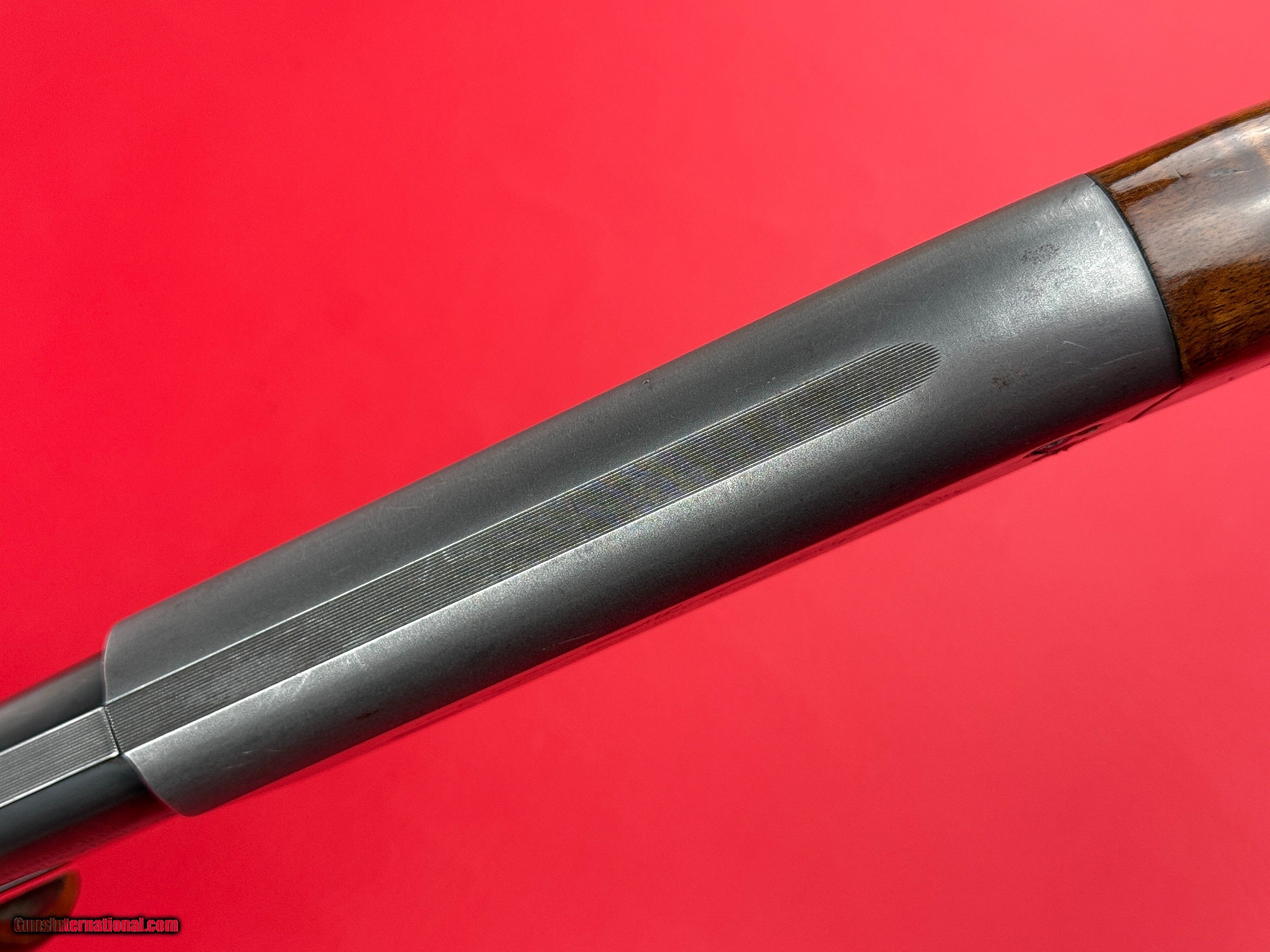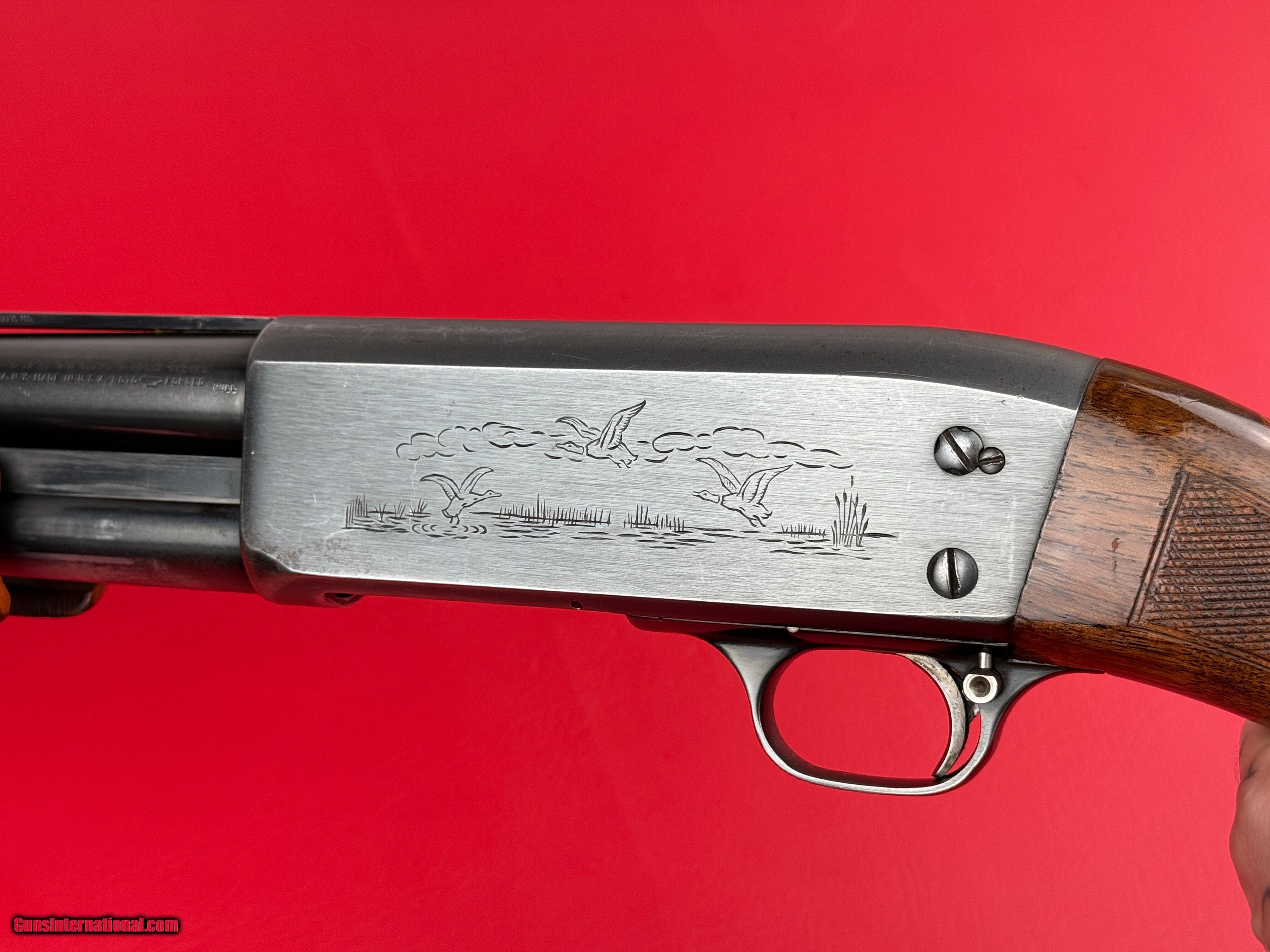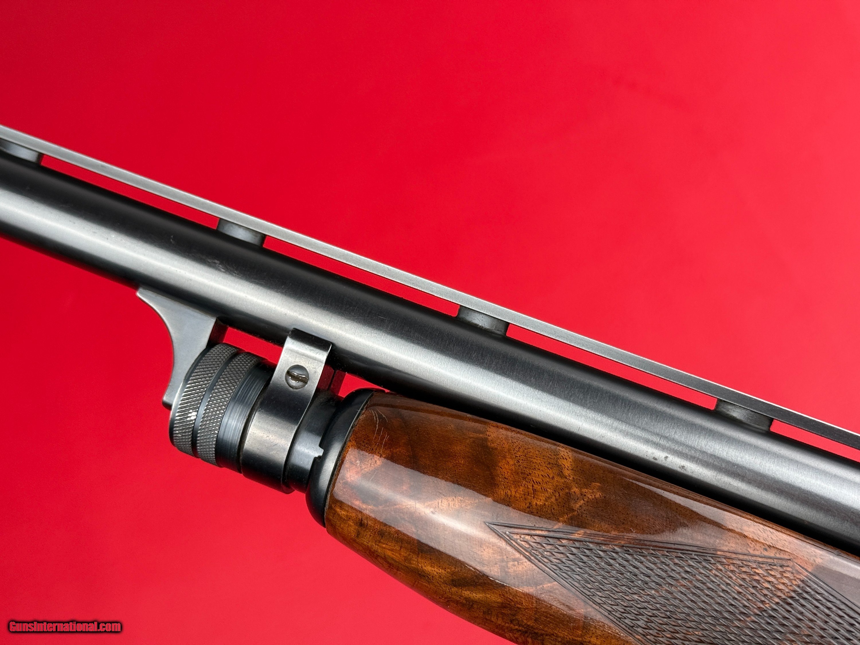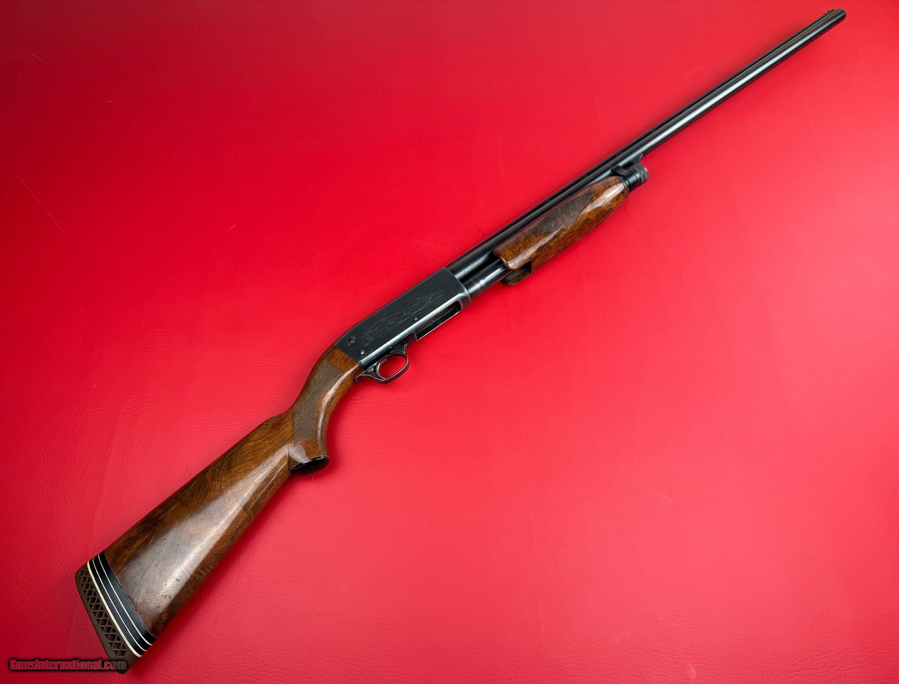Description: The Ithaca Model 37 Featherlight 12GA is a legendary pump-action shotgun. First introduced in 1937 and still in production today. Based off the serial number this shotgun was manufactured in the early 1960s. The finish overall looks great, only showing some wear on the tube and the edges of the receiver. There are some light scratches throughout but nothing that stands out. The barrel is 30” in length with a Simmons vent rib. It is held by a beautiful walnut stock & forearm free of any cracks or nicks affecting the integrity, however the finish you can see if wore in some spots causing a chipped look and the stock does show some dents on the top. If this wood was refinished with a more natural finish, it would make an all around excellent looking shotgun. For full photo album ask us for the link! SPECS: