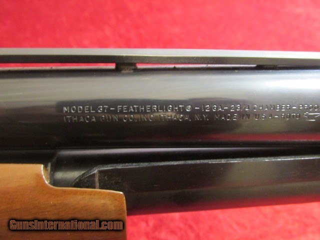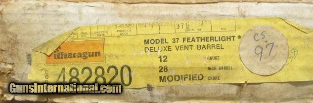 Description: Ithaca Model 37 Featherlight Deluxe 12 ga 28" bbl fixed Mod Choke w/box Ithaca Gun Co, Made in the USA This Ithaca comes with the original box and is in excellent condition. A few very light handling marks on the stock (on left side of wrist & by toe). Please see pictures. Has 28" Vent Rib barrel with fixed Modified choke and red hi-viz front sight. Red grip cap with pheasant and Ithacagun Butt pad. Hard to find one this clean!!!