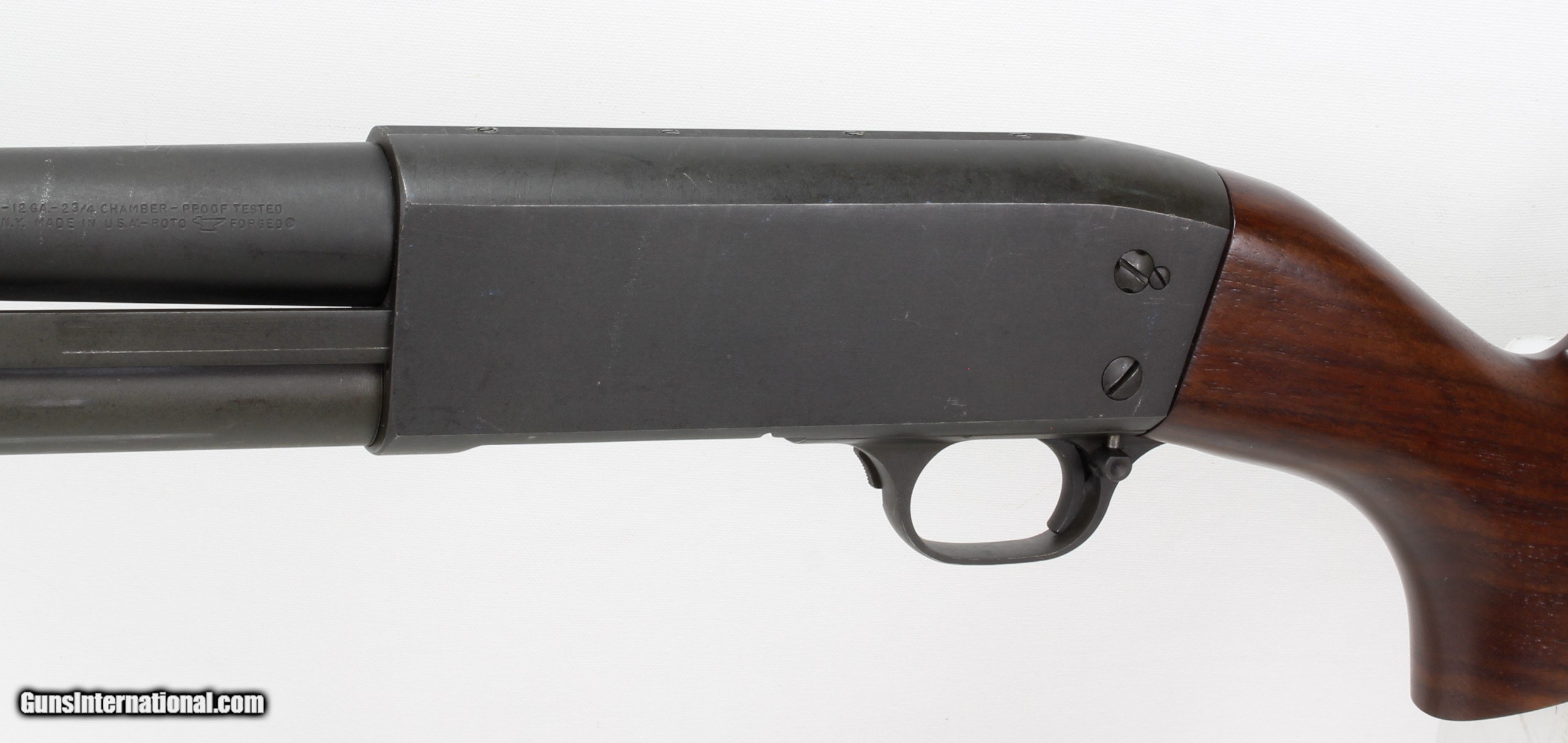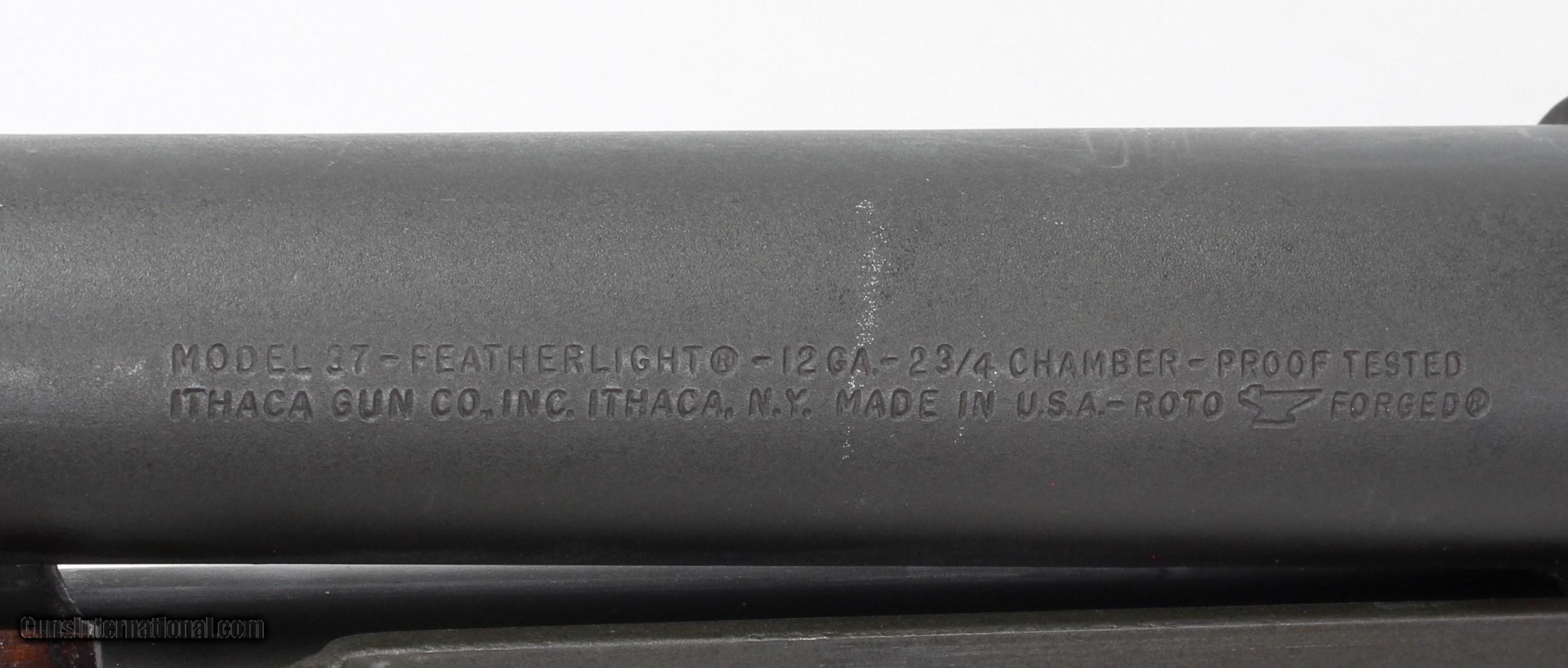 Description: Ithaca Model 37 Featherlite Riot Pump Shotgun in 12Ga. SN #371677900. Made in the early 1970's. LOP 14 1/2". Chamber 2 3/4". DAH 2 5/8" - DAC 1 3/8". Cylinder Choke. 20" Parkerized Barrel with an EXCELLENT Bright Bore. The Parkerized Metal has some Scuff and Handling Marks but is otherwise in good shape. The Stock has been replaced by SHOOTER'S EXCHANGE and LOOKS GREAT. Boyd Hard Rubber Buttplate. 4 shot tube magazine. Bottom eject. Top of Receiver is Tapped. Anvil Proof Marks on right side of Receiver / Barrel designates Roto Forged. Shotgun Will Slam Fire. Weight: 6.4 lbs. Trigger Pull: 7 1/2 lbs. More photos available upon request. Ships to Lower 48 W/ Insurance $35.00. SOLD Curio/Relic: Yes Shotgun Gauge: 12 Gauge Manufacturer: Ithaca Model: 37 Featherlite Serial Number: 371677900 Barrel Length: 20 Chambers: 2 3/4 Condition: VG Metal Condition: Good Wood Condition: Refinished Bore Condition: Excellent Action: Pump Butt Pad: Hard Rubber LOP: 14 1/2 Finish: Parkerized Weight: 6.4 lbs. Manufacture Date: Early 1970's Chokes: Cylinder |