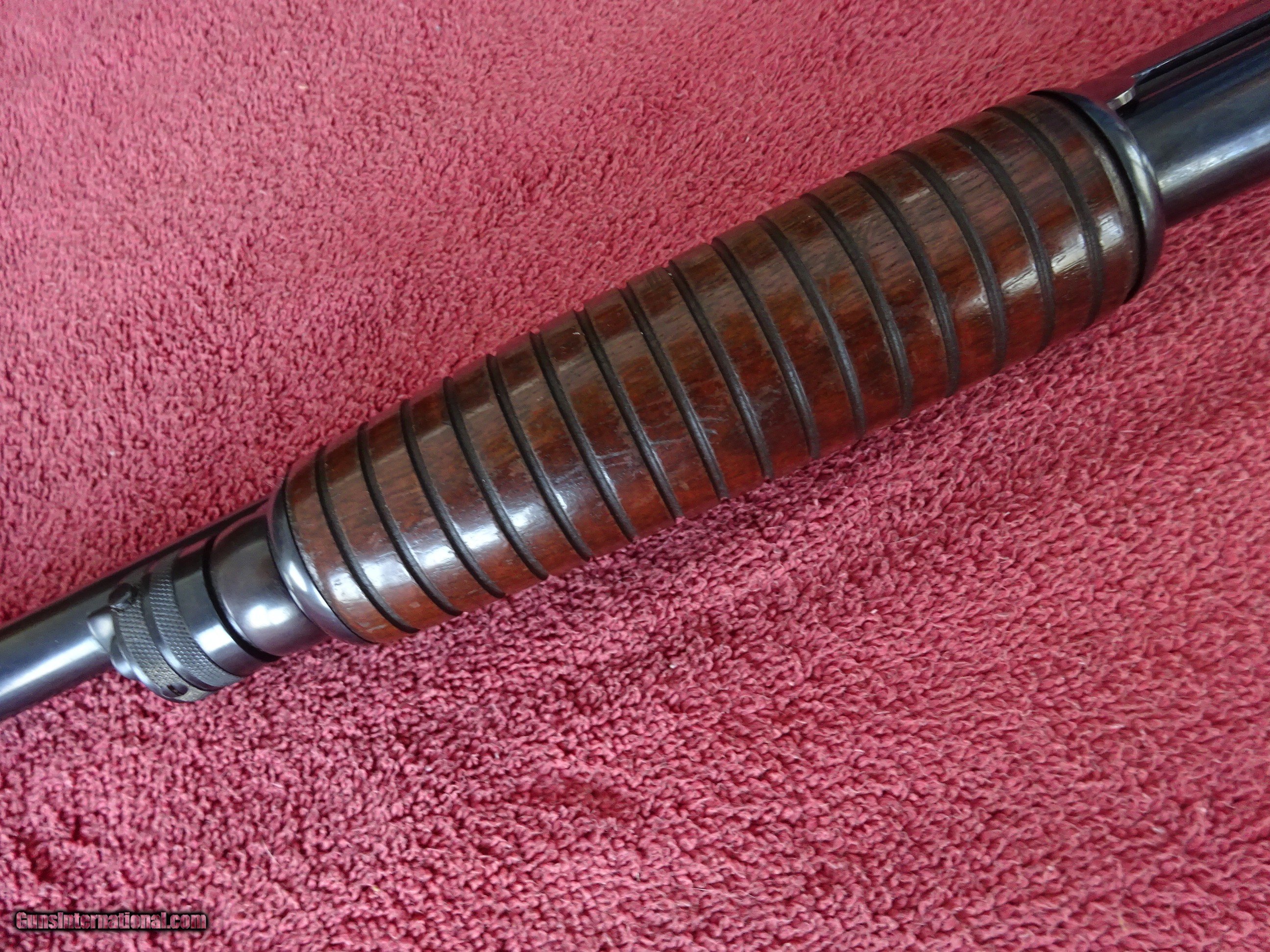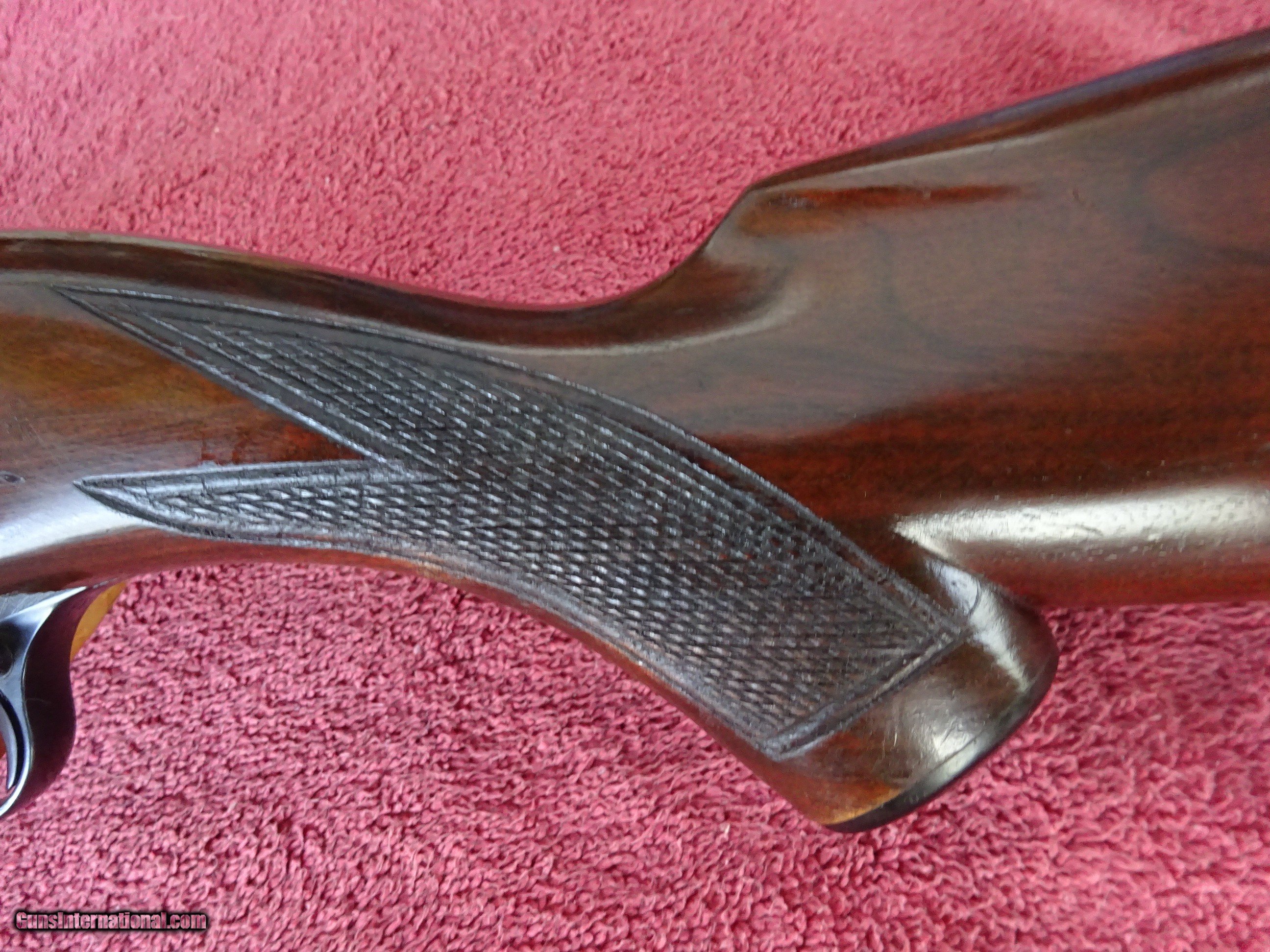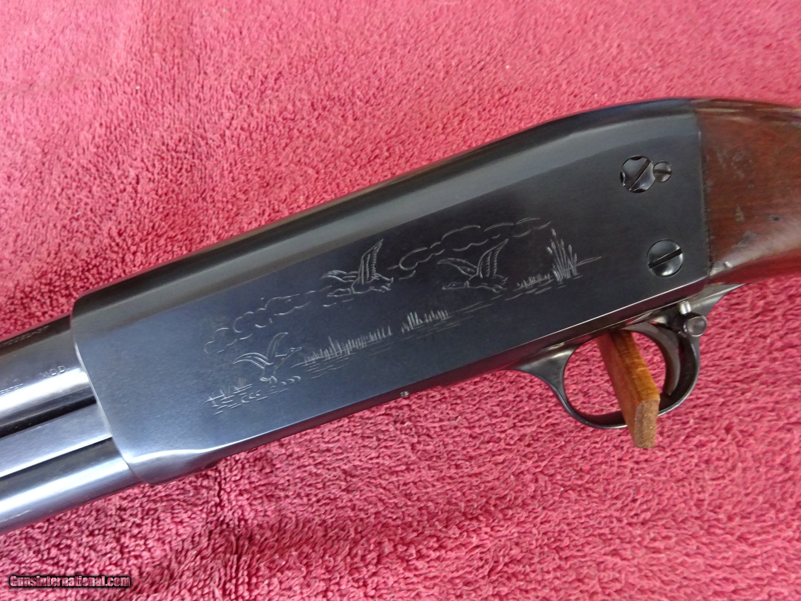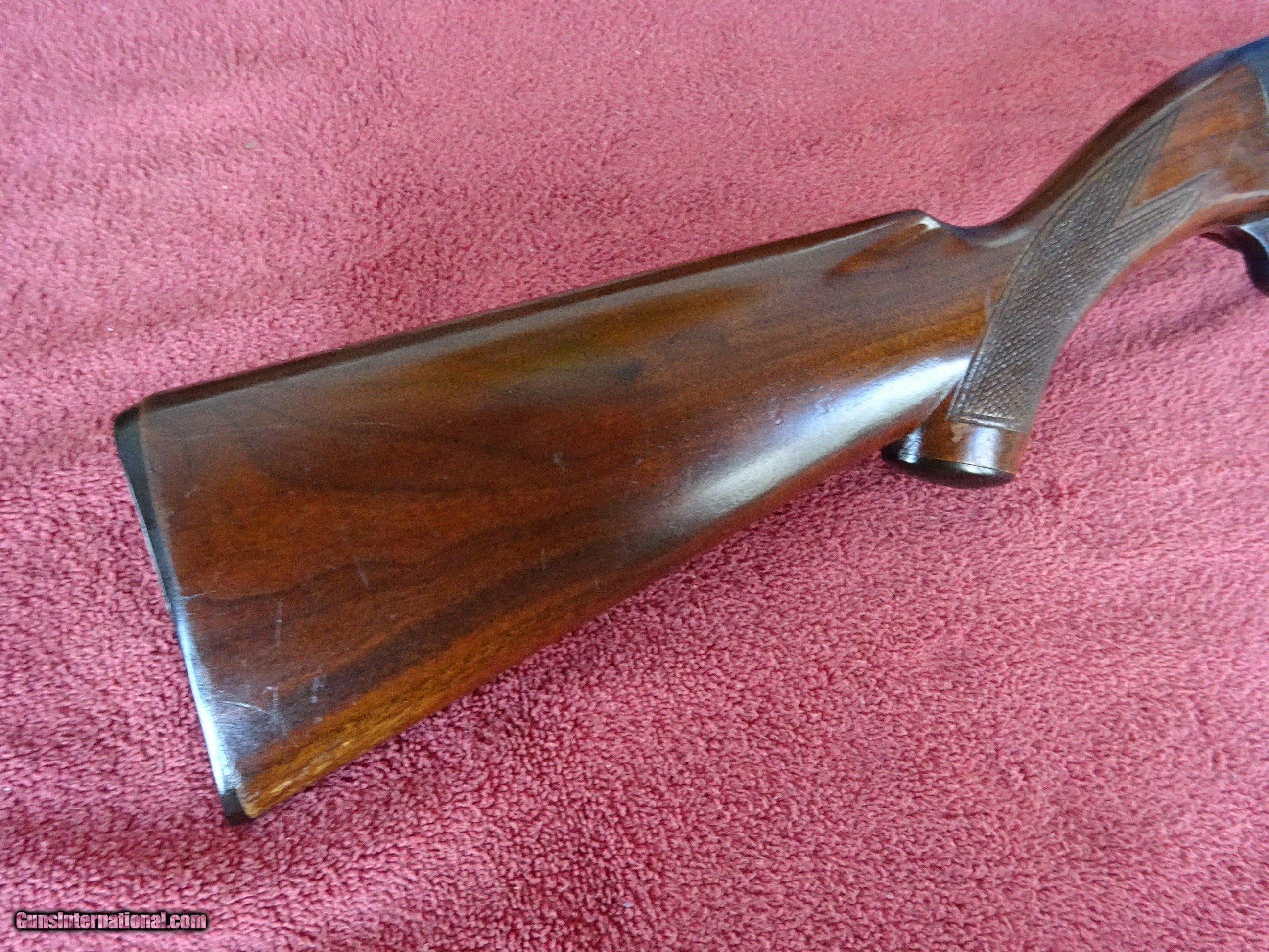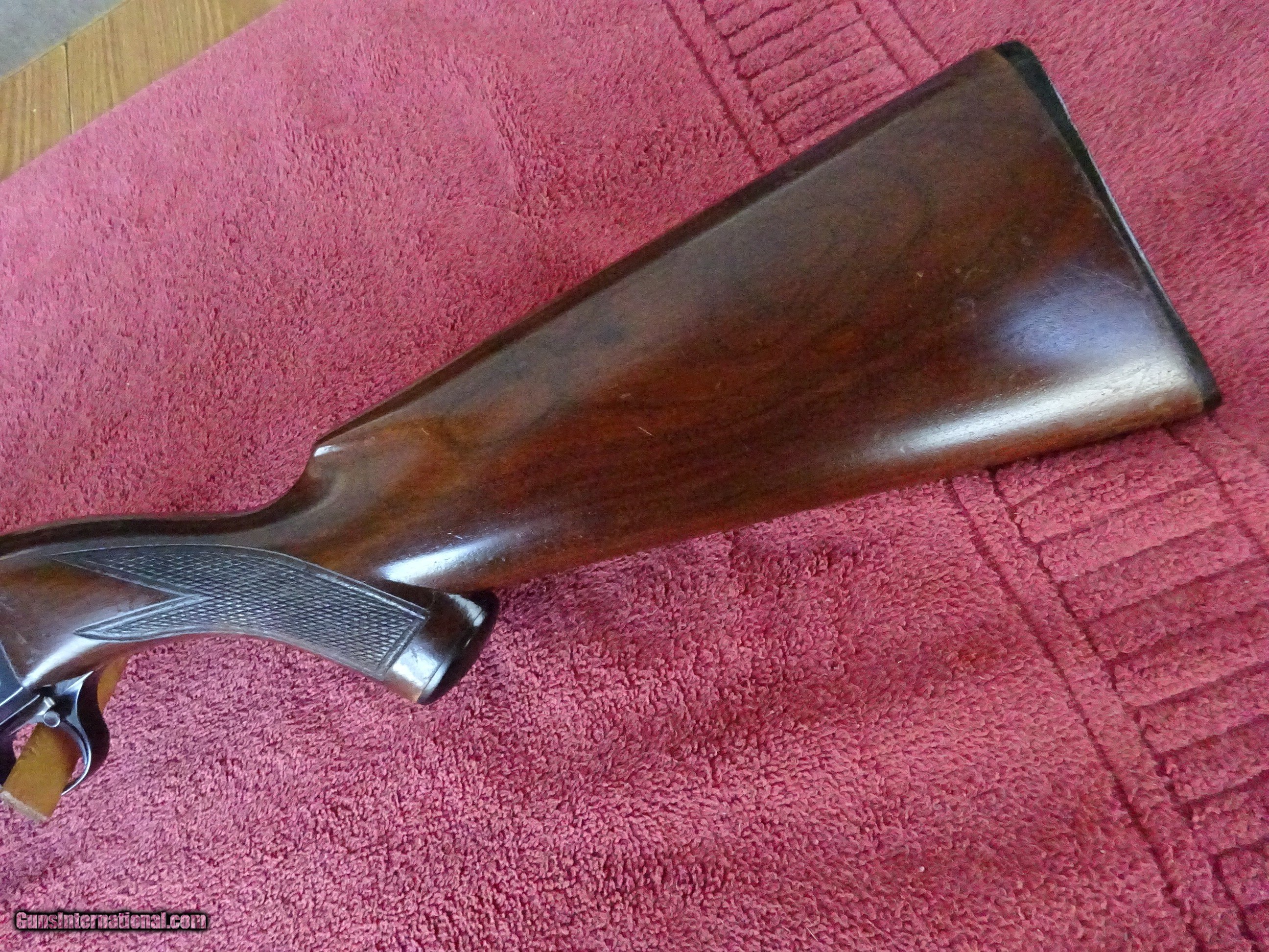 Description: ITHACA MODEL 37 FEATHERWEIGHT 16 GAUGE. MODIFIED 28" BARREL, 2 3/4" CHAMBER, SINGLE BEAD SIGHT, MIRROR PERFECT BORE, EXCELLENT OVERALL BRIGHT ORIGINAL BLUE. STANDARD ENGRAVING PATTERN WITH HUNTING DOG AND PHEASANTS ON RIGHT SIDE AND DUCKS IN FLIGHT ON LEFT SIDE. PISTOL GRIP STOCK, SMALL RIBBED FOREARM, ATTRACTIVE DARK FIGURED SOOD, SHARP CHECKRING. NORMAL HANDLING MARKS IN THE VARNISH. ORIGINAL GRIP CAP AND ITHACA MARKED BAKELITE BUTTPLATE, 14 1/4" LENGTH OF PULL, 6 POUNDS 4 OUNCES. MADE IN 1948, 100% ORIGINAL CONDITION. $775.00 + $70.00 Insured shipping to an FFL address. Layaway is available. See all Pats gun listings on this site! We also have hundreds of ORIGINAL gun company advertising & memorabilia pieces available for sale on our site SPORTINGCOLLECTIBLES. We have no reprints or reproductions. Email for more information. If you need to call, morning or evening is best, and please note the Seller's Inventory number. SOLD Curio/Relic: Yes |