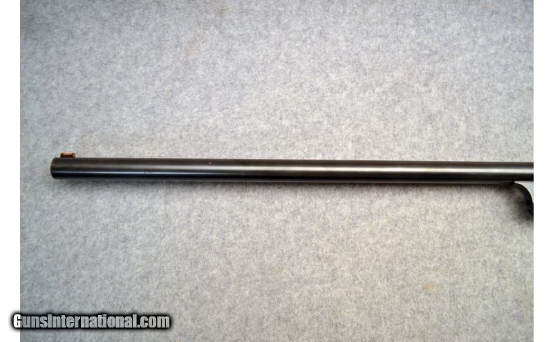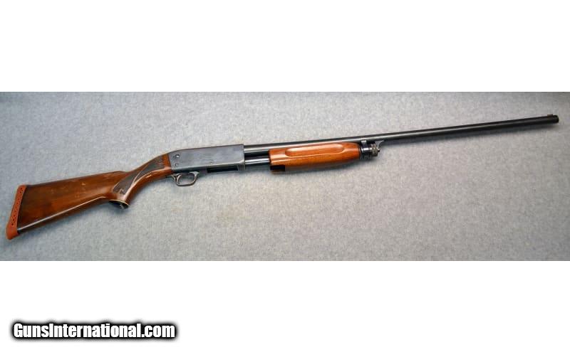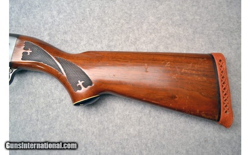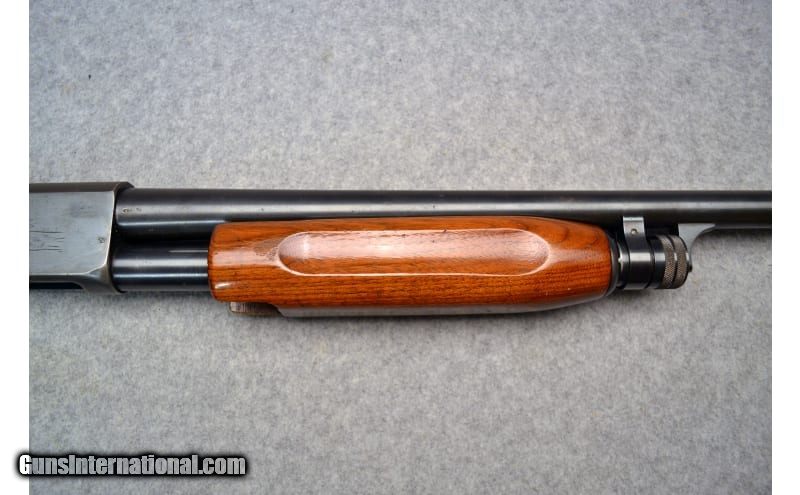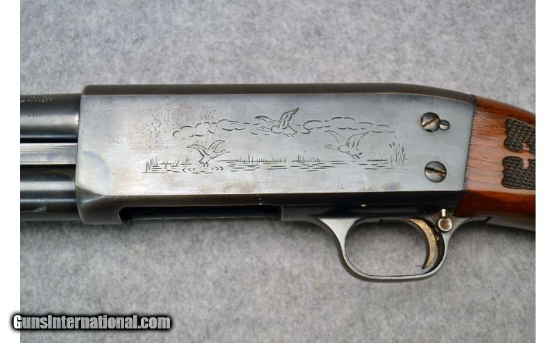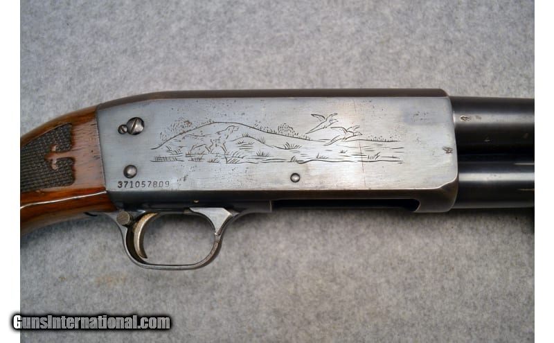 Description: This Ithaca Model 37 is a right hand pump action shotgun in 12 Ga. It has a 29.5 inch barrel with a fiber optic front sight. With a 2 3/4 in chamber it has a fixed Full Choke. The butt stock is a checkered grip walnut pistol grip with a black cap. The forearm is a checkered grip walnut. The receiver is engraved with ducks and pheasants in flight in an outdoor scene. 12 Gauge SOLD Barrels: 29.5 Weight: 8 LB Item Location: christiana |
