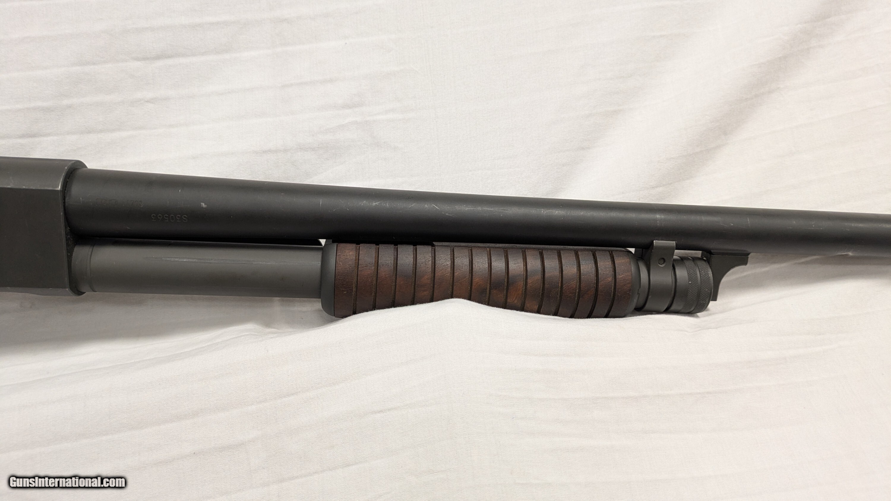 Description: This is an Inland MFG. manufactured Ithaca M37 Trenchgun that has been further modified. Shortened stock and barrel. Comes with metal healshield, but no bayonet lug. This is a used item. While we do not test fire our used firearms, we perform an inspection and function check to determine the firearm is fully functional to the best of our ability. Please call with any questions. If you are interested in purchasing this item, please give us a call. Please have the "Seller #" and/or "Guns International #" ready along with the contact information for the FFL you'd like the item shipped to. For Sale from First State Firearms of Delaware AKA "The Gun Shop" in New Castle, DE. Shipping includes $100.00 in shipping insurance. Additional insurance available at buyer's expense and request. Shotgun Gauge: 12 Gauge Manufacturer: INLAND MFG. Model: ITHACA MODEL 37 Serial Number: S30563 Barrel Length: 18.1 INCH Condition: USED, 90% Action: PUMP Case: BOX/CASE INCLUDED Price: $399.99 Shipping: $40.00 Contact Seller |