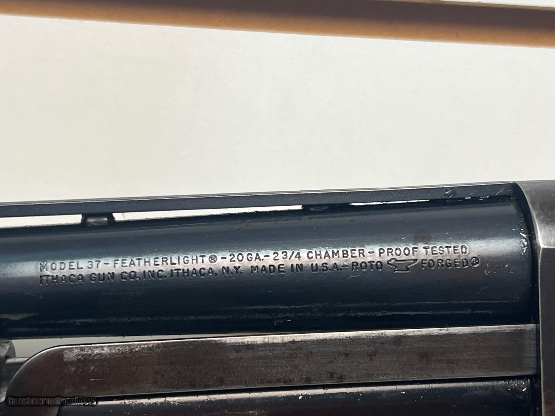 Description: Pre owned Model 37 featherlight Caliber 20 ga chamber 2 3/4" Barrel 28" SOLD Shotgun Gauge: 20 Gauge Manufacturer: Ithaca Model: 37 Featherlight Serial Number: 371633824 Condition: Fair Metal Condition: Fair Wood Condition: Fair Bore Condition: good |