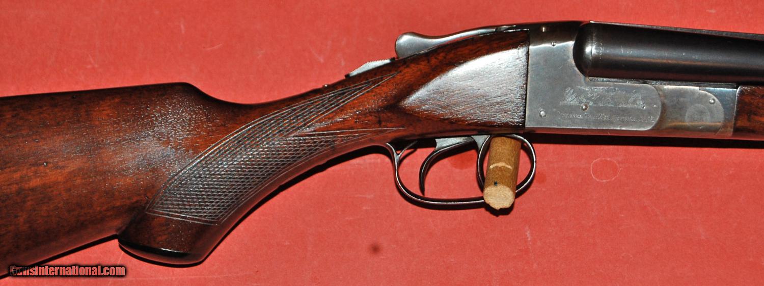 Description: Ithaca NID 20ga field grade.This gun has 28" barrels choked modified and full.It has a pistol grip stock,double triggers,extractors,cocking indicators,and a splinter forend.It retains 60%of the original case colors and 98% of the original barrel blue.It weighs 6-4.It has a 14" LOP over a leather faced solid pad.The wood is very sound with no cracks or damage and has all the original finish.All the screws are clean and timed.A fine little light weight bird gun.C&R eligible. SOLD Curio/Relic: Yes Manufacturer: Ithaca Model: NID Field Serial Number: 432434 Chambers: 23/4" Wood Condition: excellent Gauge Info: 20ga Stock Comb: 13/4 Stock Heel: 3 LOP: 14 Weight: 6-4 Choke Left: full Choke Right: modified |