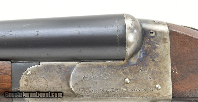 Description: Ithaca Field Grade 12 Gauge shotgun. N.I.D. field grade with 28” barrels marked “4” and “4” (Full and Full). The barrels have light pitting and a slight ding on the outside, bores are excellent and the dent hardly noticeable. The receiver has about 40% case colors, mostly faded. The stock is very good with light wear, the forend has a bit more wear. A solid gun, ready for the field.