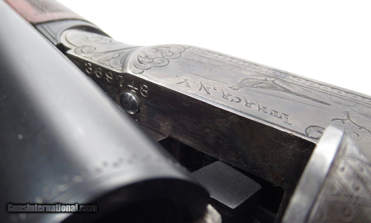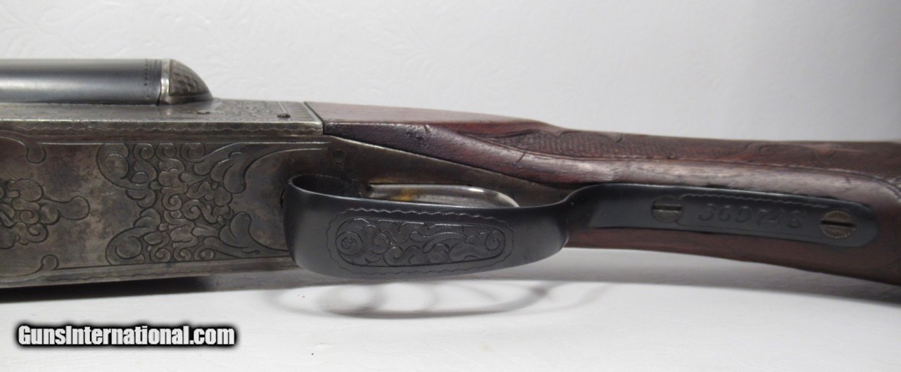 Description: LIQUIDATING PERSONAL COLLECTION!!! Ithaca Flues; Serial No. 369748; 12 ga. Grade 4E; 32” Barrel; nearly All Original Finish on Metal Remains; Original Wood, solid finish worn; 14” pull to Original Butt Plate; DAH 2 ¼”; DAC 1 ½”; Made1932; PERFECT Bores and Action; Strong Ejectors; Price includes insured shipping; return policy: three days inspection from the date the item is received; full refund of shipping both ways ONLY IF THE ITEM IS MISREPRESENTED. SOLD Curio/Relic: Yes Manufacturer: Ithaca Model: Flues 4E Serial Number: 369748 |