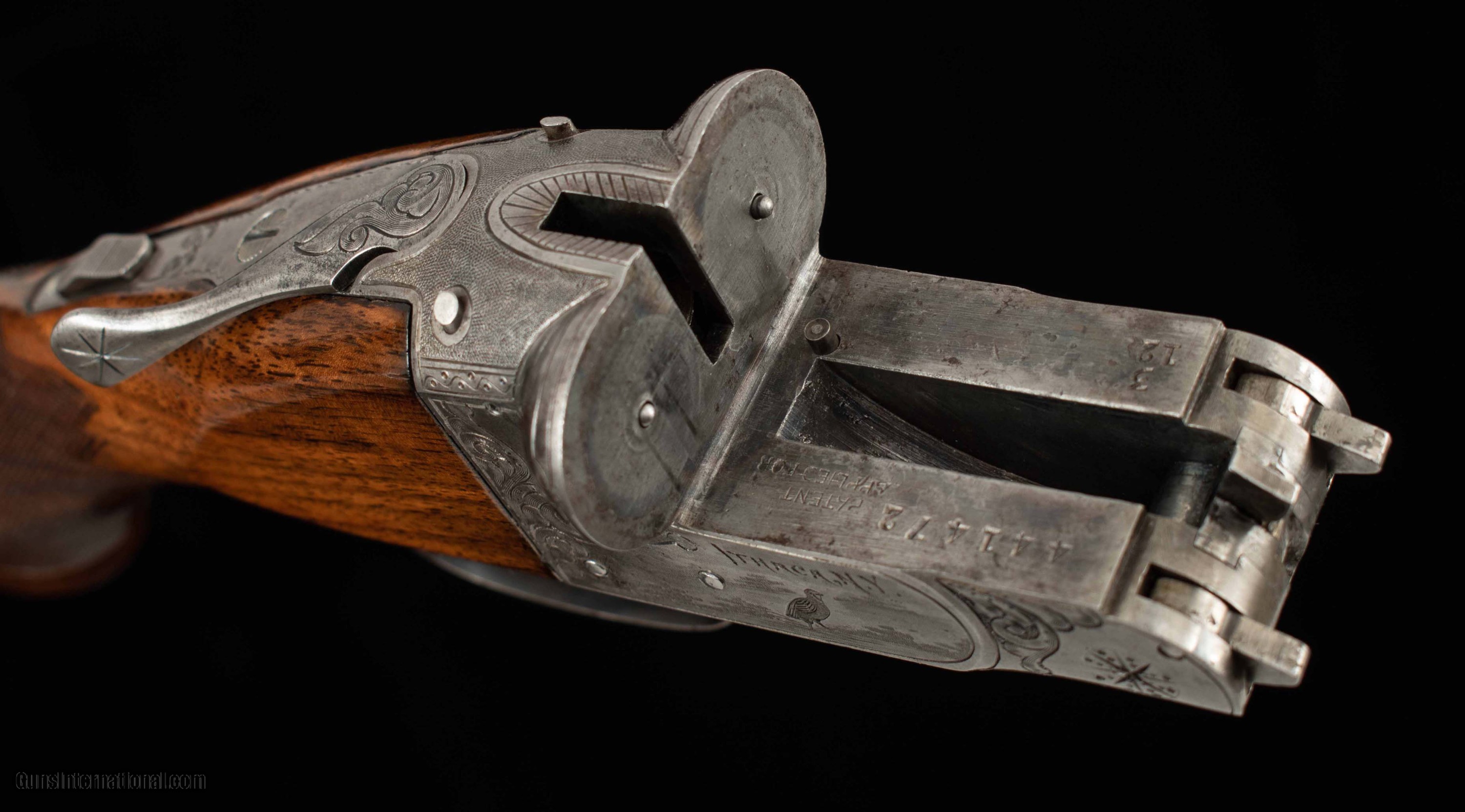 Description: General Specs: Ithaca, 1927, 12 Gauge, 6lbs. 13oz., Chokes IC/M, LOP 13 15/16", DAH 2 7/8", DAC 1 9/16" Serial Number: 441472 Ithaca Gun Company’s last model of double shotgun was the “NEW ITHACA DOUBLE”, or NID model. Built from 1926 to 1949, only 45,000 were produced in all gauges and grades, with a majority being Field grade 12ga. guns. Ithaca high grade guns are special amongst the American double guns, as they are superb mechanically, equal to other makers in quality, had wood far more figured, grade for grade, than their competitors, and checkering patterns that simply overshadowed the next best maker. The NID action is brutish in strength, second only to Winchester’s Model 21, and graded guns are nicely engraved with game scenes and scroll. This Ithaca Grade 3E, sn441472 built in 1927, is a superb example of a 95-year-old vintage American side x side that is ready for another century of use. This gun is an unusual example, as most of the Ithaca NID guns built during this time period were heavy guns for competition or waterfowl…few were made as “brush guns” specifically light in weight, with 26” Krupp Steel barrels, and IC/M chokes. It is very rare to find any American 12-gauge shotgun weighing in at under 7lbs., let alone the light weight of this gun at 6lbs. 13oz! This is a quick gun, carefully crafted to balance 1/8” ahead of the hinge pin for dynamic handling characteristics that can only be attained by the hand-finishing methods of days gone by. The gun is mechanically excellent, with well-timed ejectors, crisp triggers, excellent screws properly clocked along the axis of the gun, the barrels tight as new on the hinge pin and breech face with the top lever still right of center. The well-figured wood is solid, with no cracks, sharp checkering, and a very nice hand-rubbed oil finish. If you look closely at the checkering, you will note it is fine 24 line per inch and the ebony forend tip tops it all off in a very nice fashion. The bores are excellent and mirror shiny, with no dents. The barrels have been expertly rust-blued to new during our clean up of the gun making it ready for your use. The best thing about Ithaca NID guns besides their strong mechanics is they are still affordable. You can buy this game scene engraved gun with fancy wood and checkering for less than a plain-Jane Parker VHE and have a nicer gun for the money. What a great American example of the gunmaker’s art for you to take to the field next season, and to break clays with between now and then. Thanks for looking! Barrels Barrel Length: 26" Chokes: .012/.020 IC/M Bores: mirror Bore Diameter: .734/.734 Wall Thickness: .028/.025 % Blue: 100% Chambers: 2 3/4" Ribs: tight Sights: Front brass Action Action: tight-Well Tight of Center Ejectors: timed Receiver Condition: traces of case color Screws: excellent Engraving: sharp, clear Trigger Type: double-crisp Trigger Guard Color: 94% blue Stock Type: Capped pistol grip/splinter; ebony tip forend; well figured LOP: 13 15/16" LOP To End Of Wood: 3 1/16" DAH: 2 7/8" DAC: 1 9/16" Cast: neutral Checkering Condition: excellent Butt Treatment: NoShoc pad INQUIRIES There is a 30 day mechanical warranty on long guns. If it is a “VFI Certified” gun there is a 90 day mechanical warranty. Call or email us for more details or questions. Thanks! Vintage Firearms Inc. Payment and Shipping Payment Methods: Credit Card, Money Order, Certified Check, Personal Check, Wire Transfer (Advertised price reflects 3% cash discount. Actual price if paid by credit card is 3% higher.) Inspection Period / Return Policy: Three Days from the date the item was received. Sales Tax: Collected in CO, FL, MI, WI Shipping & Insurance: Ground $105.00 within the continental U.S. Additional fees for HI & AK. Item Condition: Used Requires FFL?: Yes. We accept C&R licenses for shipping on C&R eligible guns.OtherTerms of Purchase: Check your local and state laws before purchasing. It is the buyer’s responsibility to confirm his/her right to own the firearm or any item before purchasing. PLEASE SEE OUR OTHER FINE VINTAGE FIREARMS. View all listings and our full inventory of fine sporting and collectible arms will appear. Thanks for looking!We employ full time gunsmiths on premises and can perform alterations to suit your needs within a few weeks of purchase. Common requests are: -stock bending to suit your particular requirements -addition of any specified butt pad to increase length of pull -alteration of chokes to suit your shooting preferences -lengthening of chambers and forcing cones -darkening stock color with penetrating stains -restoring any part of the gun including rust blue, charcoal blue, bone and charcoal case color, wood restoration and checkering recuts. If you like one our guns but it needs “tweaked”, let us know and we can quote you a time and price. Some enthusiasts like the guns “as found” and others want them “just so”. We often list guns as found and let the particular buyer choose how they want their gun to fit or look. SOLD Shotgun Gauge: 12 Gauge |