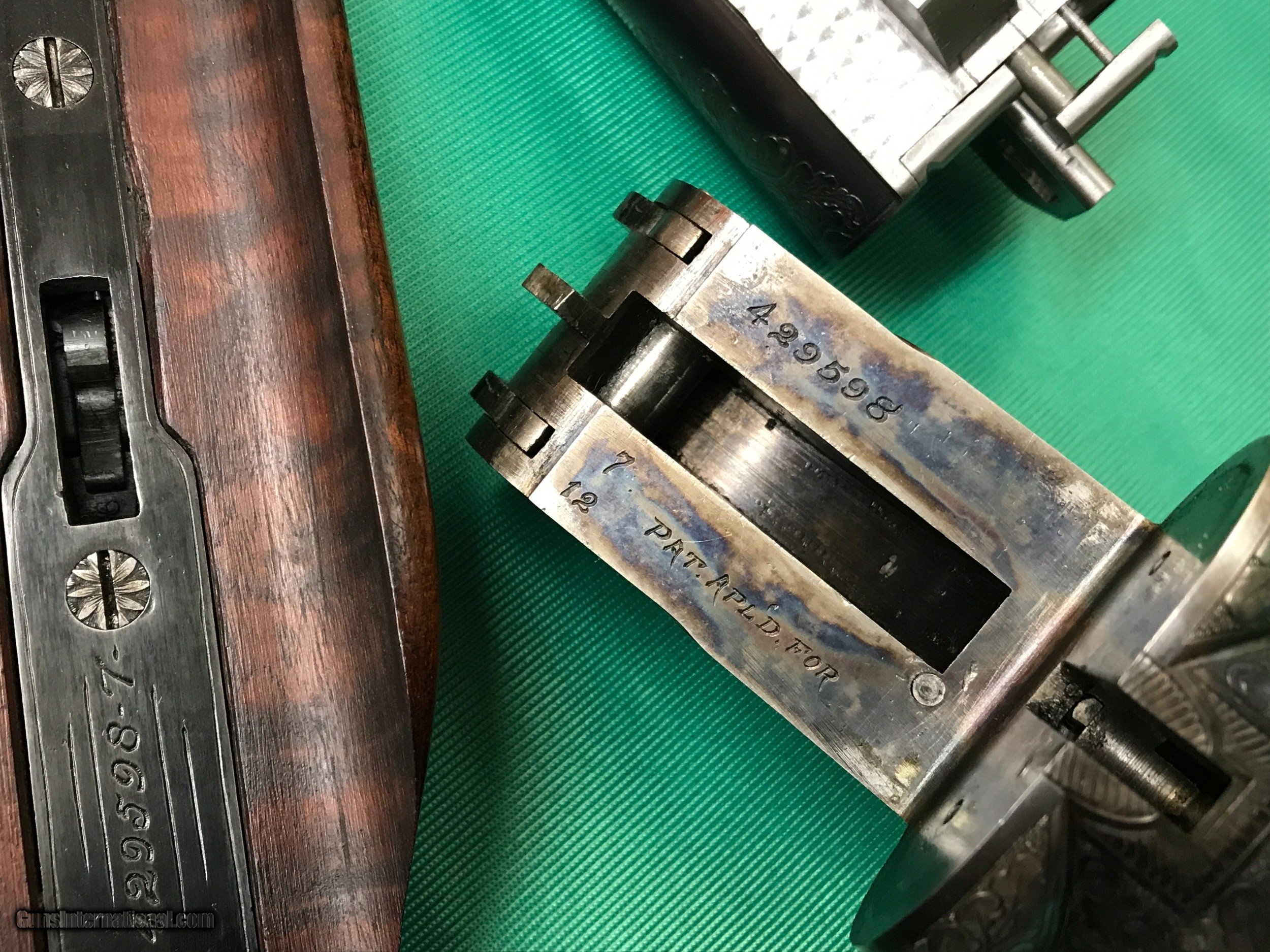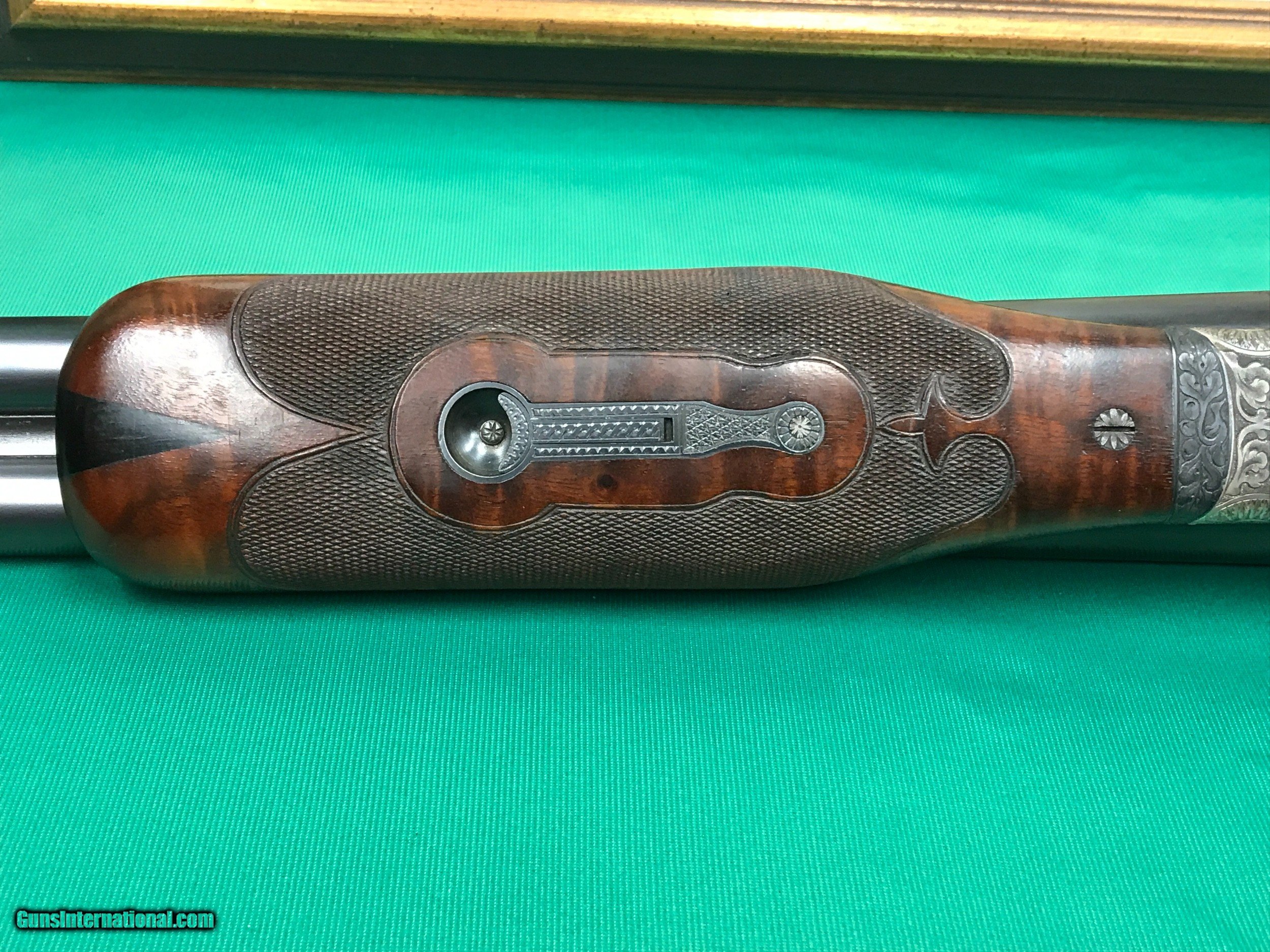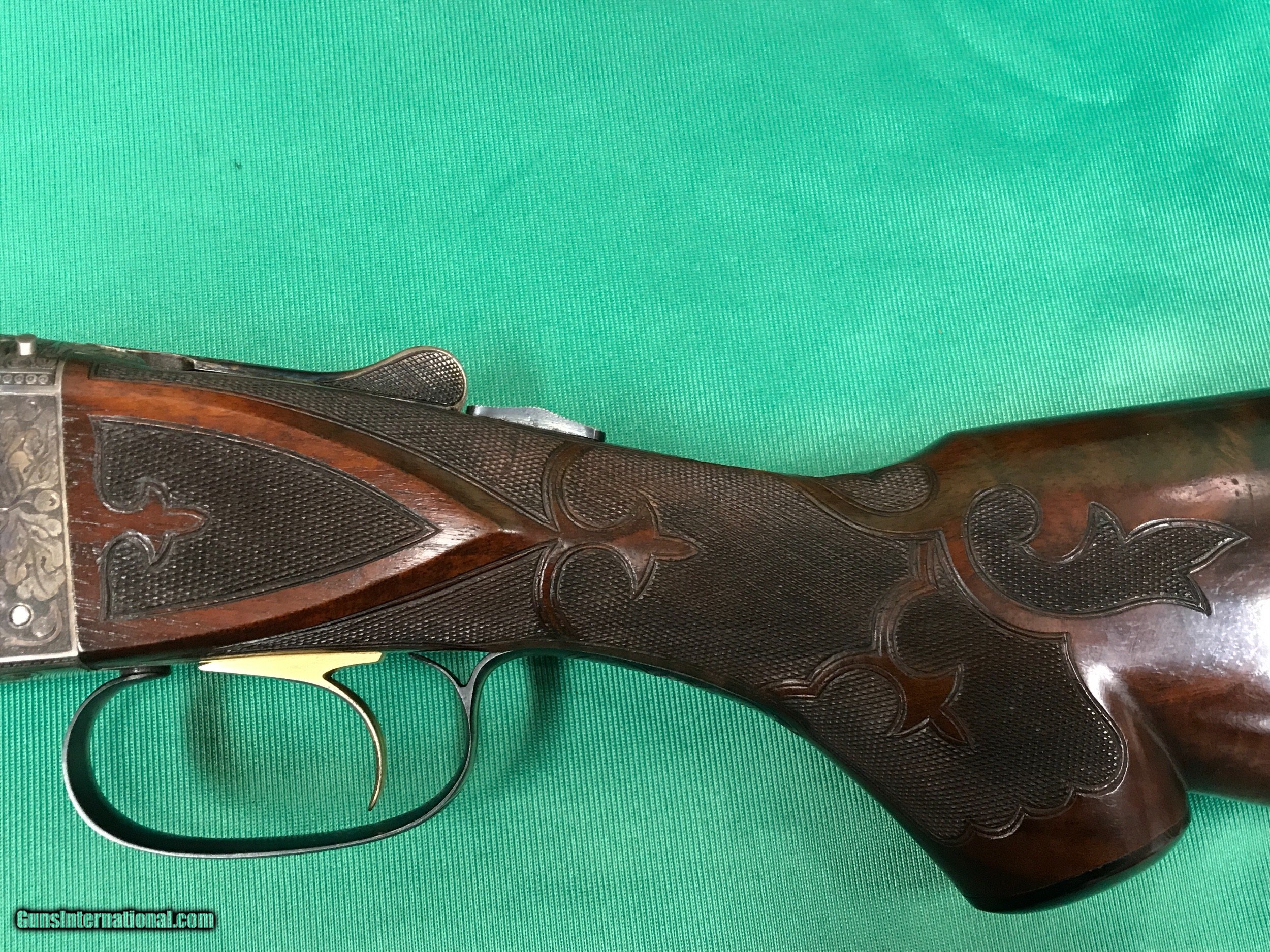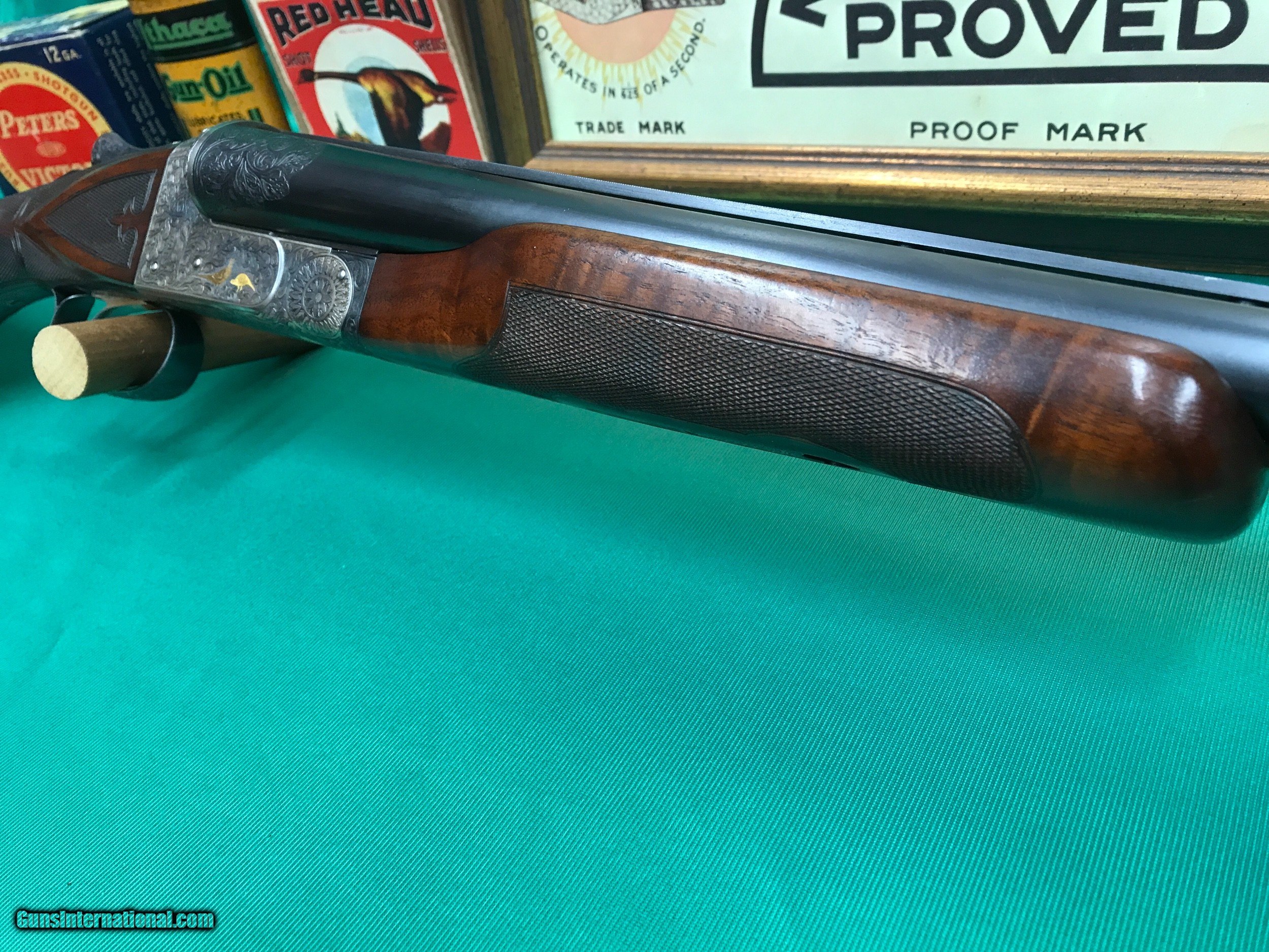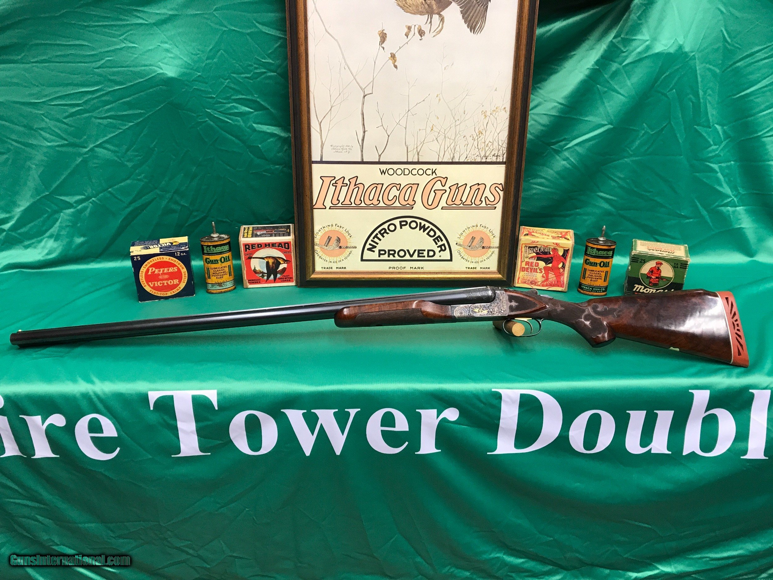 Description: We have a fully optioned Grade 7E that was built in 1926 , the gun was shipped to Elmer Starner on August 20,1926 who won the Grand American with a Grade 5 Ithaca Knick in the same year . The gun features 32'' barrels that are choked Full/Full .040-.040 , Ejectores , SST .731 Bores , 14'' LOP to an Ithaca pad which has been replaced ,DAC 1 1/2'' DAH 1 1/2'' , Baby Monte Carlo , this is a live gun with no safety , the the gun letters exactly as described from Cody . I believe this is one of the best Grade 7's in the country , there were only approximately 22 grade 7 NID built . It is nearly flawless there is a mark on the right cheek piece please see the picture with the pen , This is not a crack !!!...... other than that its perfect wood ,metal ,bores ect .Any questions please call or e-mail 607-227-4088 . More pictures can be had on request. Thank you Brian SOLD Manufacturer: Ithaca Model: NID Barrel Length: 32 Bore: 731 Ejectors: yes Condition: very good Metal Condition: very good Wood Condition: very good Bore Condition: very good Barrels: 32 |