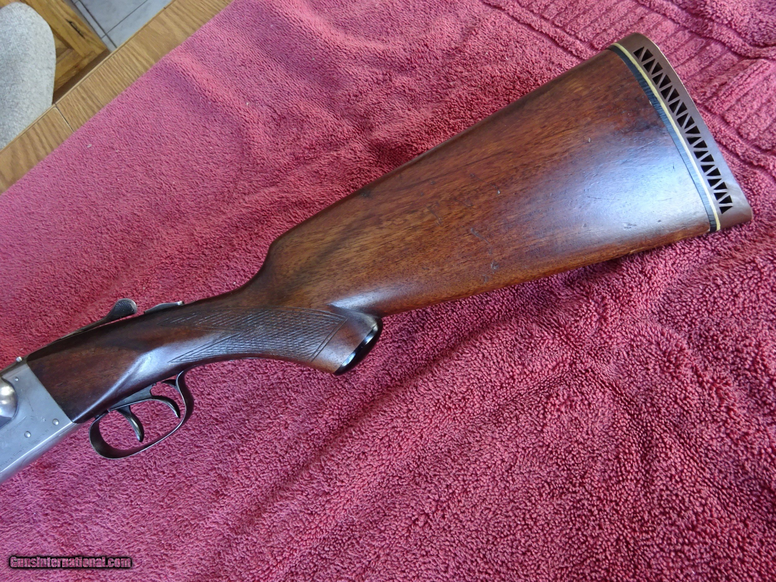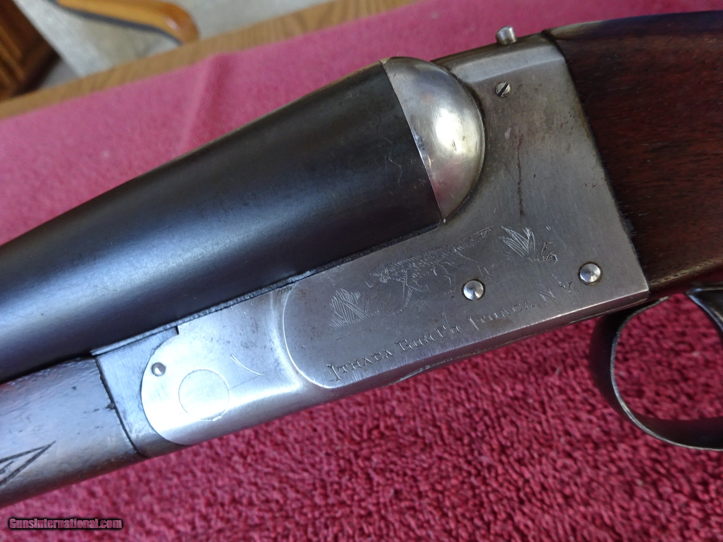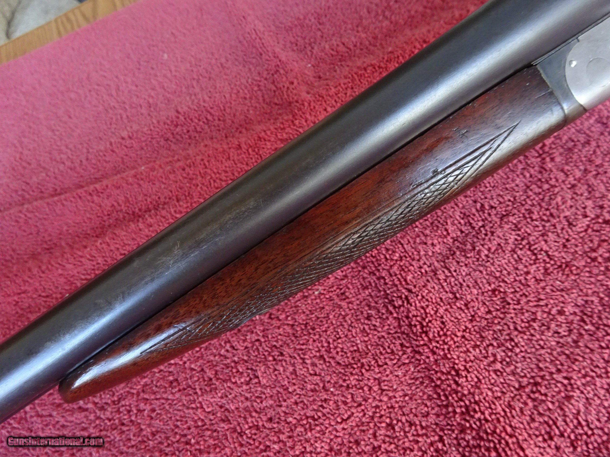 Description: ITHACA N.I.D., FIELD GRADE 12 GAUGE. 30" BARRELS, MODIFIED AND FULL, VERY GOOD BLUE, MIRROR BRIGHT BORES, 2 3/4" CHAMBERS, SINGLE SIGHT, EXTRACTORS. STANDARD ENGRAVING WITH A POINTING DOG ON BOTH SIDES, CASE COLOR IN THE PROTECTED AREAS, TOP LEVER TO THE FAR RIGHT, TIGHT ON FACE. PISTOL GRIP STOCK, SPLINTER FOREARM, VERY GOOD WOOD AND CHECKERING. DIMENSIONS 1 1/2" X 2 3/4" X 14 5/8", 7 1/4 POUNDS. MADE IN 1926. GOOD HONEST TURKEY GUN. $650.00 + $50.00 Insured shipping to an FFL address. See all Pats gun listings on this site! We also have hundreds of pieces of ORIGINAL gun company advertising & memorabilia available for sale on our site SPORTINGCOLLECTIBLES. We have no reprints or reproductions. Email for more information. SOLD Curio/Relic: Yes |