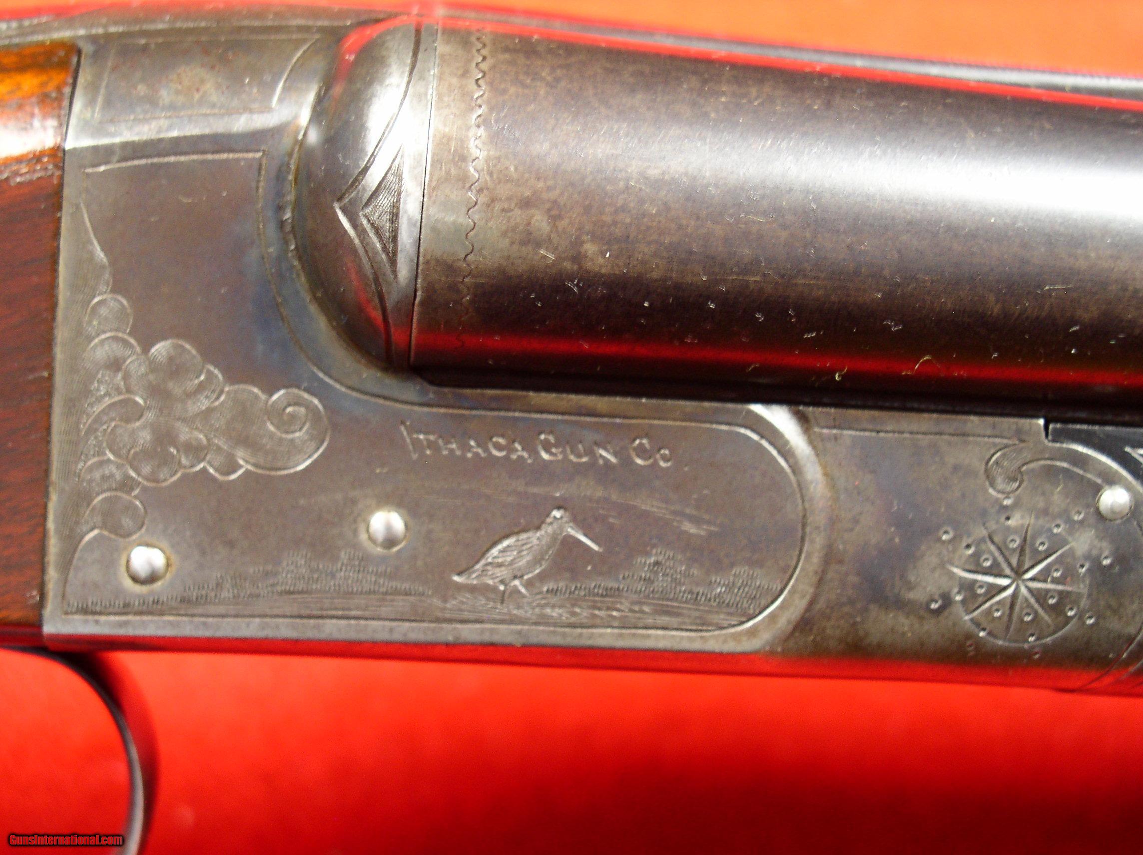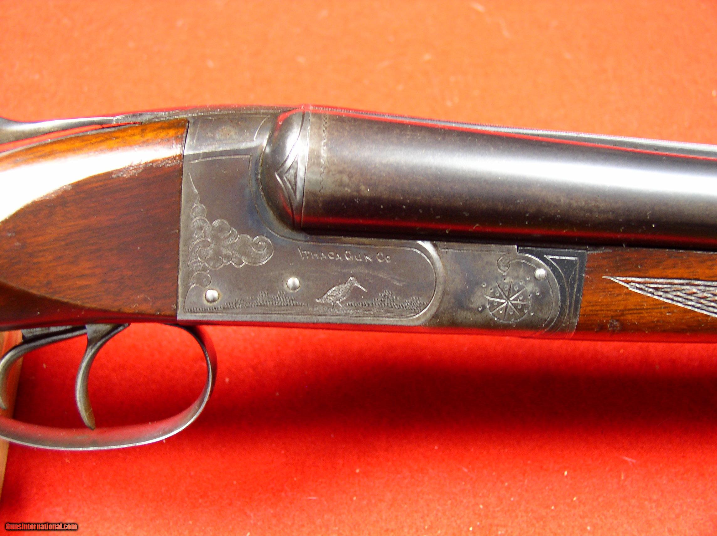 Description: ALL ORIGINAL ITHACA NID 16 GA WITH 26" BARRELS FACTORY MARKED CYLINDER (0) AND MODIFIED (2), 2 3/4" CHAMBERS AND EJECTORS. Manufactured in 1946 when post war production resumed and listed as "Special" for unknown reason. The 26" Barrels are Factory Marked 0/2 meaning Cylinder and Modified Chokes. Right Bore Measures .666" and has a Choke Constriction of .011". Left Bore Measures .672" and has a Choke Constriction of .016". LOP is 14 1/8" to the Factory Butt Plate. DAC is 1 3/8". DAH is 2 3/8" The Gun Weighs 6 lbs 13 oz. MODERN DIMENSIONS!! The Gun has between 85-90% Factory Case Color, 85-90% Factory Blue and 85-90% Wood with Factory Finish. THIS IS A VERY VERSITILE UPLAND AND CLAYS GUN WHILE BEING IN COLLECTOR CONDITION! $3450 plus actual shipping and insurance to FFL or C&R SOLD Curio/Relic: Yes |