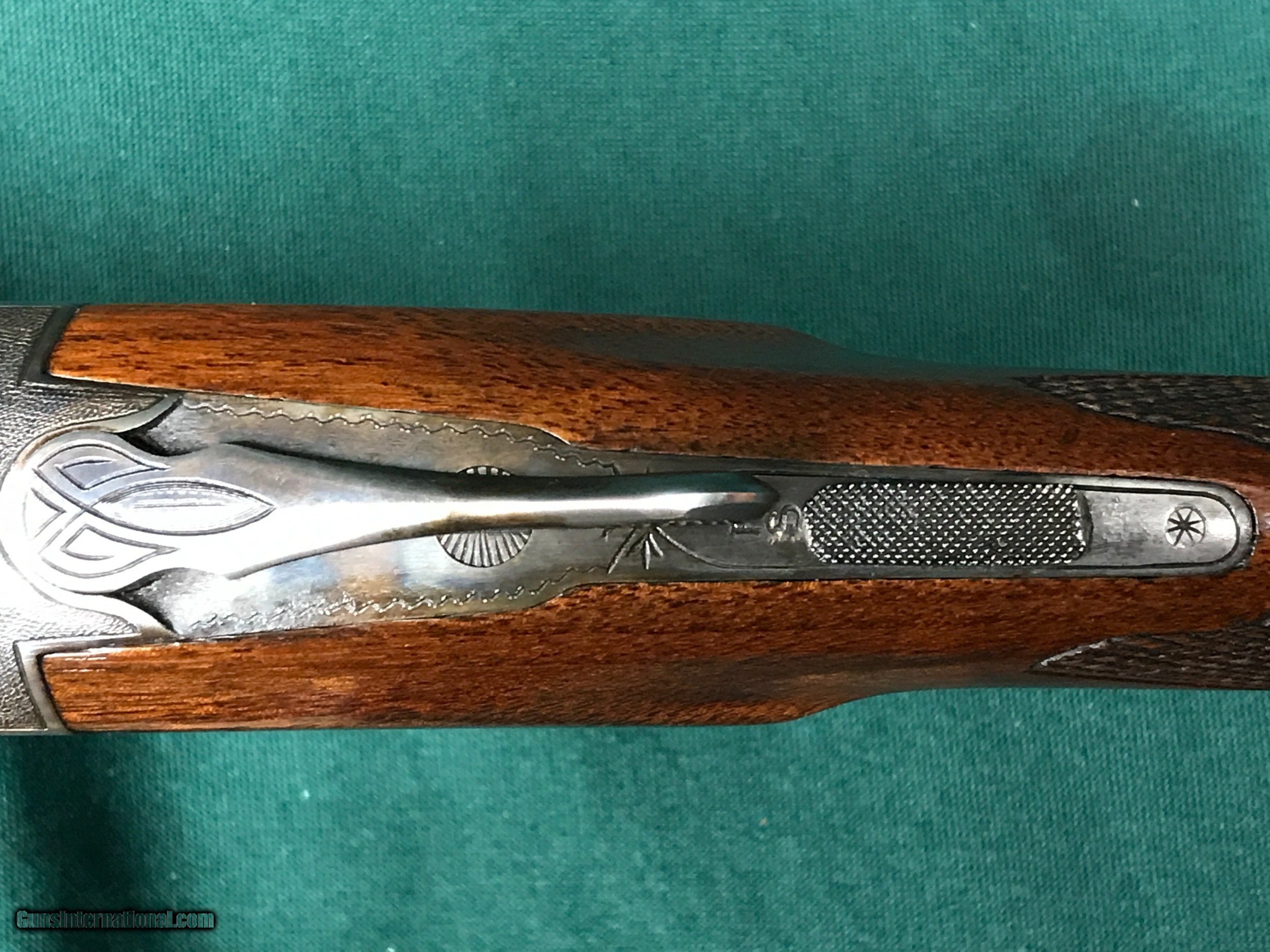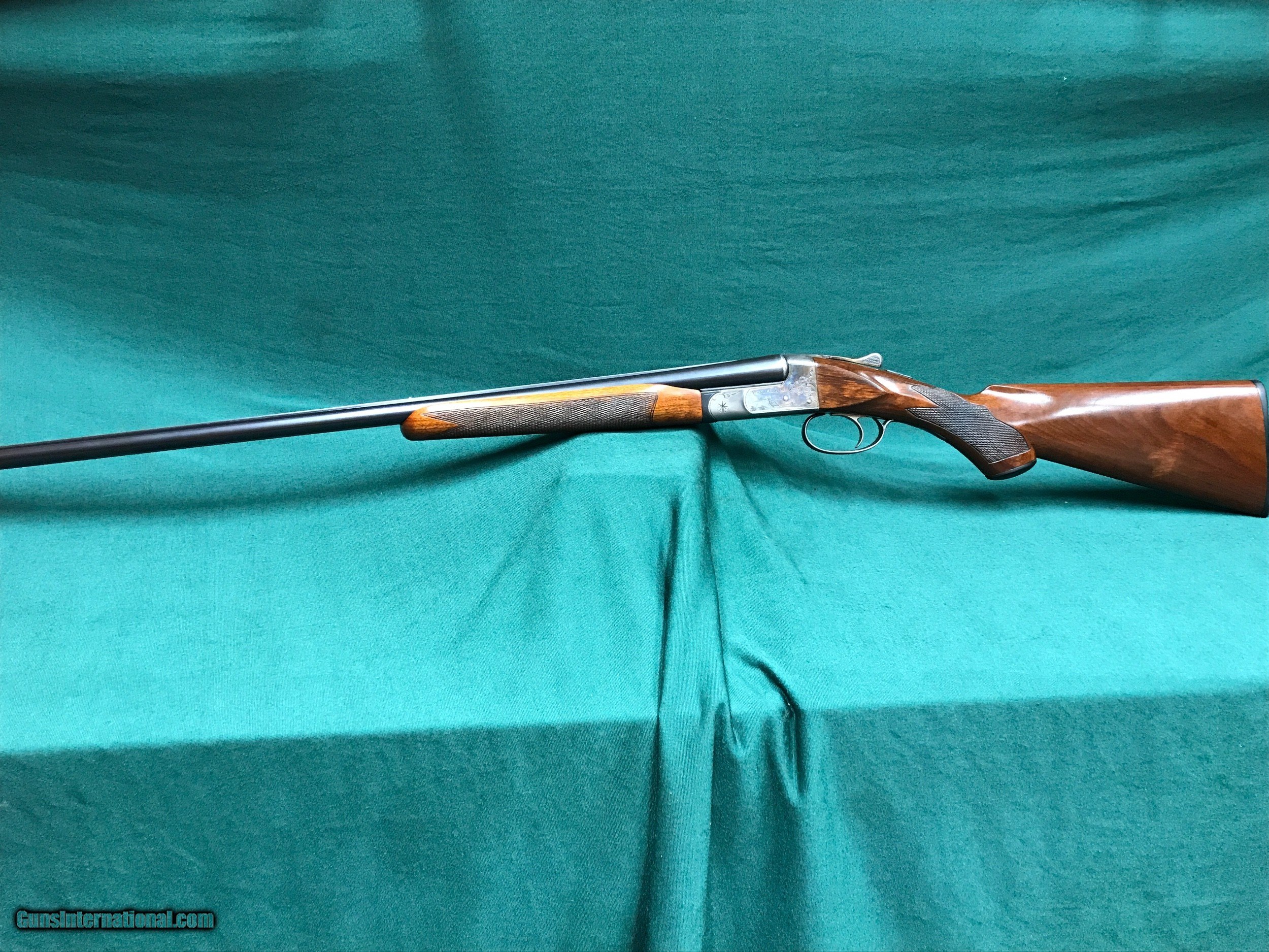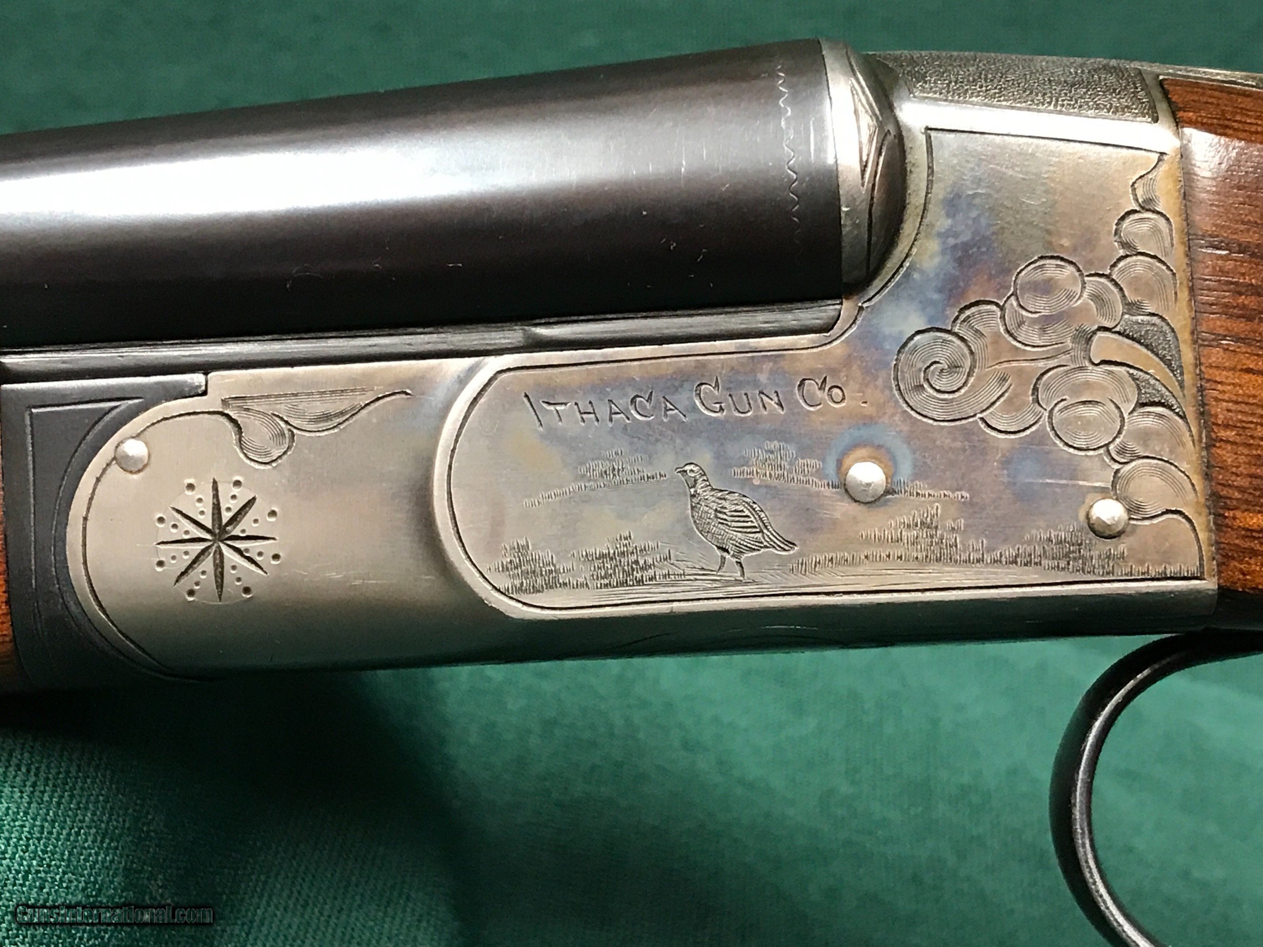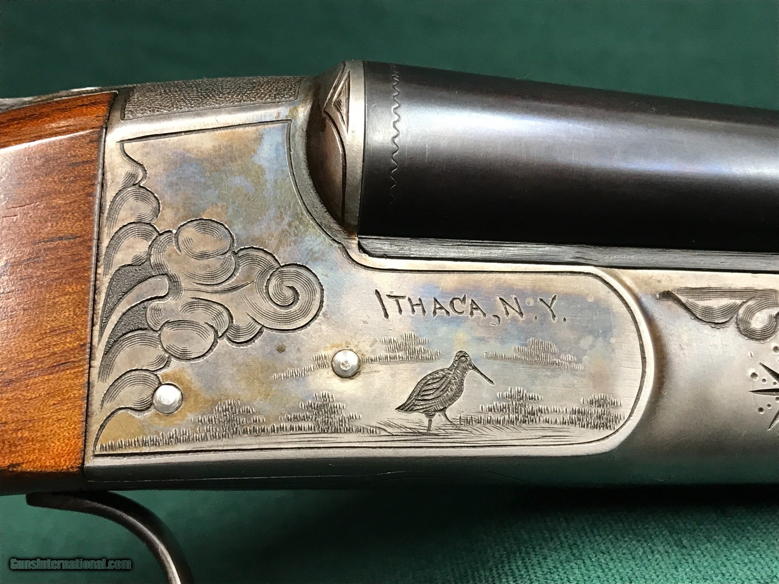 Description: We have a Ithaca 28 Ga grade 2 , this is a very nice very hard gun to find as only 58 NID 28 Ga guns were produced . This gun was built in 1936 , it features 26 '' barrels , SST , ejectors , beavertail forend , it is choked I/C-MOD from a .550 bore , LOP 13 3/4 to an Ithaca hard plate , DAC 1 3/4 , DAH 2 5/8 , there are no dents in or on the barrels , bores are perfect , wood is wonderfull with no cracks or splits , checkering is sharp , the gun still has vibrant case colors left , and rust bluing is very good with no rust .More pictures can be had on request , please call or e-mail with questions 607-539-6271 607-227-4088 , Thank you Brian Hunt SOLD Curio/Relic: Yes Manufacturer: Ithaca Model: NID Bore: .550 Chambers: 2 7/8 Ejectors: yes Condition: very good Metal Condition: very good Wood Condition: very good Bore Condition: very good Triggers: single Gauge Info: 28 Stock Comb: 1 3/4 Stock Heel: 2 5/8 Stock Cast: none Chokes: I/C MOD |