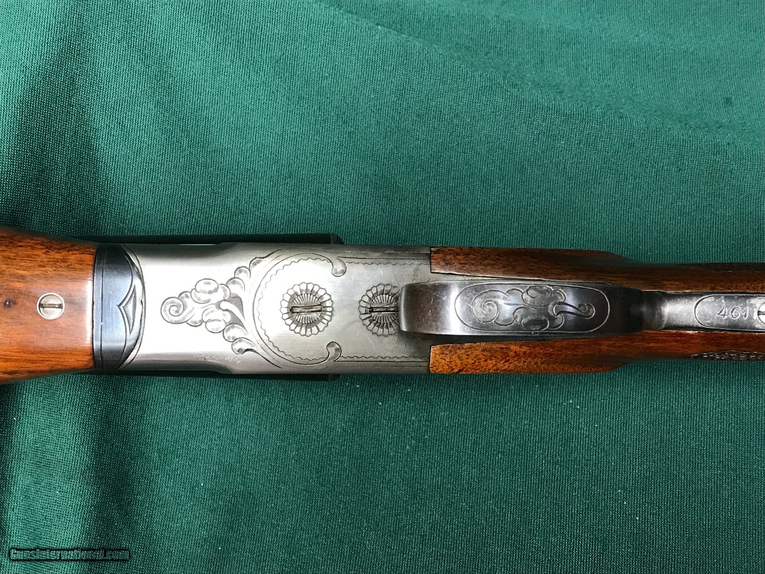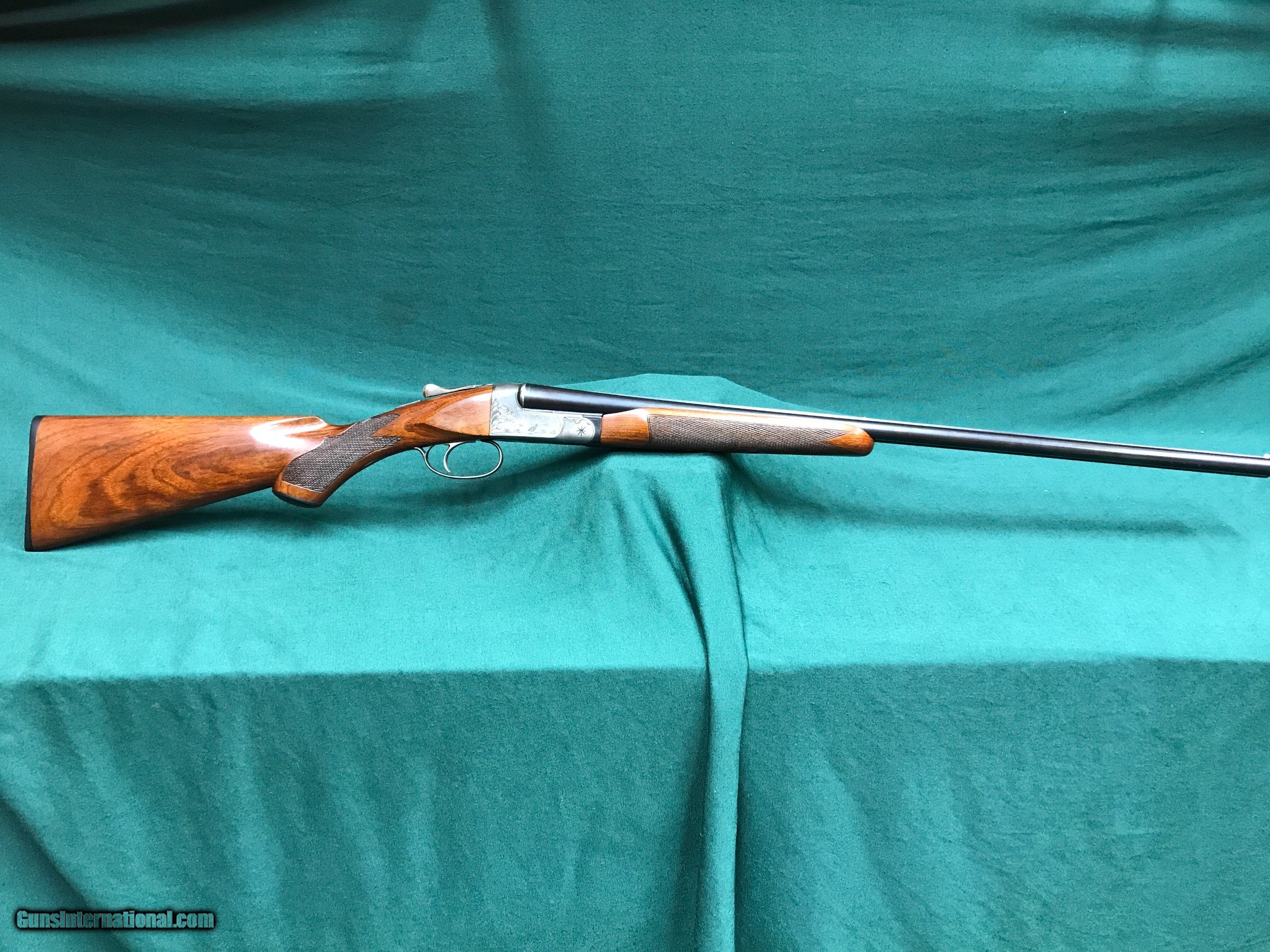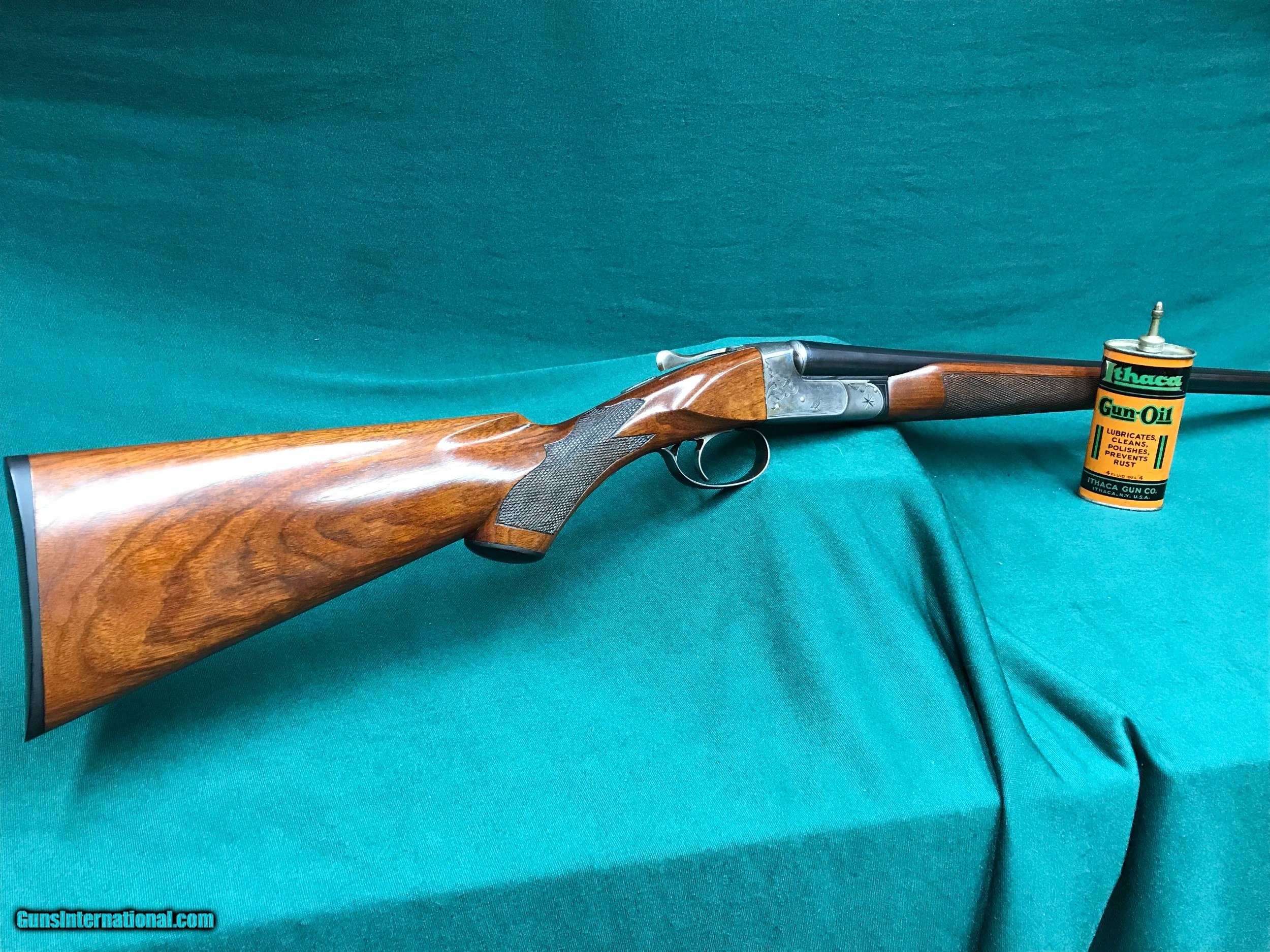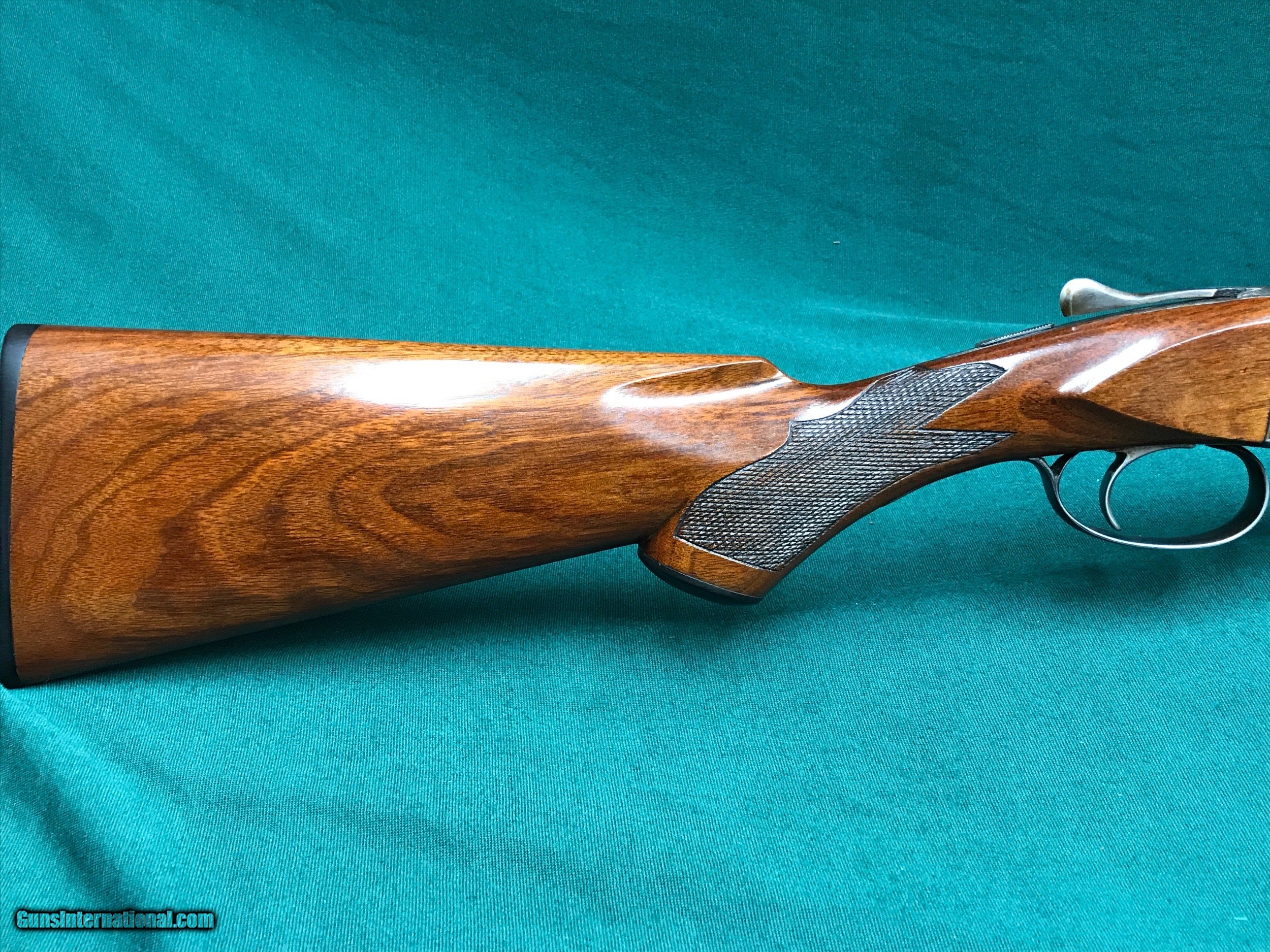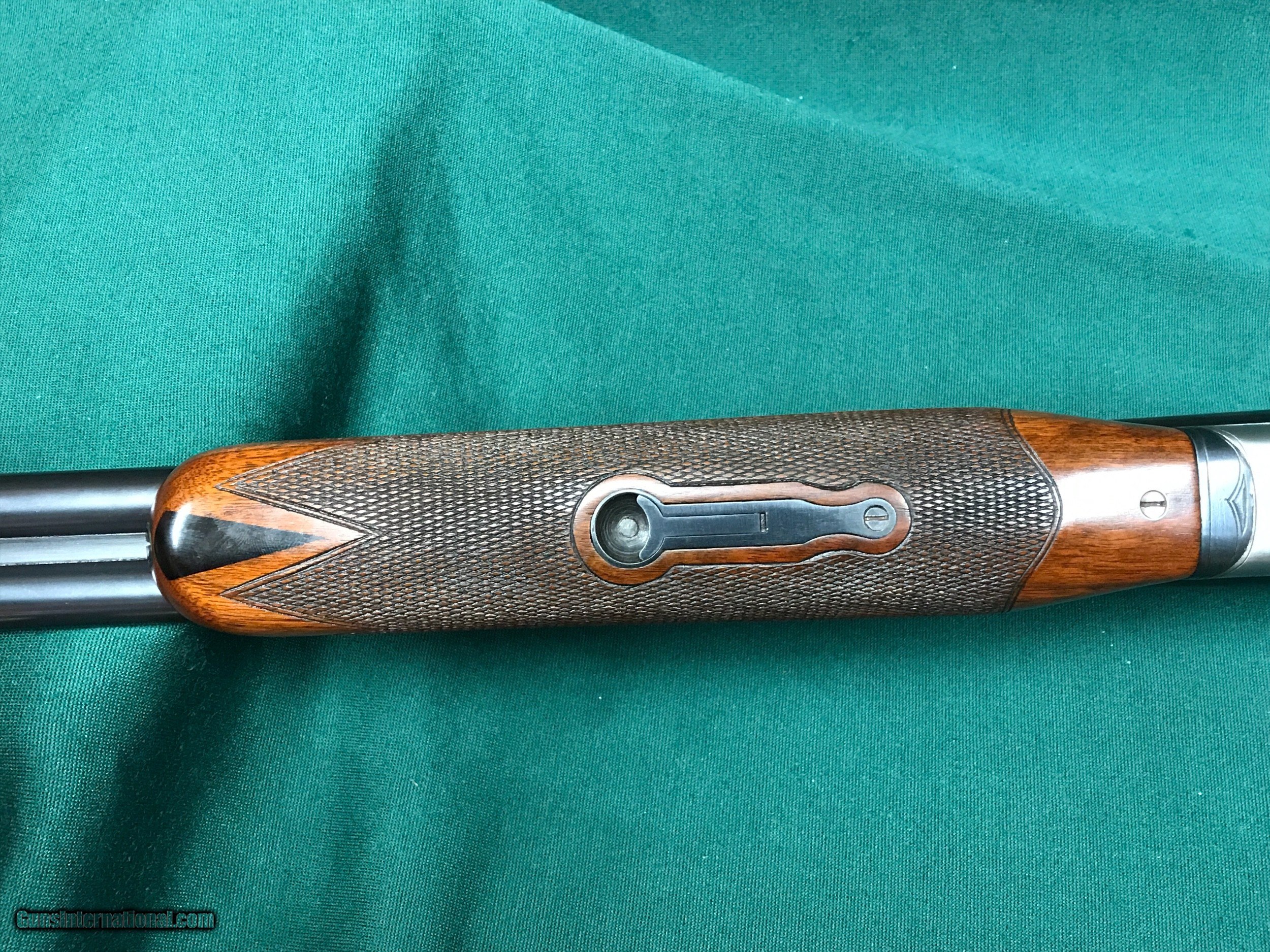 Description: We have a Ithaca 28 Ga grade 2 , this is a very nice very hard gun to find as only 58 NID 28 Ga guns were produced . This gun was built in 1936 , it features 26 '' barrels , SST , ejectors , beavertail forend , it is choked I/C-MOD from a .550 bore , LOP 13 3/4 to an Ithaca hard plate , DAC 1 3/4 , DAH 2 5/8 , there are no dents in or on the barrels , bores are perfect , wood is wonderfull with no cracks or splits , checkering is sharp , the gun still has vibrant case colors left , and rust bluing is very good with no rust .More pictures can be had on request , please call or e-mail with questions 607-539-6271 607-227-4088 , Thank you Brian Hunt SOLD Curio/Relic: Yes Manufacturer: Ithaca Model: NID Bore: .550 Chambers: 2 7/8 Ejectors: yes Condition: very good Metal Condition: very good Wood Condition: very good Bore Condition: very good Triggers: single Gauge Info: 28 Stock Comb: 1 3/4 Stock Heel: 2 5/8 Stock Cast: none Chokes: I/C MOD |