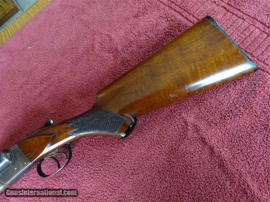 Description: ITHACA NID, FIELD GRADE 16 GAUGE, 28" BARRELS, IMCYL. AND FULL, 98% BRIGHT BLUE, MIRROR BORES 2 3/4" CHAMBERS, GOOD CASE COLOR, UNTURNED SCREWS, TOP LEVER TO THE FAR RIGHT, LINE ENGRAVING NO COCKING INDICATORS. PISTOL GRIP STOCK, SPLINTER FOREARM, EXCELLENT WOOD AND CHECKERING. ORIGINAL GRIP CAP AND BUTTPLATE, 1 1/4" X 2 3/8" X 14", 6 1/2 POUNDS. 100% ORIGINAL CONDITION. NICE GUN MADE IN 1937. $1575.00 + $45.00 Insured shipping to an FFL address. See all Pats listings We also have hundreds of pieces of ORIGINAL gun company advertising & memorabilia available for sale. We have no reprints or reproductions. Email for more information. SOLD Curio/Relic: Yes Serial Number: 464xxx |