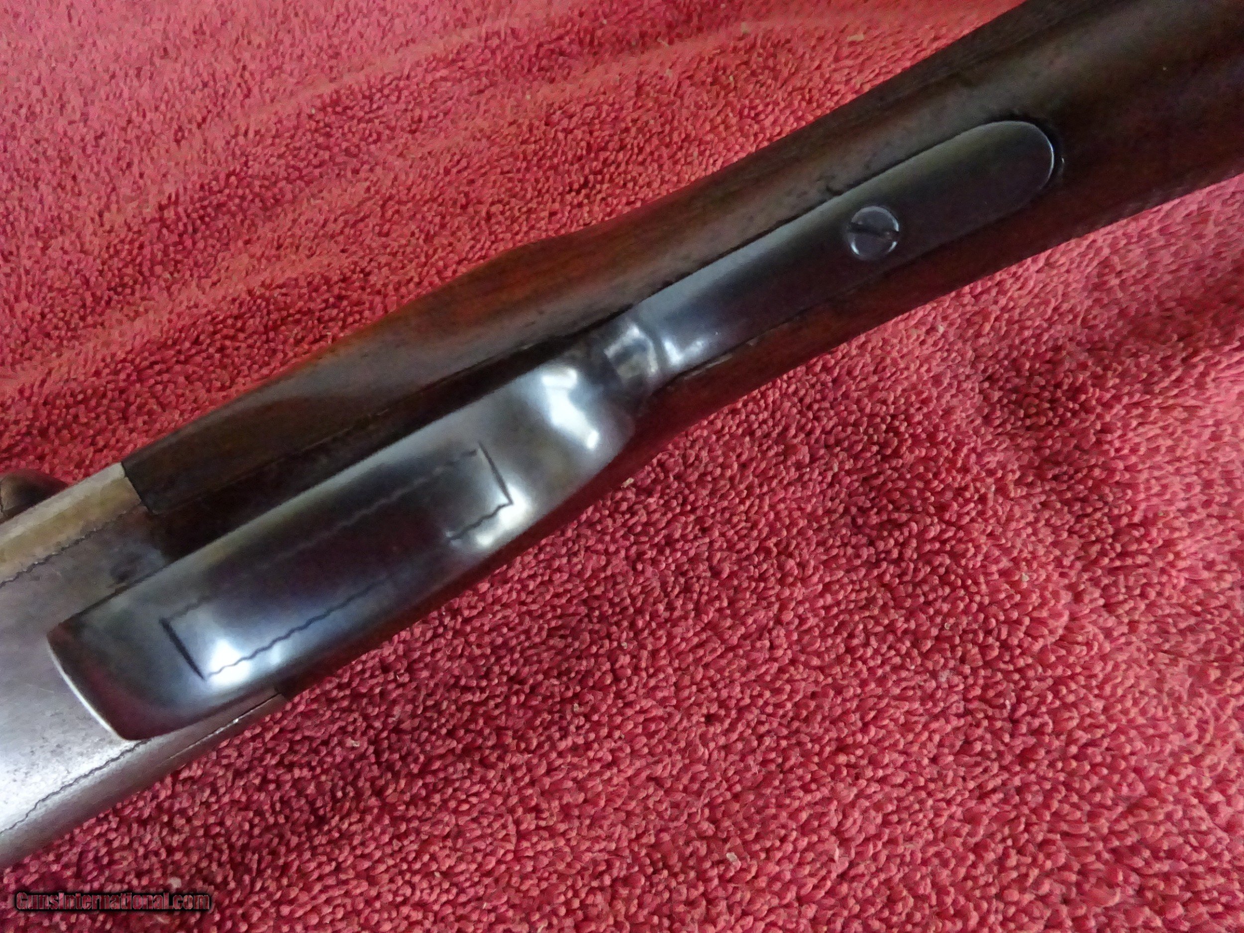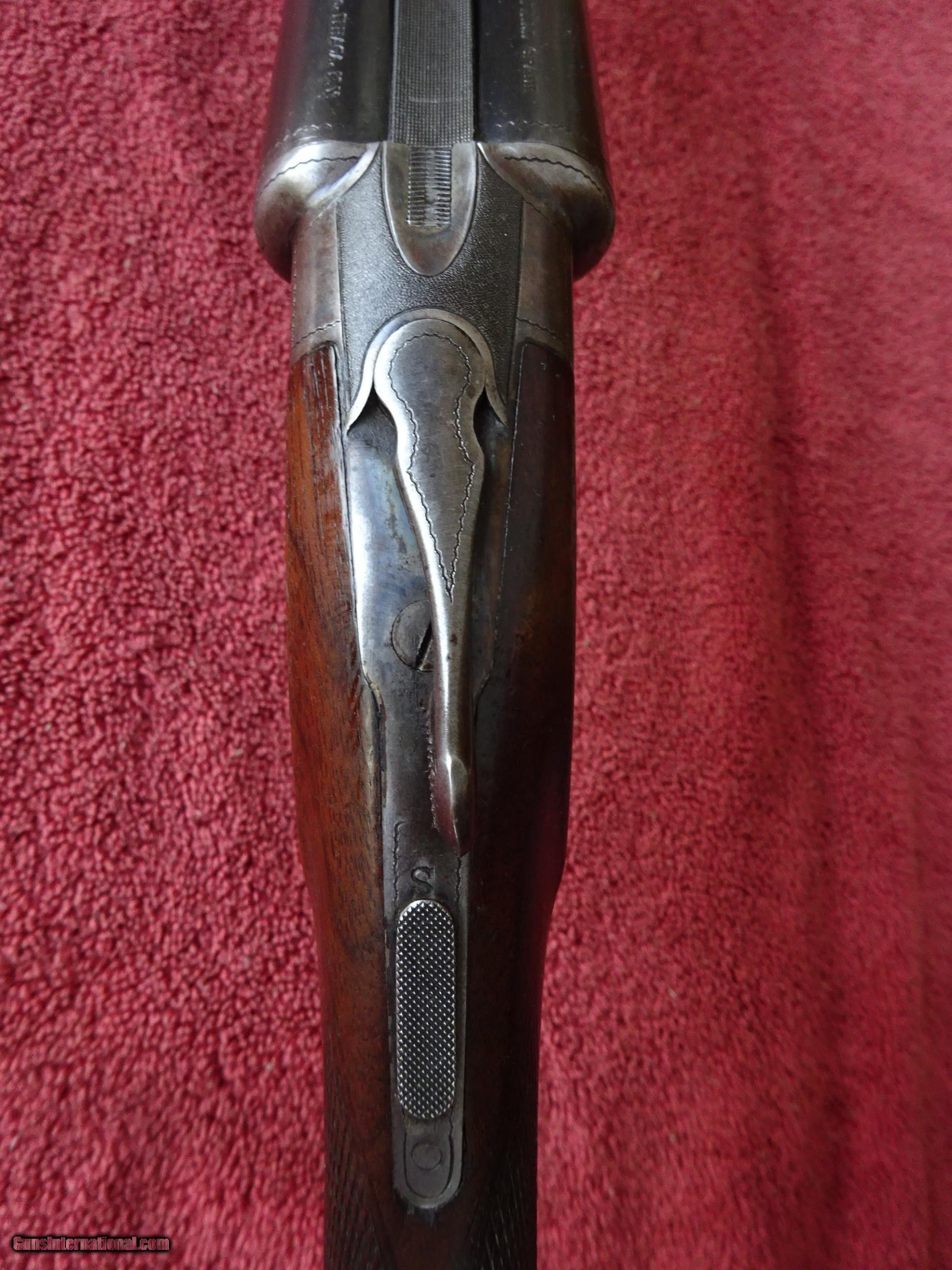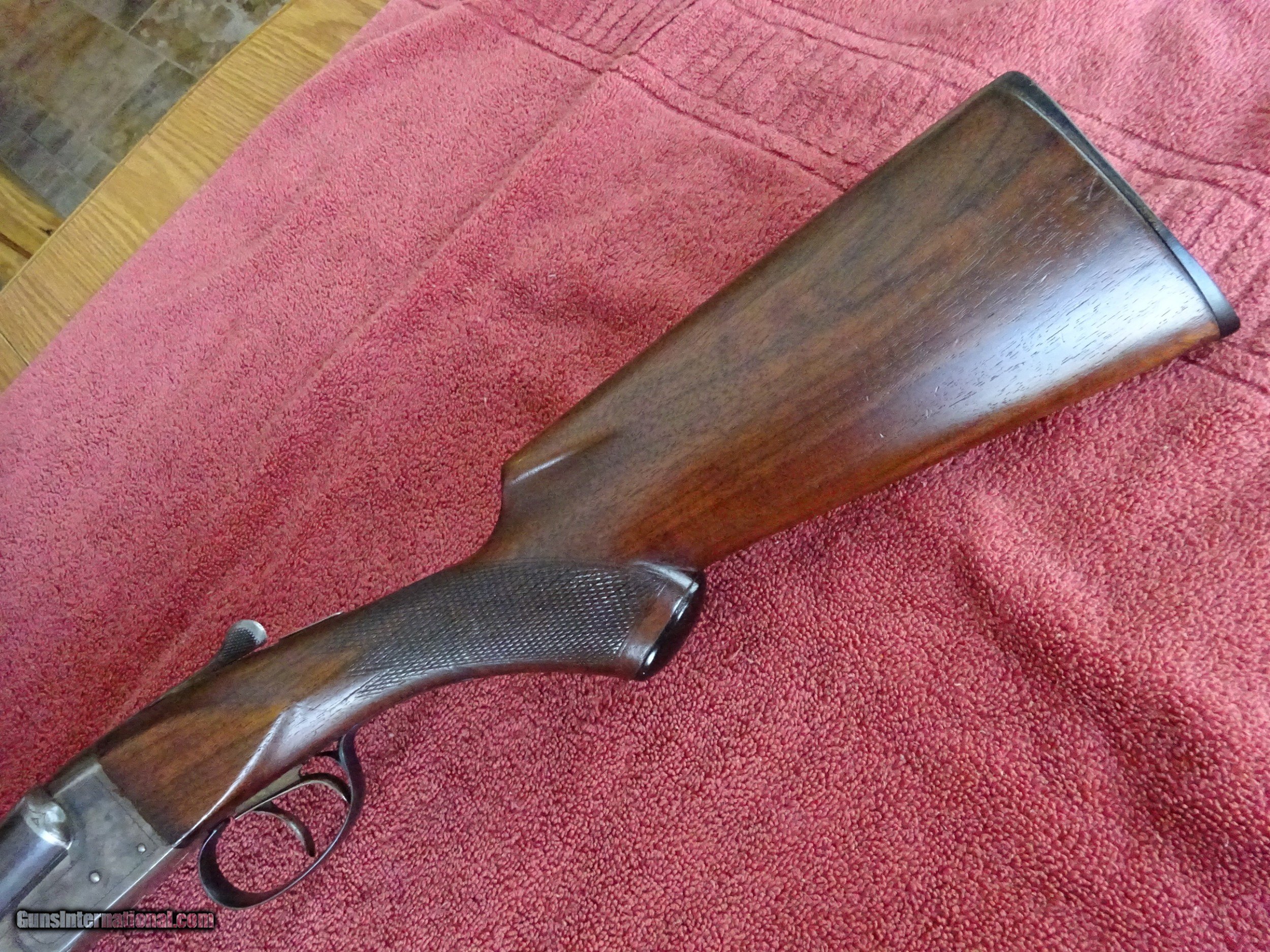 Description: ITHACA, N.I.D., FIELD GRADE 20 GAUGE. 28" BARRELS, MODIFIED AND FULL, 2 3/4" CHAMBERS. VERY GOOD BLUE, MIRROR BRIGHT BORES. VIVID CASE COLOR IN THE PROTECTED AREAS, LINE ENGRAVING WITH STIPPLING AT TOP OF FRAME. TOP LEVER TO THE FAR RIGHT, TIGHT ON FACE. LATER EXAMPLE WITHOUT COCKING INDICATORS. PISTOL GRIP STOCK, SPLINTER FOREARM, VERY GOOD WOOD AND CHECKERING. ORIGINAL GRIP CAP AND BUTTPLATE, 1 3/8" X 2 1/2" X 14", JUST OVER 6 POUNDS. 100% ORIGINAL CONDITION, MADE IN 1936. $1475.00 + $50.00 Insured shipping to an FFL address. See all Pats gun listings on this site! We also have hundreds of pieces of ORIGINAL gun company advertising & memorabilia available for sale on our site SPORTINGCOLLECTIBLES. We have no reprints or reproductions. Email for more information. SOLD |