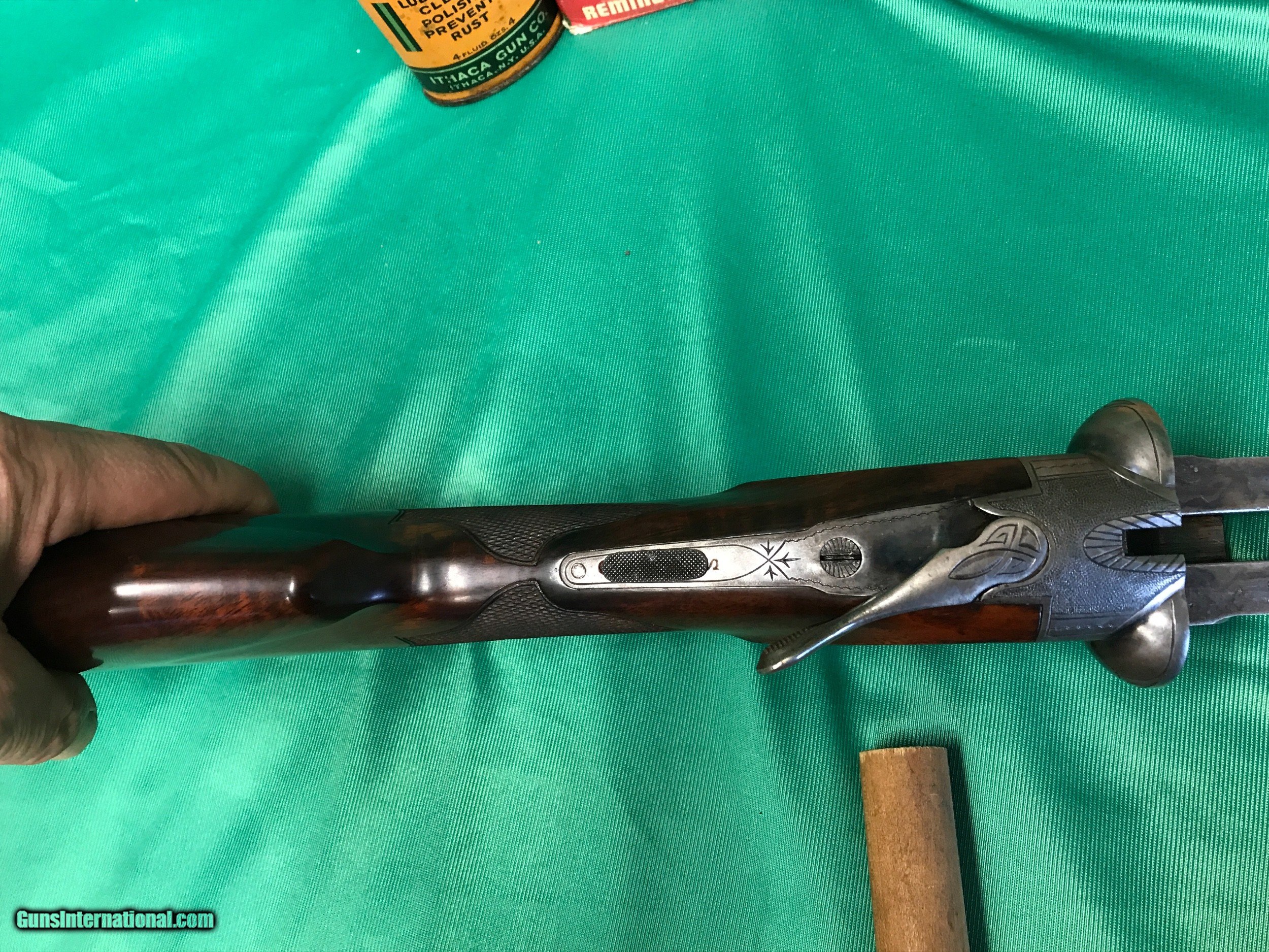 Description: WE HAVE AN ITHACA NID MAGNUM 10 GRADE 2 THAT IS IN WONDERFUL CONDITION , THE GUN FEATURES 32'' BARRELS THAT ARE CHOKED FULL/FULL .038-.038 , IT HAS 3 1/2'' CHAMBERS , DOUBLE TRIGGERS , EXTRACTORS , LOP IS 14'' , DAC 1 1/2 '' DAH 2 1/2'' THERE ARE NO CRACKS OR SPLITS IN THE WOOD , BARREL BLUING IS STRONG WITH NO RUST OR DENTS , CHECKERING IS SHARP , CASE COLOR STILL PRESENT IN PROTECTED AREAS , THE WIEGHT IS 11 POUNDS , THIS IS A HARD GUN TO FIND IN THIS CONDITION , ITHACA MADE 164 OF THESE IN A GRADE 2 ,ANY QUESTIONS PLEASE CALL OR EMAIL 607-227-4088 , MORE PICTURES CAN BE HAD ON REQUEST THANK YOU Brian Hunt. SOLD Curio/Relic: Yes Shotgun Gauge: 10 Gauge Manufacturer: Ithaca Model: NID Chambers: 3 1/2 Ejectors: NO Condition: very good Metal Condition: very good Wood Condition: very good Bore Condition: very good Barrels: 32 |