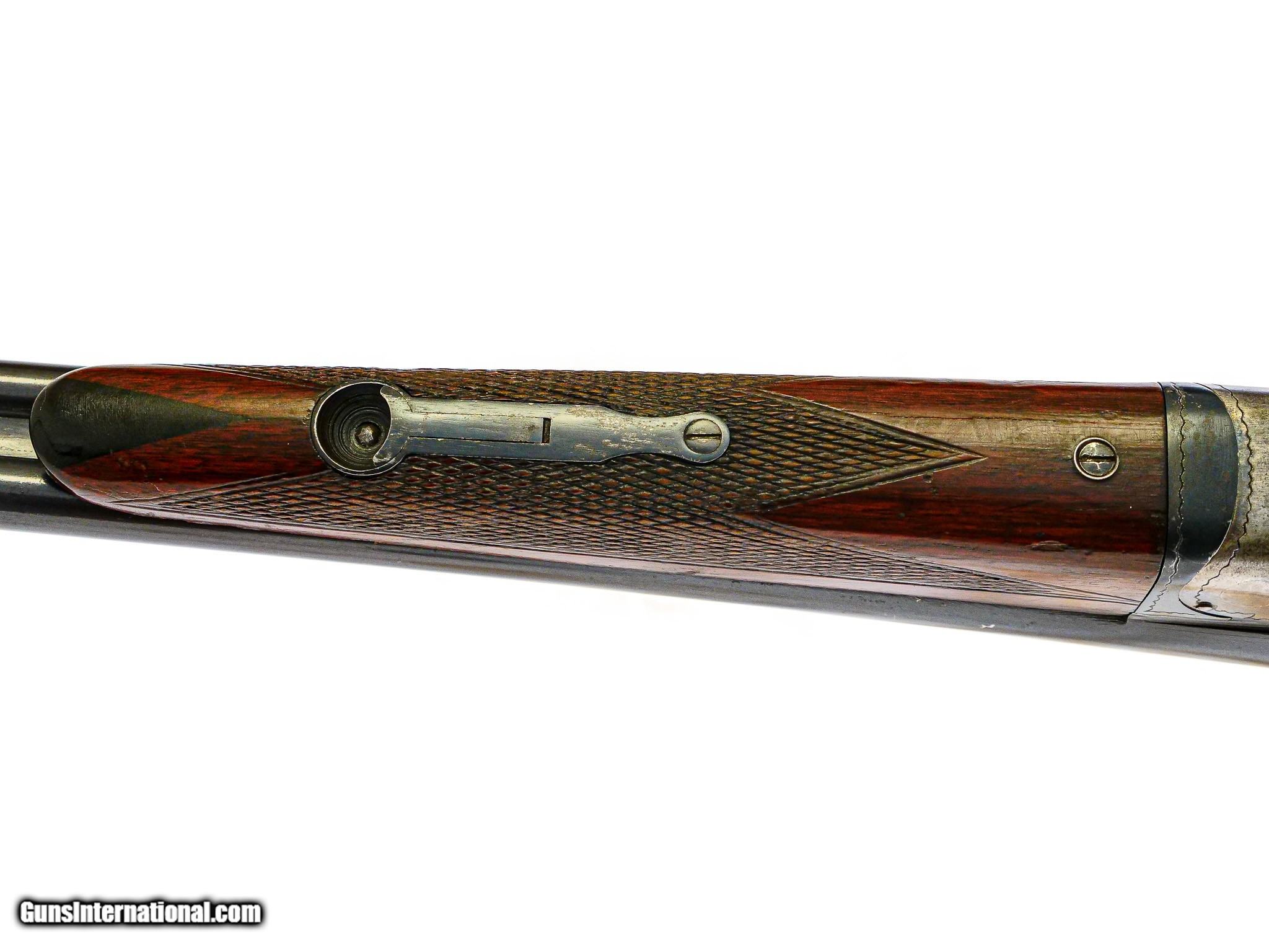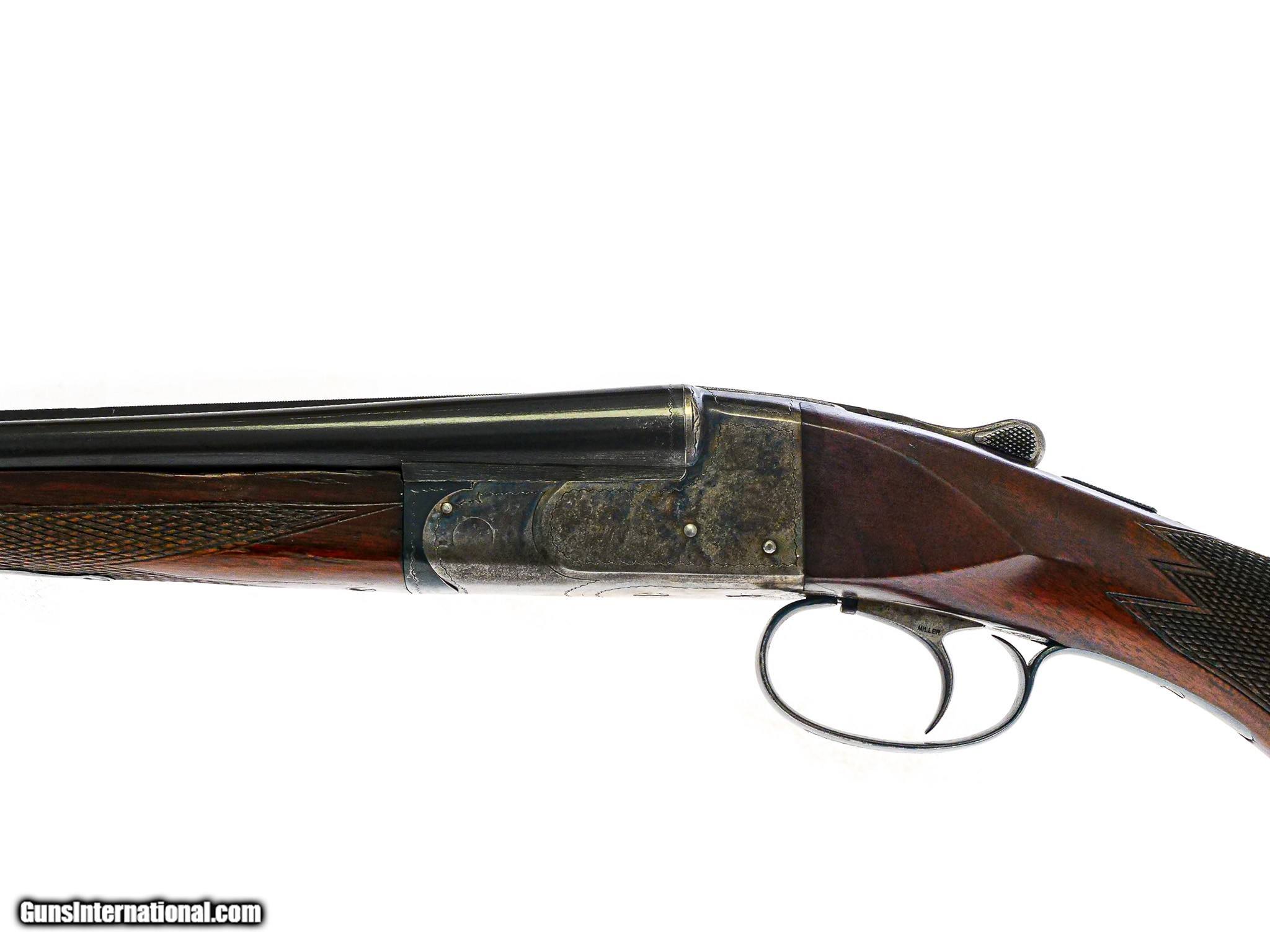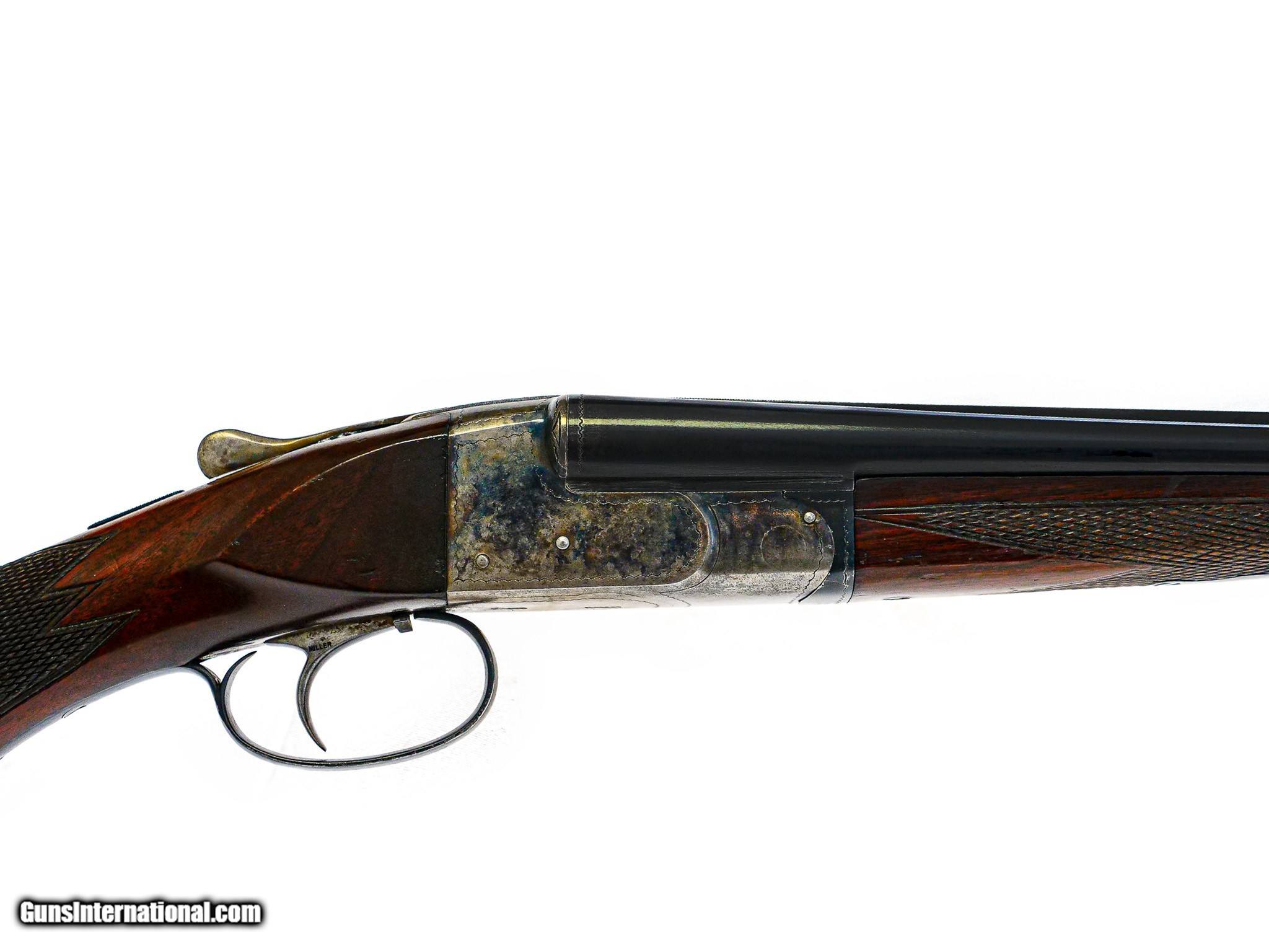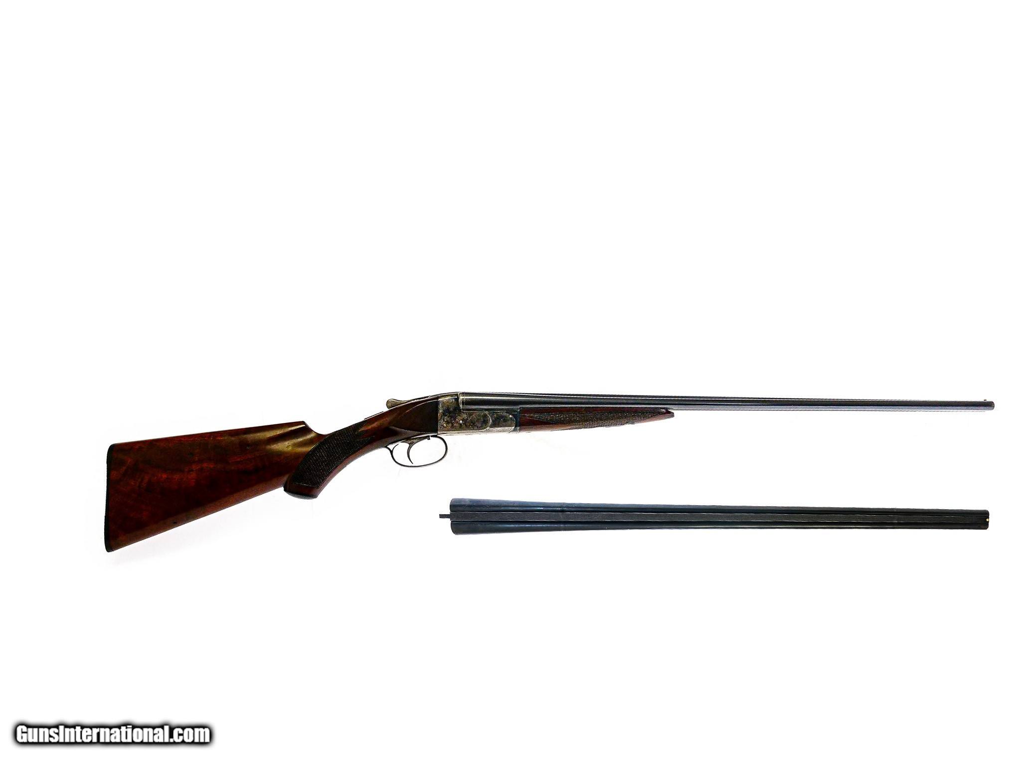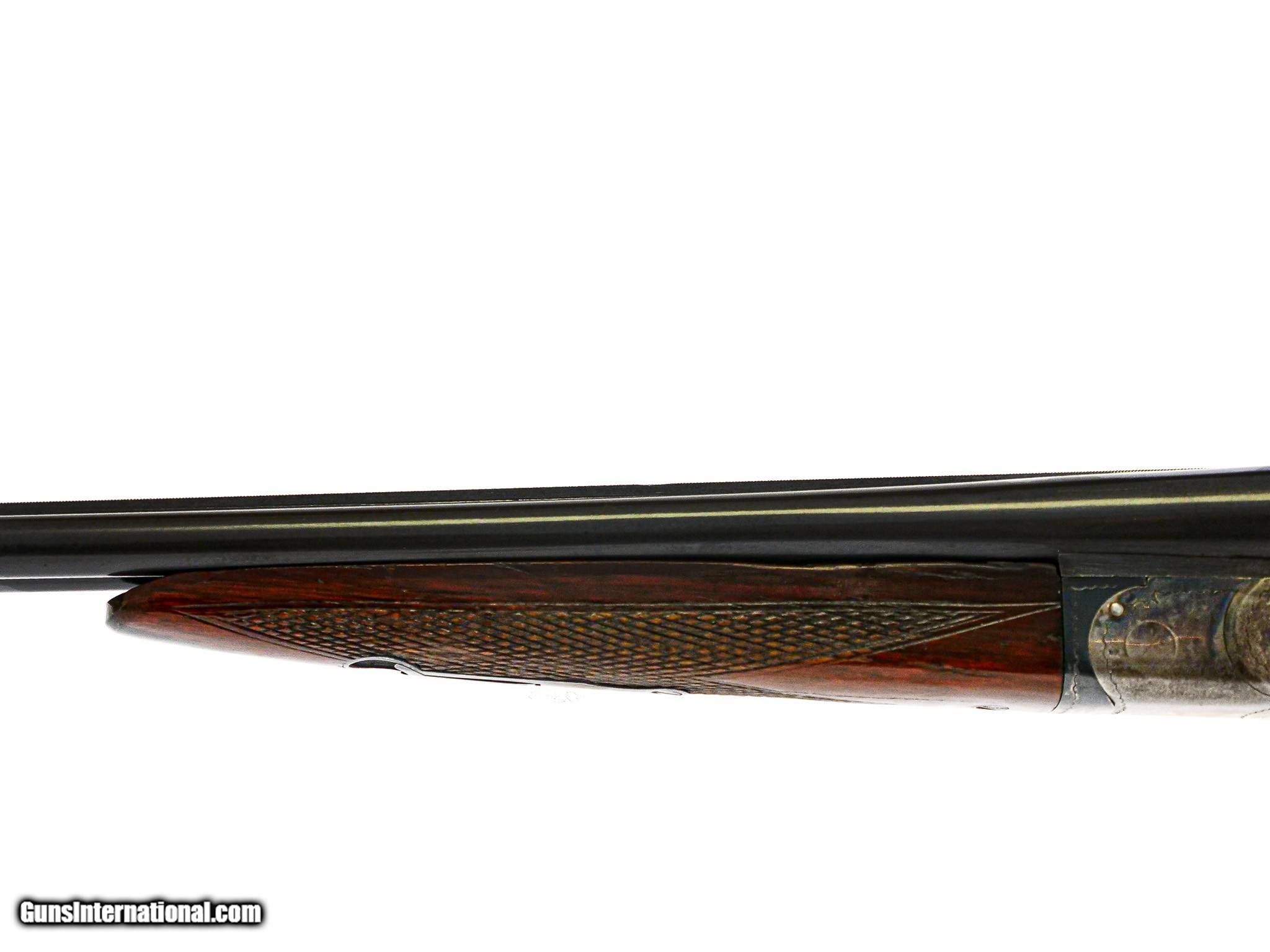 Description: Ithaca - NID, SxS, Two Barrel Set, .410ga/28ga. 26" M/F & 30" F/F. .410 is 26” Choked M/F, matte rib, 3” chamber, pistol grip, buttplate, splinter forend, Miller Single Selective Trigger, auto ejector. 28GA is 30” Choked F/F, 2 ¾ “ chamber. Serial numbers match on all barrels and gun, 80% case color, 95% Barrel blue, Almost perfect wood finish, Very unusual One of the most reasonable multi gauge small bore American gun sets available. Inv: 70181 4 lbs. 13 oz. 13 ¾" x 1 ½" x 2 ½" $11,500.00 SOLD |
