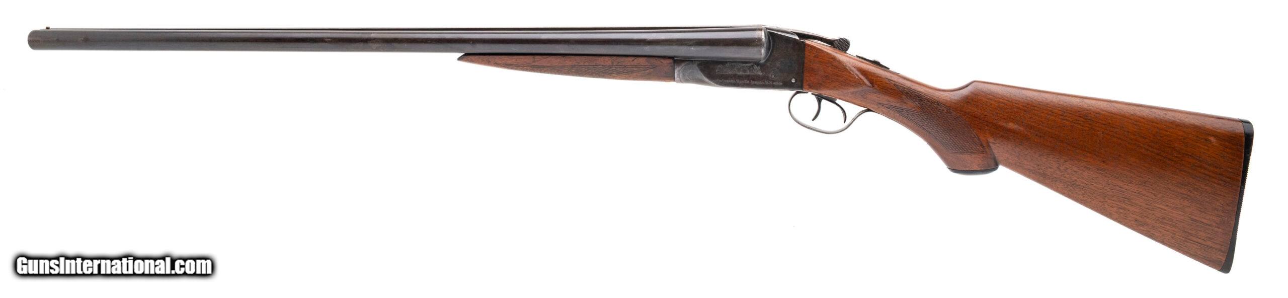 Description: "SN: 346772 made in 1921. 12 gauge side by side shotgun with 28" barrels, 2 ¾" chambers and fixed chokes Modified & Full. Box lock with extractors, double triggers and automatic safety. Engraved case hardened receiver and checkered walnut furniture with a 14" LOP to the original butt plate. Moderate wear and patina to the barrel finish, furniture has some light handling marks but overall in very good condition and the bores are excellent. Barrels are tight and on face with the top lever right of center. Price: $595.00 Contact Seller |