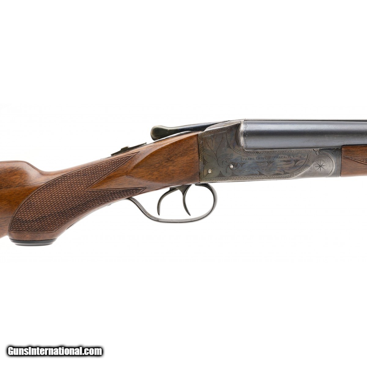 Description: " SN: 331170. Made circa 1920, 28 gauge side by side shotgun with 26"" barrels, 3"" chambers and fixed chokes measuring .001/.017 (IC/LM). Box lock non ejector with double triggers. Stock has a 14 1/8"" LOP to a factory Ithaca butt plate, 1 3/8"" drop at the nose, 2"" drop at the heel and a neutral cast. The wood has been re-finished but the metal is original, bright bores, light handling marks and wear on the barrel and the action retains much of its original colors on the top and sides with some light wear on the bottom. Barrels are tight and have almost no play and the top lever is over barely left of center. Very rare as Ithaca made very few guns in 28 gauge, total weight is 6 lbs. (Consignment) SOLD |