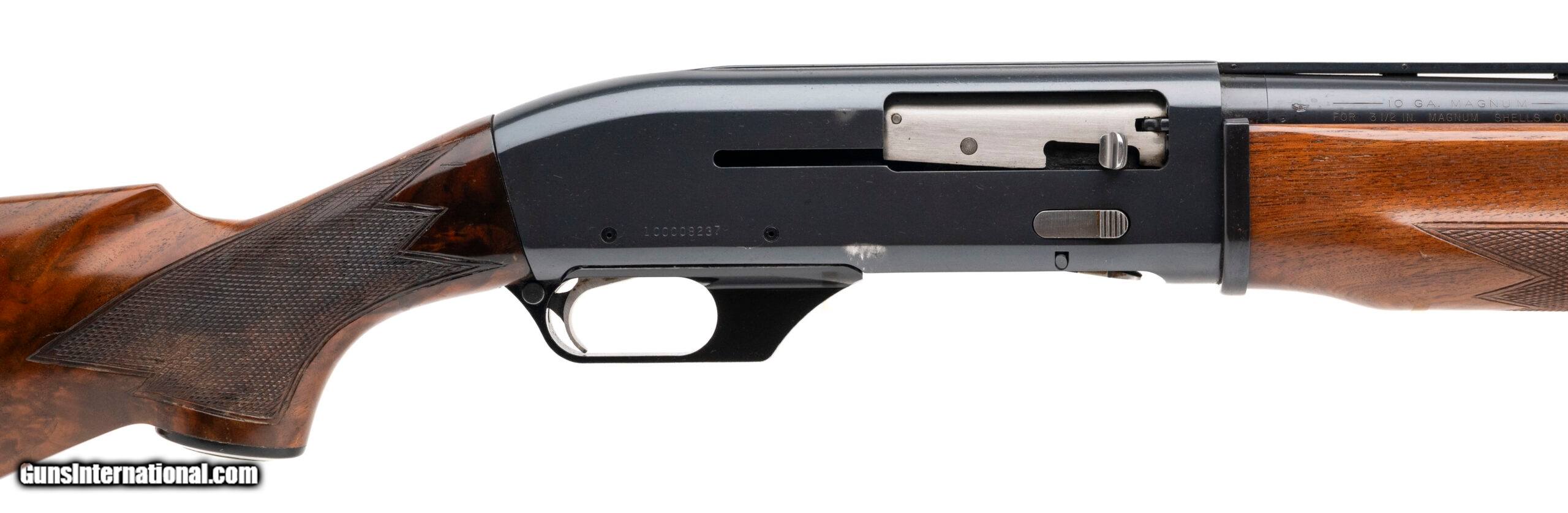 Description: "SN: 100008237. 1980s vintage, 10 gauge with a 28"" vent rib barrel chambered for 3 1/2"" magnum shells w/removable choke. Bore is excellent. Semi-auto field shotgun with blued finish, and checkered wood stock & forend with a 14.25"" LOP. Finish & stock show minor marks throughout. Overall condition is very good. Price: $1,399.95 Contact Seller |