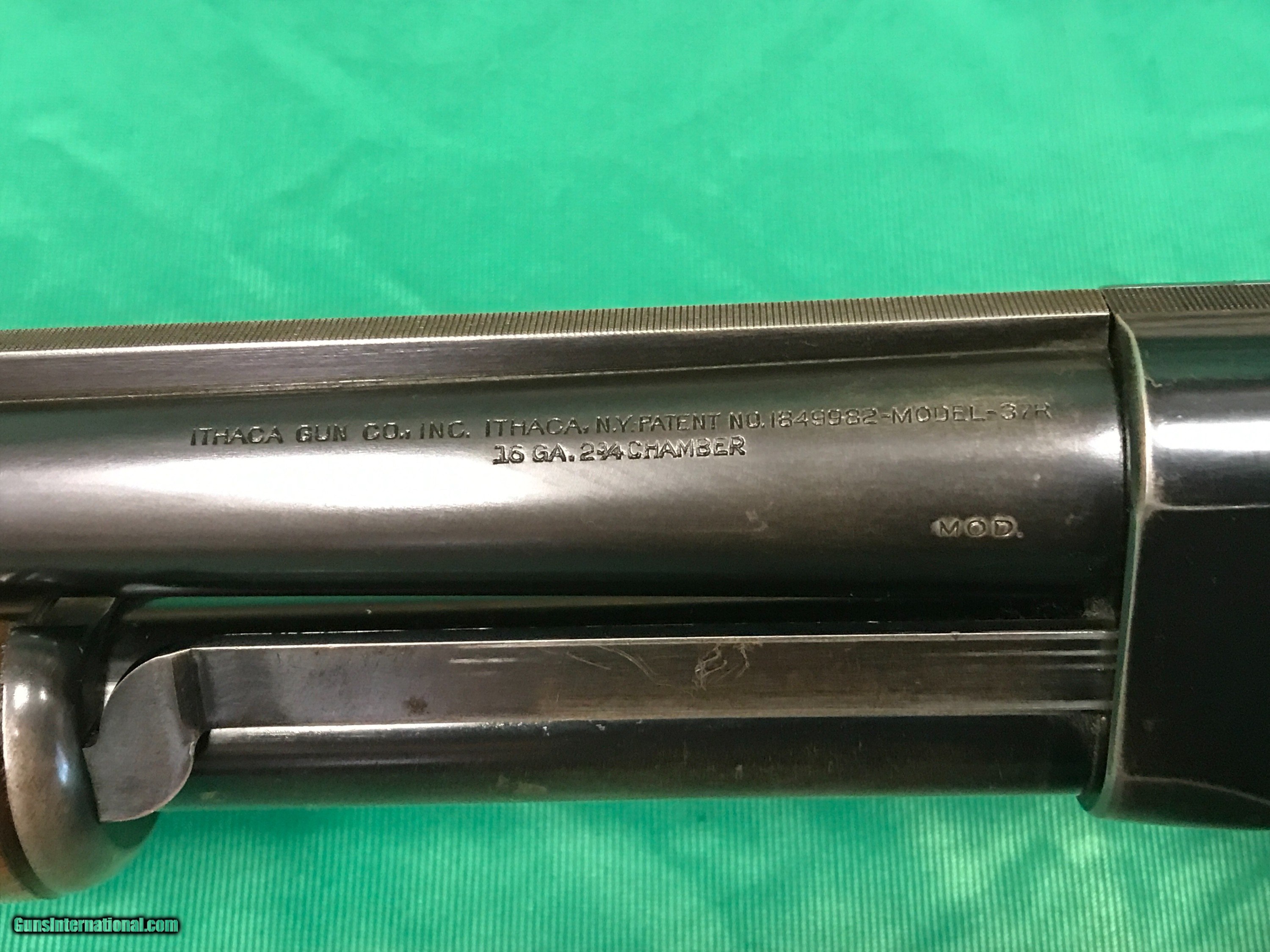 Description: We have an Ithaca 16 Ga 37R that was built in 1940 , the features a 28'' Modified solid rib barrel , Lop is 14'' to a Ithaca hardplate , weight is 5.12 pounds , there are no splits or cracks in the wood , bluing is starting to fade from use , there is no pitting or rust in or on the barrel . More pictures can be had on request , shipping will be 50.00 your FFl Any questions please call or e-mail 607-539-6271 607-227-4088 Thank you Brian Hunt. SOLD |