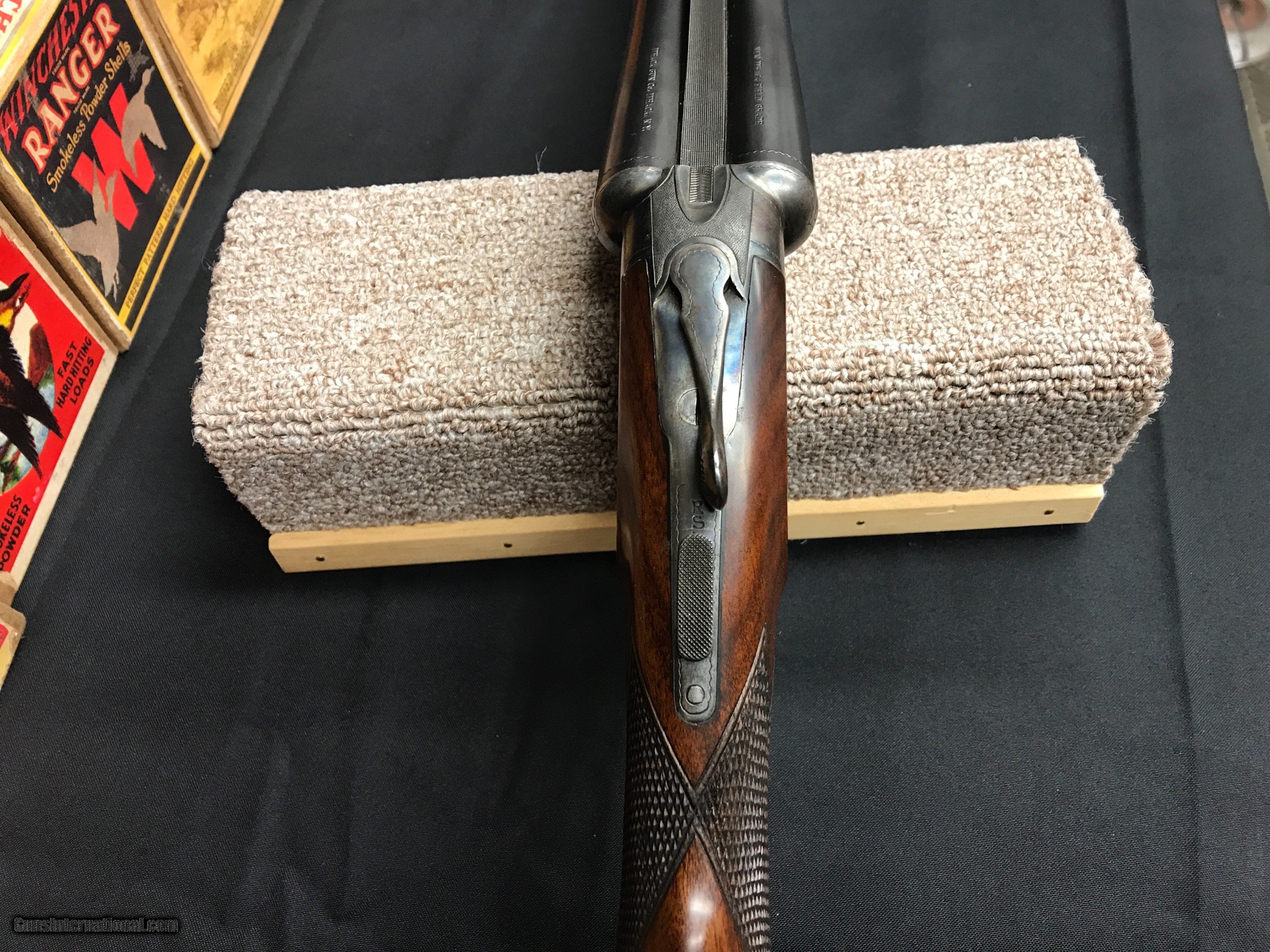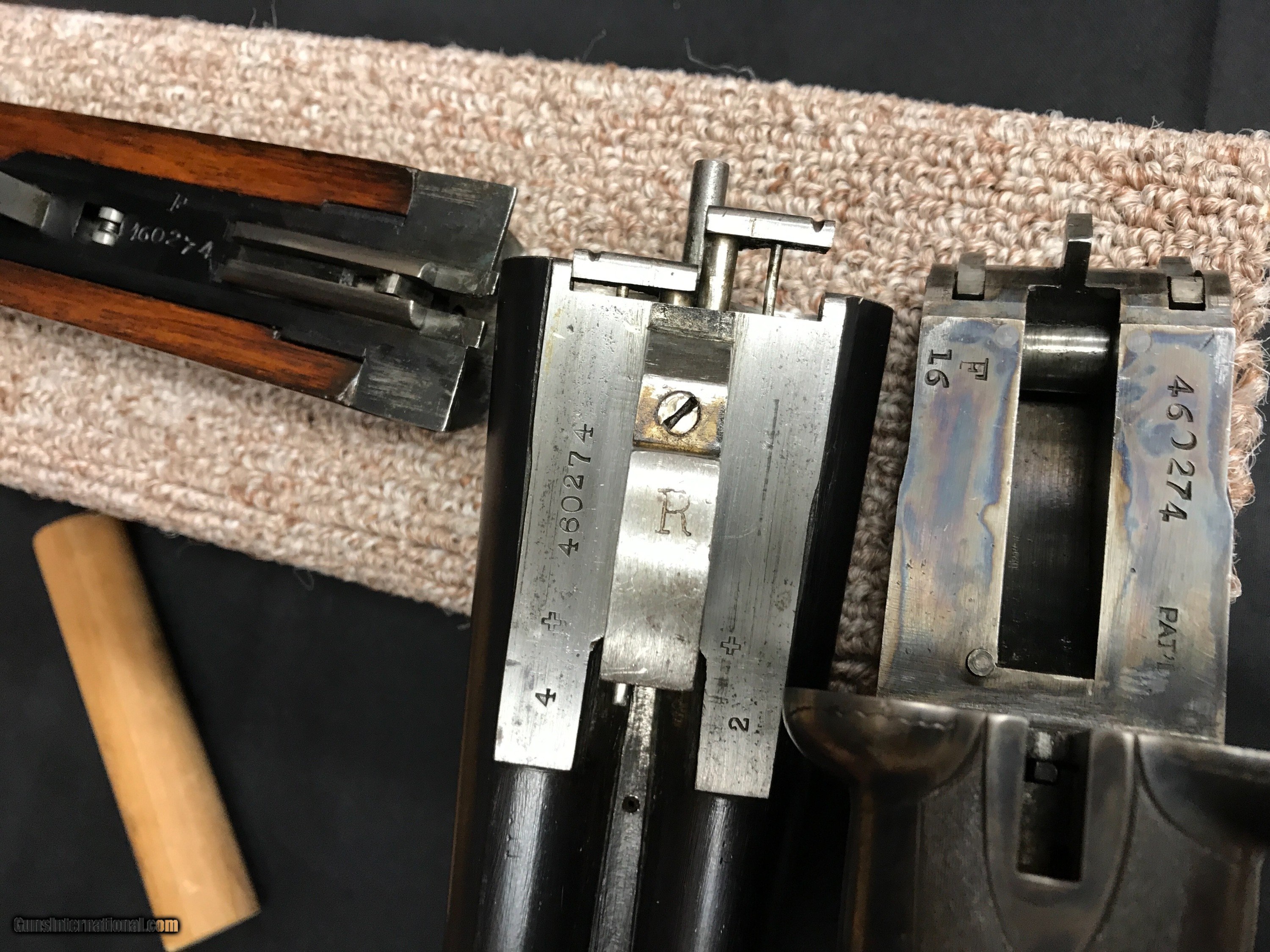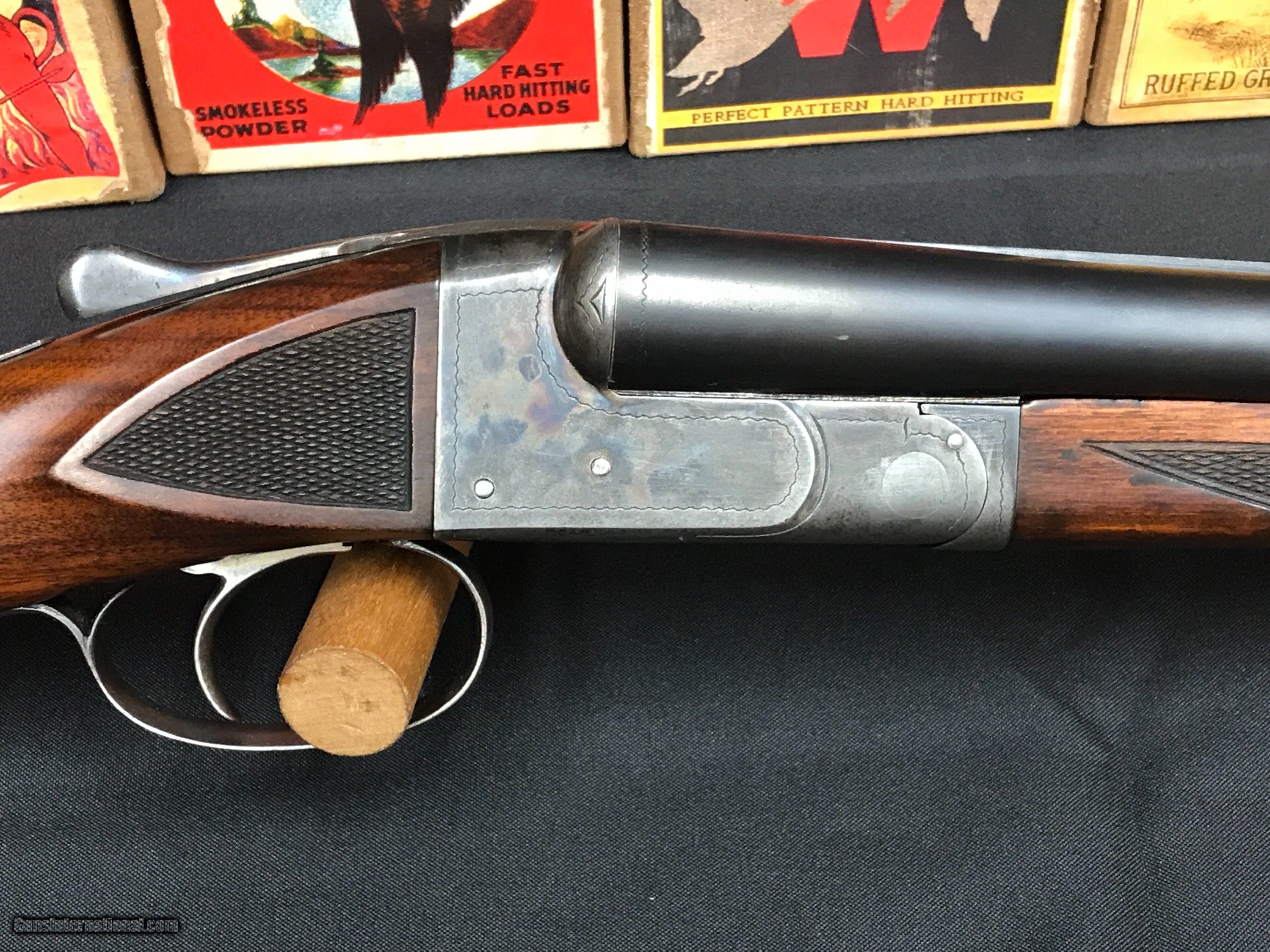 Description: We have a Ithaca 16 GA NID Field Grade that was built in 1935 , the gun features 30'' barrels that are choked x-full - mod .035-.012 , Ejectors , Single Selective Trigger , Double Ivory Beads . Wieght is 7.0 pounds , LOP 14'' to a Ithaca Sunburst Pad , DAC 1 1/2'' DAH 2 7/8'' , checkering is sharp with no cracks or splits in the wood , Bluing is strong , Case color is strong as you can see in the pictures . Bores are bright and it is chamberd at 2 3/4'' . Any questions feel free to call or e-mail 607-227-4088 607-539-6271 . Thank You Brian Hunt SOLD Shotgun Gauge: 16 Gauge Manufacturer: Ithaca Model: NID Barrel Length: 30 Chambers: 2 3/4 Ejectors: yes Condition: very good Metal Condition: very good Wood Condition: very good Bore Condition: very good Barrels: 30 Triggers: single |