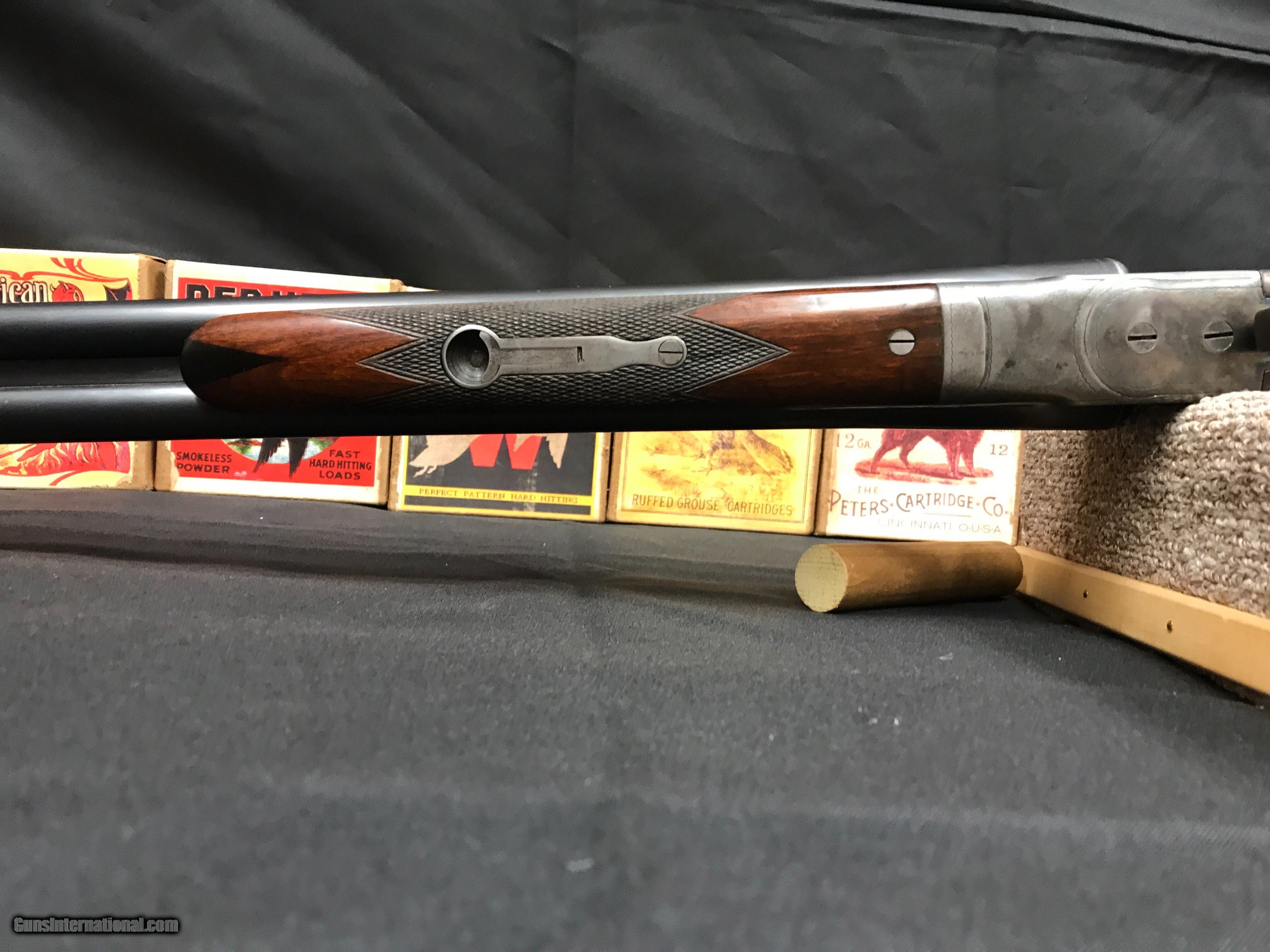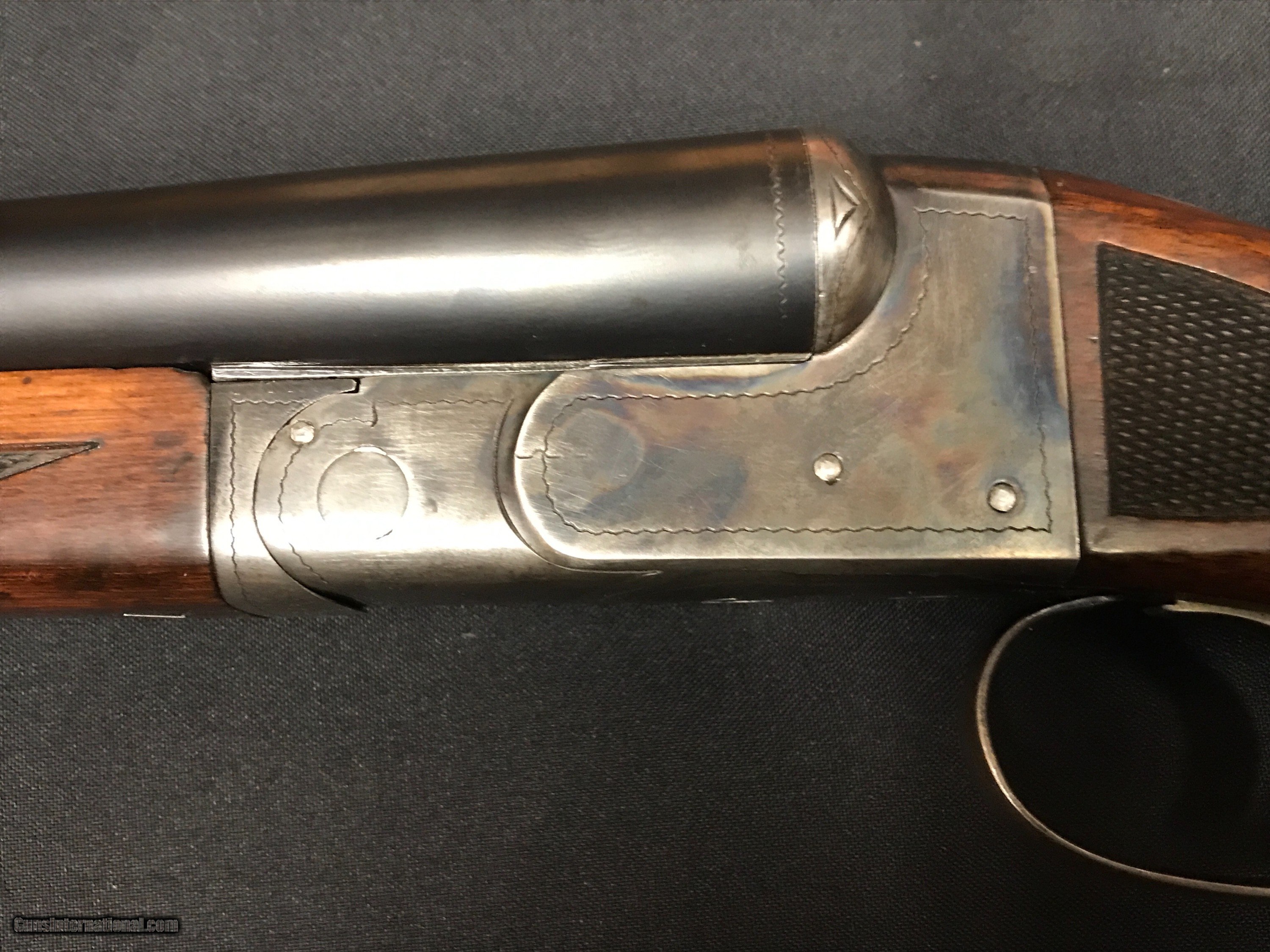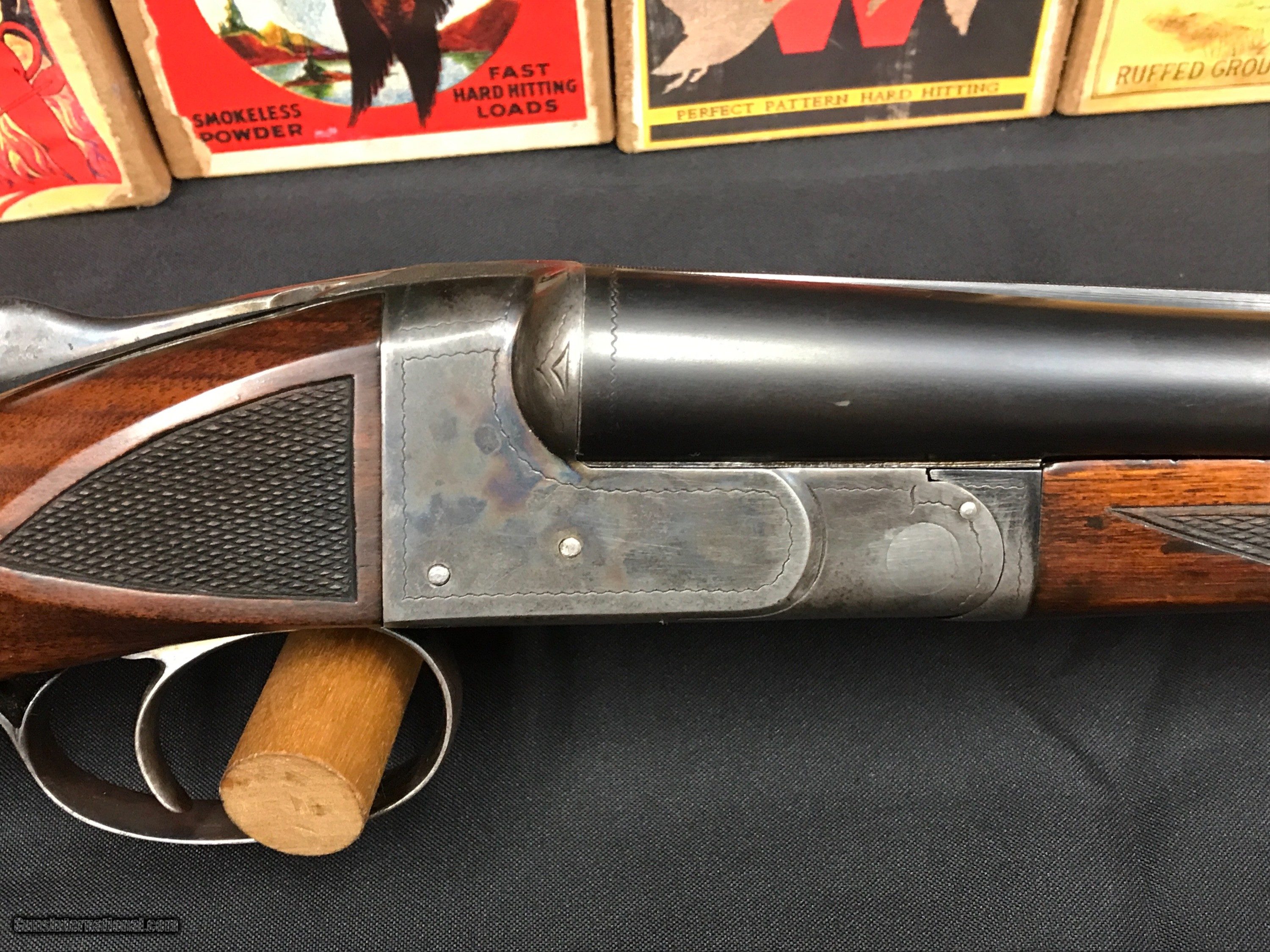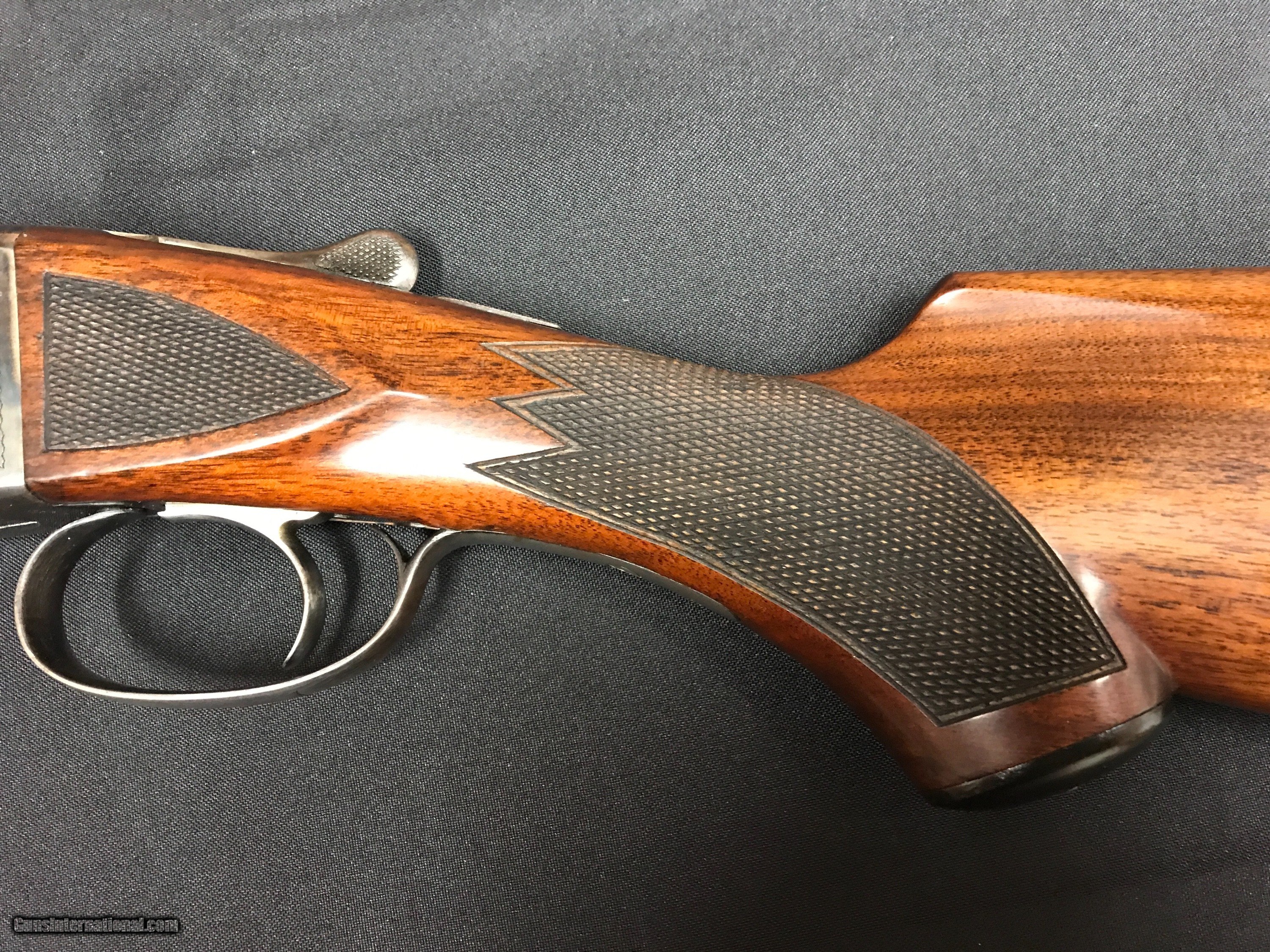 Description: We have a Ithaca 16 GA NID Field Grade that was built in 1935 , the gun features 30'' barrels that are choked x-full - mod .035-.012 , Ejectors , Single Selective Trigger , Double Ivory Beads . Wieght is 7.0 pounds , LOP 14'' to a Ithaca Sunburst Pad , DAC 1 1/2'' DAH 2 7/8'' , checkering is sharp with no cracks or splits in the wood , Bluing is strong , Case color is strong as you can see in the pictures . Bores are bright and it is chamberd at 2 3/4'' . Any questions feel free to call or e-mail 607-227-4088 607-539-6271 . Thank You Brian Hunt SOLD Shotgun Gauge: 16 Gauge Manufacturer: Ithaca Model: NID Barrel Length: 30 Chambers: 2 3/4 Ejectors: yes Condition: very good Metal Condition: very good Wood Condition: very good Bore Condition: very good Barrels: 30 Triggers: single |