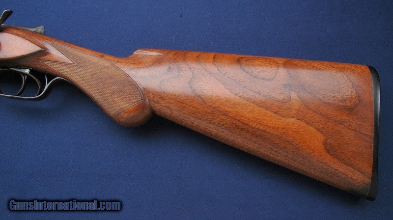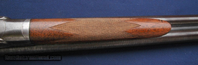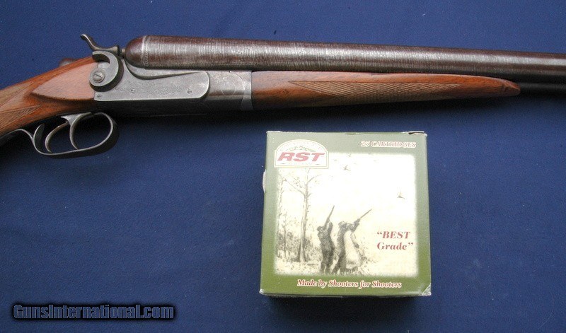 Description: Ithaca Gun 12ga Hammer Double, Damascus, very nice condition. Tight on face and locks up like new. Professionally disassembled and cleaned/oiled with bright shiny bores. Nice damascus pattern and nice wood that appears to have been professionally refinished and the checkering freshened. All screws timed and excellent original buttplate. Great dimensions, manufactured in 1899. Fantastic shooter with RST shells or to add to your collection. 30" barrels have 2 3/4" chambers and are both choked FULL. Box of RST shown as an example of what to shoot in this gun, not included in sale. In order to protect your investment, all long guns over $500 must be shipped in a hard case. Minimum shipping at this level is $55 and includes the hard case. Shipping cost could increase depending on value or weight of the firearm. For long guns less than $500, we still recommend the purchase of a hard case, again to protect your investment. These numbers are for shipping to the lower 48. There is also a 3% surcharge for customers using a credit card on internet sales. Thank you! SOLD |