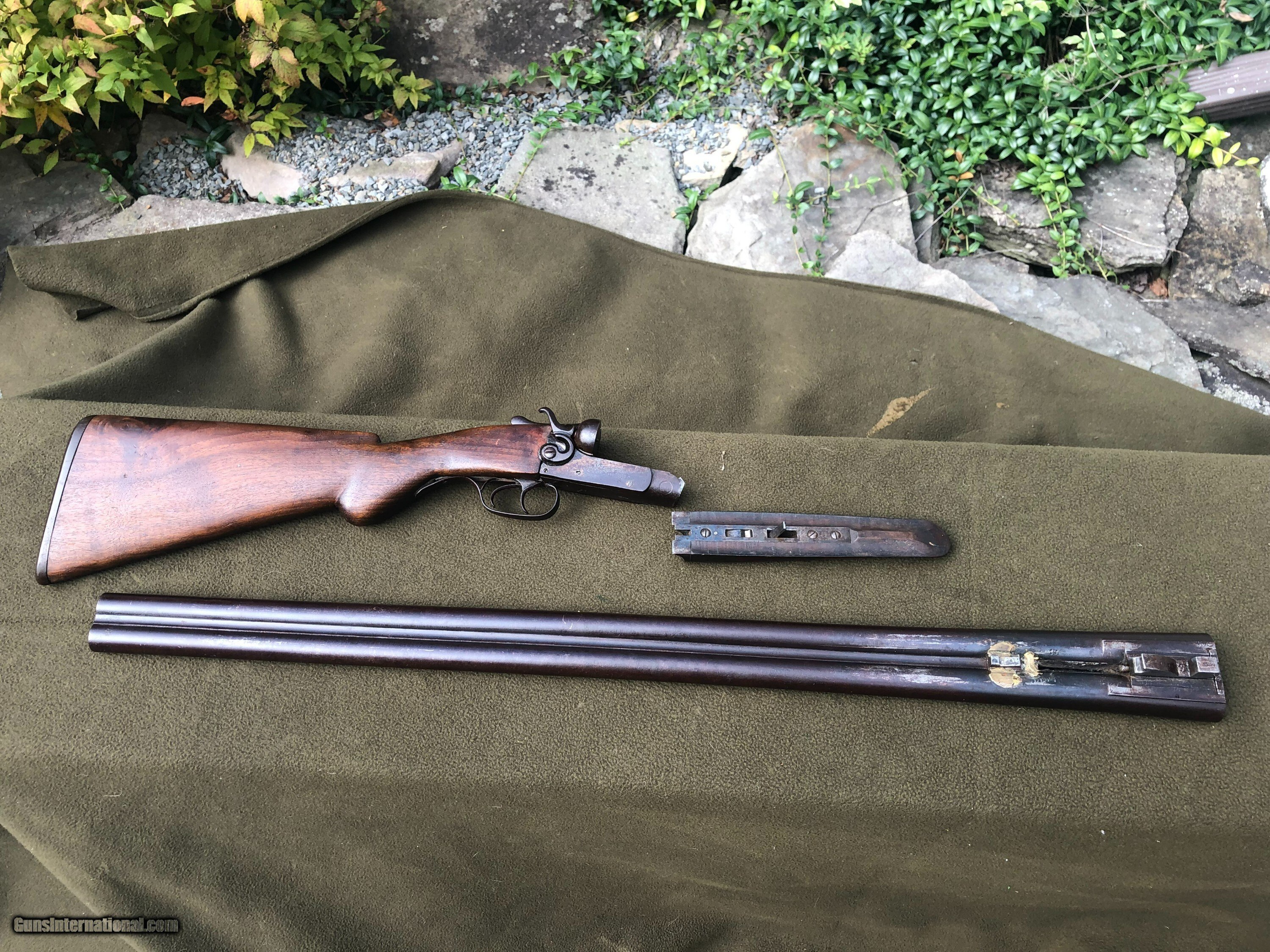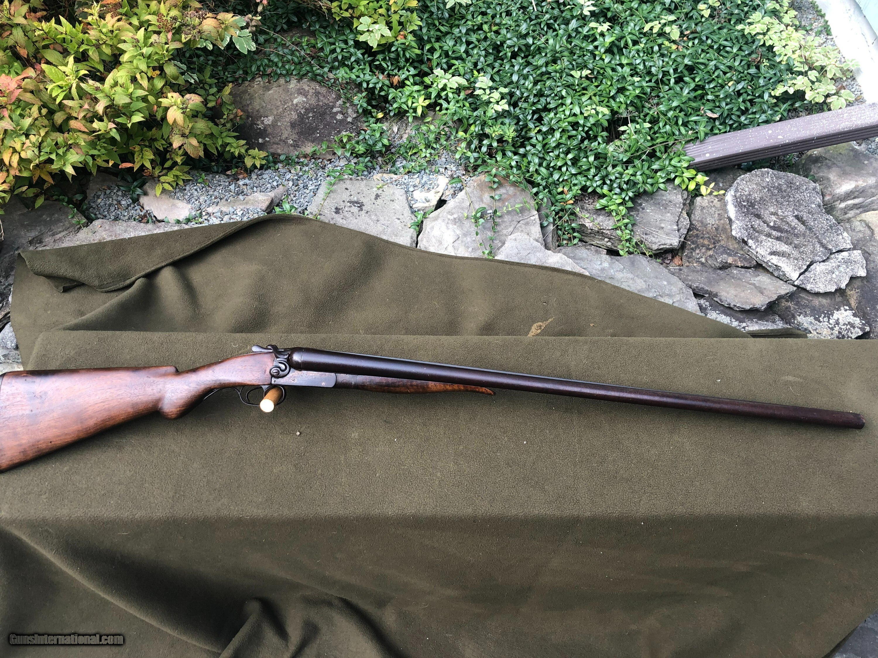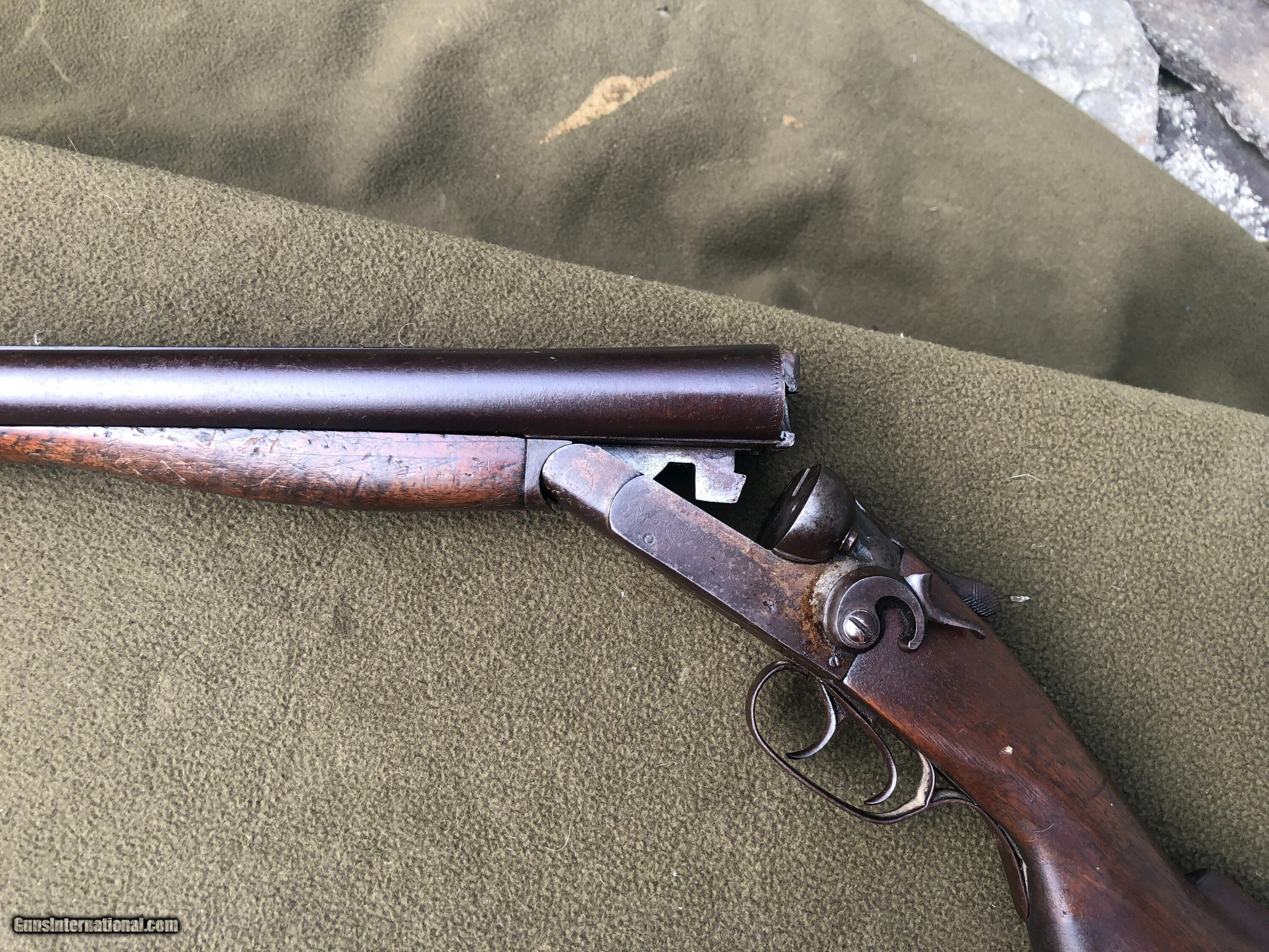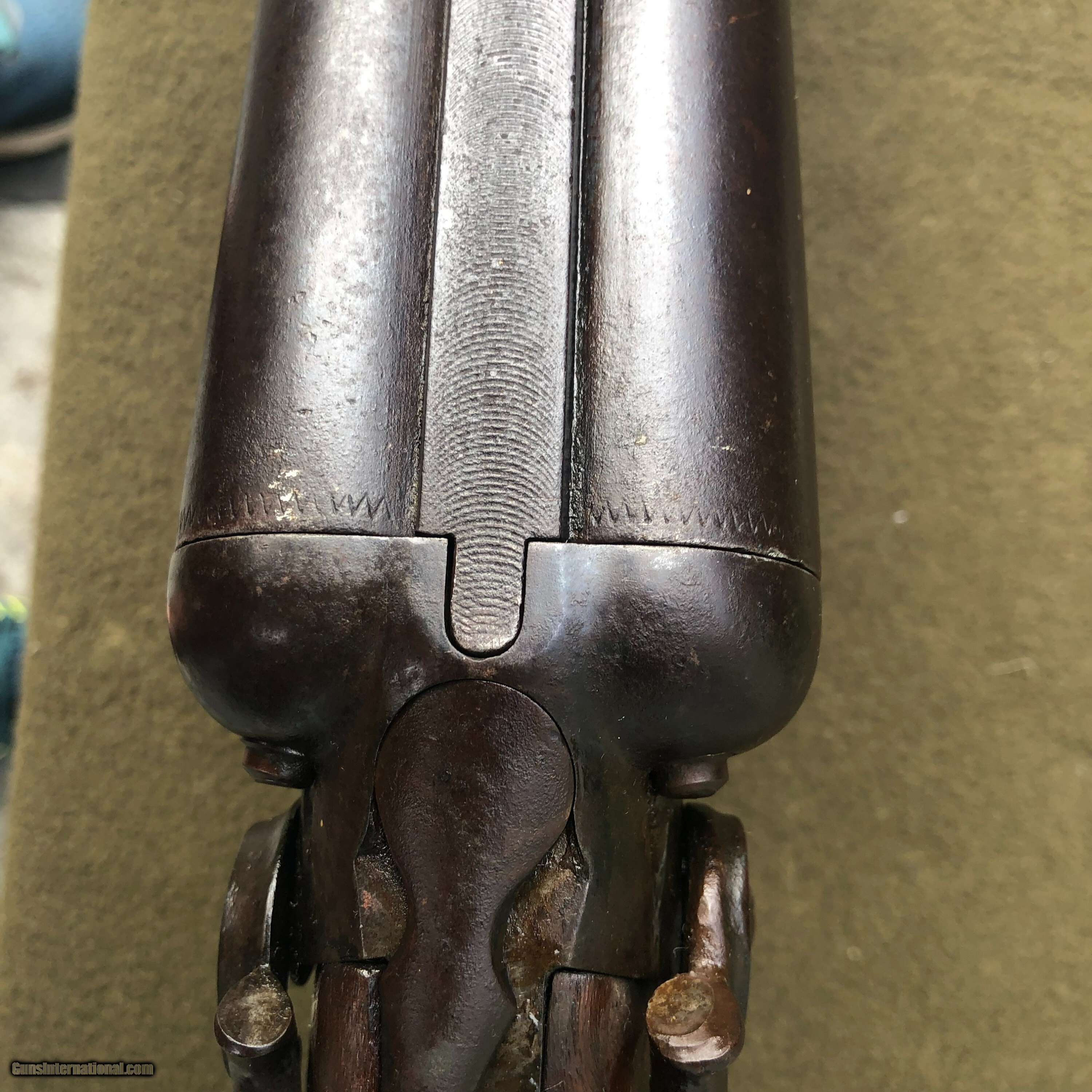 ANTIQUE ITHACA 12ga.DOUBLE BARREL SHOTGUN DAMASCUS BARRELS