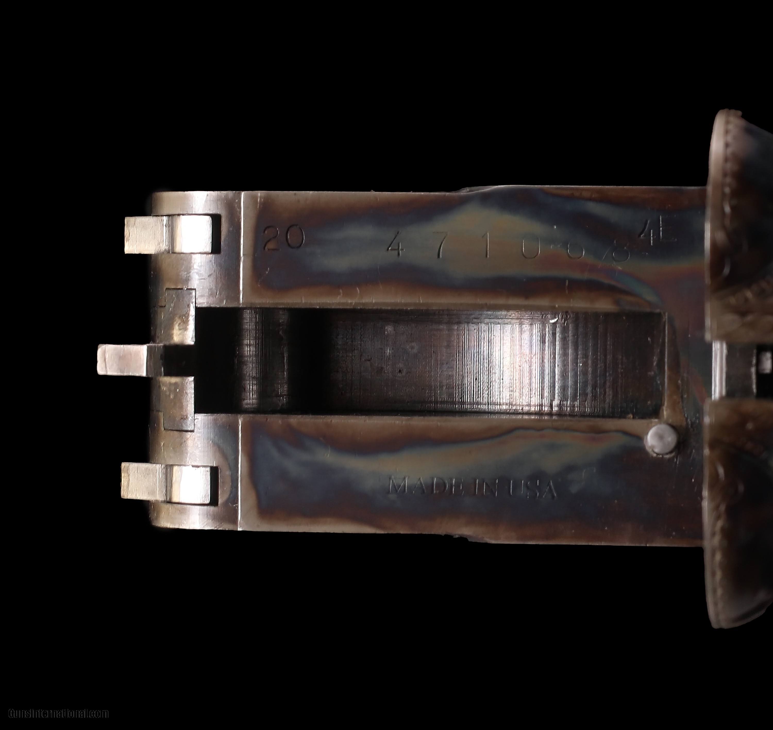 Description: Beautiful and AS NEW Ithaca Classic Doubles 4E 20ga gun. In the desirable "471,xxx" SN range. Made in the U.S.A by Steve Lamboy and his firm, this gun made with 28" Krupp Fluid Steel barrels, slim beavertail forend, gold plated double triggers, auto ejectors, auto safety. The casehardened frame is nicely engraved with Grouse on left, Pheasant on right. Beautifully figured straight grip buttstock with its original ICD buttplate. Gun is housed in its original shipping box with matching numbered end label. This gun remains in "As new" original condition and appears factory test fired only. Virtually all original finishes remaining throughout. These dynamic guns are getting more collectible by the day and are seldon offered for sale. Priced at $7995 plus shipping to your FFL. This is a fantastic American made double with a very bright future! Please dont hesitate to contact me with any questions or reasonable offers at (704) 280-2382 or via PM on this site. SOLD Shotgun Gauge: 20 Gauge Manufacturer: Ithaca Class Doubles Model: 4E Serial Number: 471068 Barrel Length: 28 Chambers: 2-3/4 Ejectors: Yes Condition: As new Metal Condition: As new Wood Condition: As new Bore Condition: Brilliant and shiny Barrel Type: Krupp Triggers: Double Triggers Stock Comb: 1-3/8 Stock Heel: 2-1/4 Fore End: Slim beavertail forend Butt Pad: Original ICD BP LOP: 15 Weight: 5lbs 15oz Choke Left: Modified Choke Right: Improved Cylinder Extras: Original shipping box |