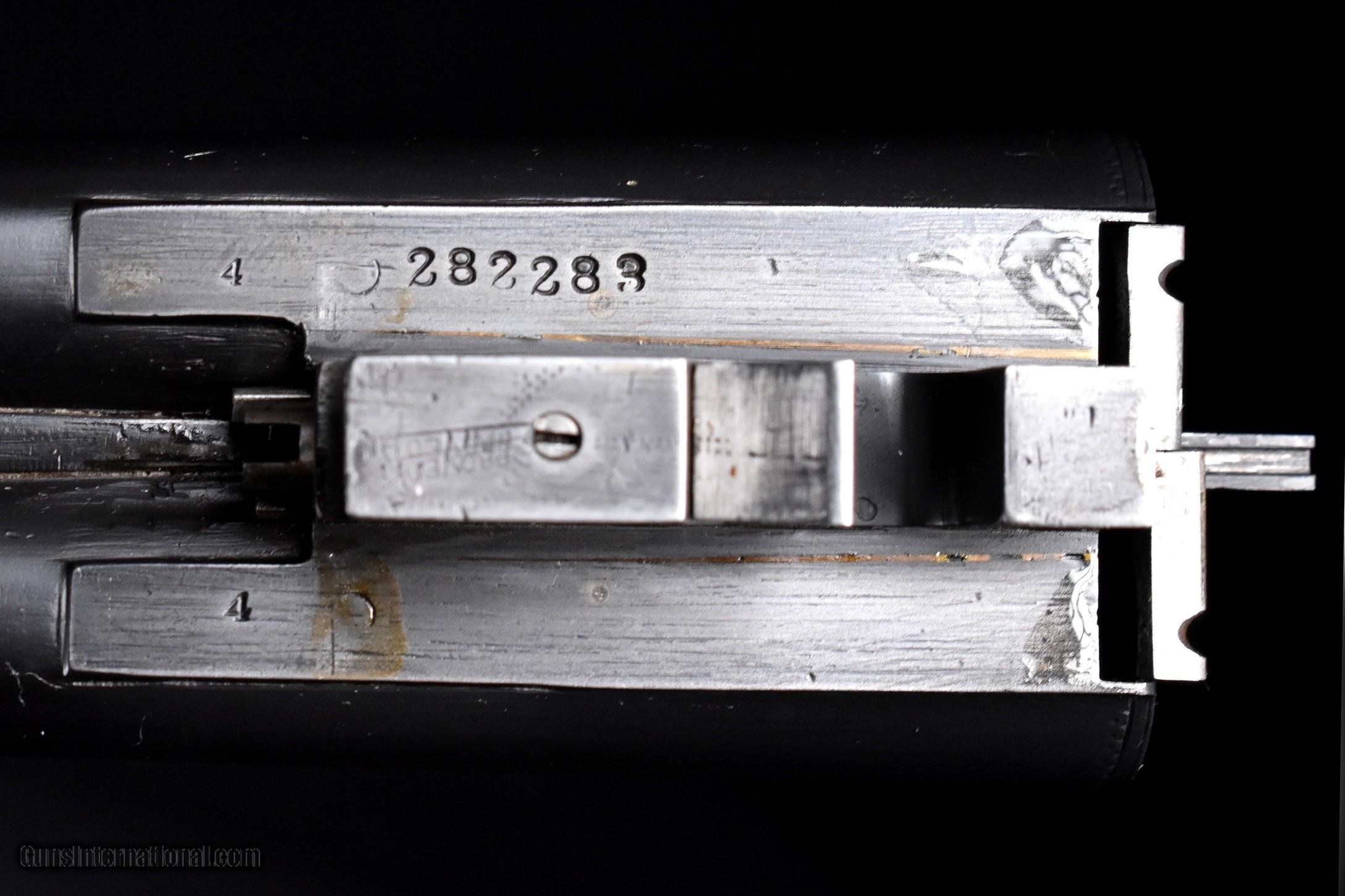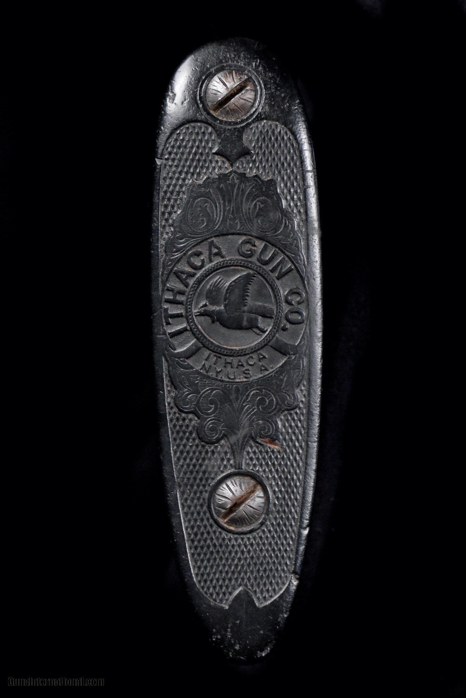 Description: Beautiful fine original condition Ithaca Grade 3E 20ga Flues. This gun, likely Latham Engraved, is easily the finest twenty gauge Ithaca I have offered in some time. The gun made with 28" barrels, splinter forend with engraved push button release, auto ejectors, auto safety, capped pistol grip buttstock with original Ithaca Gun Co. monogrammed buttplate The gun is finely engraved in Grade 3 Pattern with floral scroll and large flying goose on bottom. Finely checkered stocks. This gun remains in very fine original condition. Barrels retain about 95% original blue with beginning thinning towards muzzels. Receiver retains more than 70% nice original high luster case colors. Engraving is quite sharp and near perfect. Stocks are excellent and retain nearly all of their original finish with checkering nice and crisp. Overall, the stocks are excellent with only minor handling marks and a small area of impression in the checkering which does not detract in any way. Bores are brilliant and shiny. Mechanics are crisp. This gun is priced at $4895 plus shipping to your FFL. If you have been looking for a nice original small bore Ithaca, look no further - this is a great little gun! Please dont hesitate to contact me at (704) 280-2382 or via PM on this site with any questions or reasonable offers. SOLD Curio/Relic: Yes Shotgun Gauge: 20 Gauge Manufacturer: Ithaca Model: Flues Grade 3E Serial Number: 282283 Barrel Length: 28 Chambers: 2-3/4 Ejectors: Yes Condition: Excellent Metal Condition: Excellent Wood Condition: Excellent Bore Condition: Brilliant and shiny Triggers: Double triggers Stock Comb: 1-5/8 Stock Heel: 2-1/4 Fore End: Splinter with push button Butt Pad: Original Ithaca Gun Co. Buttpalte LOP: 14-1/4 Weight: 6lbs 0oz Choke Left: .023 (Full) Choke Right: .022(Full) Minimum Wall Thickness Left: over .030 Minimum Wall Thickness Right: over .030 |