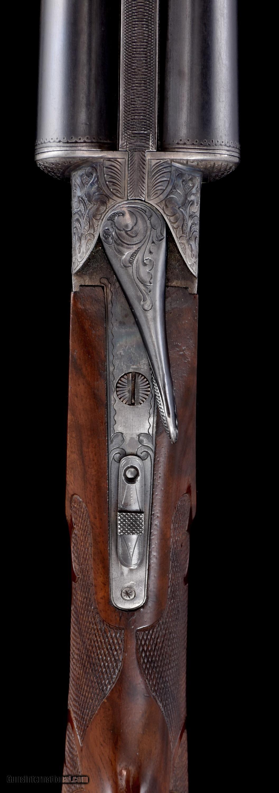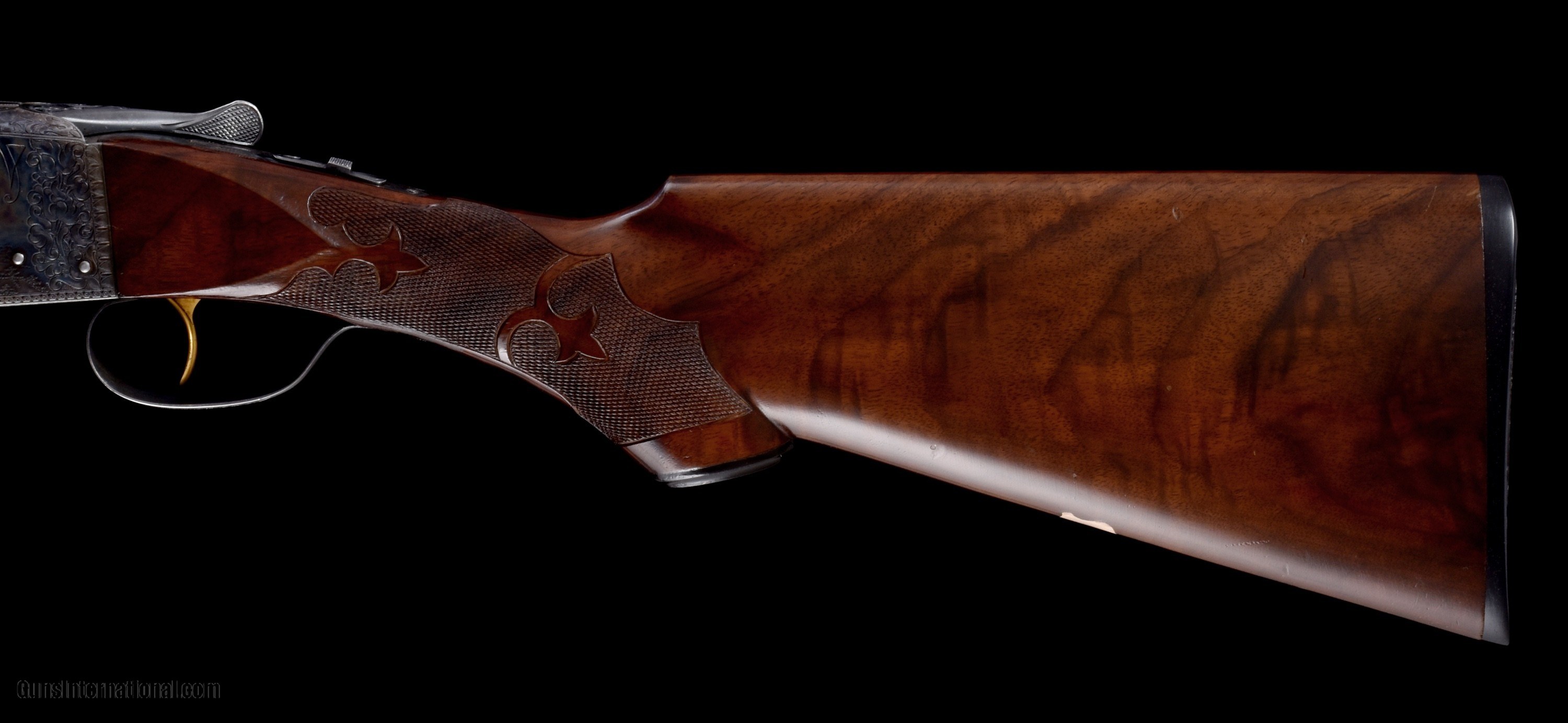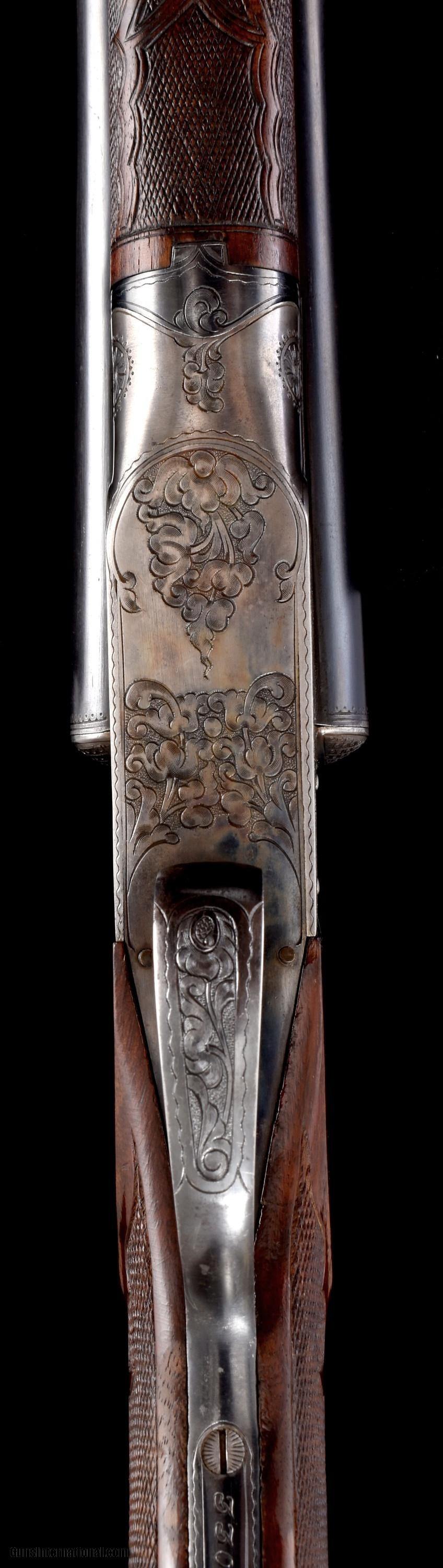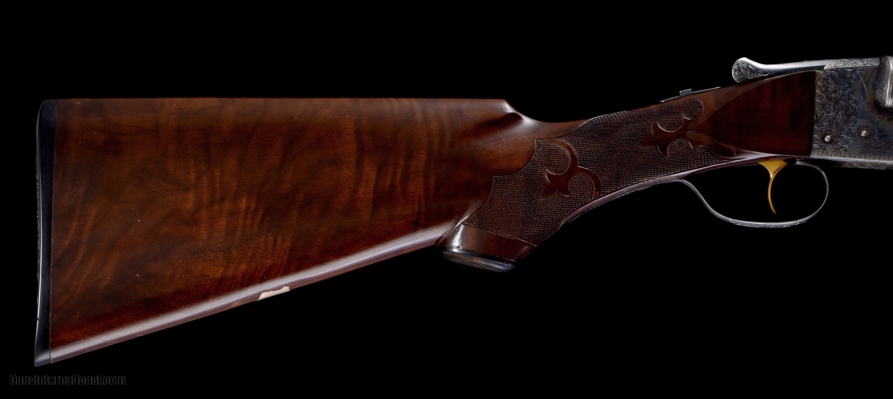 Description: An absolutely dandy Flues Model Grade 4E 16ga gun. This gun built with 28" Krupp steel barrels, original splinter forend, Gold plated SST, auto ejectors. Frame is beautifully engraved and case colored as seen in the photos. Capped pistol grip buttstock with its original Ithaca Gun Co. Buttplate. Gun remains in exceptional all original condition. Barrels with about 97% original blue. Case colors are deep, bold and vivid with near full coverage, just some toning at carry point on bottom of frame. Stocks are sound and excellent with more than 95% original finishes remaining. Bores are briliant and shiny. Mechanics are excellent. Simply put, this is the nicest 4E 16ga Ithaca I have handled. The gun is priced at $6495 plus shipping to your FFL. Please dont hesitate to contact me with any questions or reasonable offers at (704) 280-2382 or via PM on this site. Curio/Relic: Yes Shotgun Gauge: 16 Gauge Manufacturer: Ithaca Model: 4E Serial Number: 330025 Barrel Length: 28 Bore Info: Brilliant and shiny Chambers: 2-1/2 Ejectors: Yes Condition: Excellent and all original Metal Condition: Excellent to near mint Wood Condition: Excellent and original Bore Condition: Brilliant and shiny Barrels: Krupp Triggers: Factory Gold plated SST Stock Comb: 1-5/8 Stock Heel: 2-1/2 Fore End: Splinter Butt Pad: Original HRBP LOP: 14-1/4 Weight: 7lbs. 5oz Choke Left: .017 Choke Right: .007 Minimum Wall Thickness Left: Over .030 Minimum Wall Thickness Right: Over .030 Price: $6,495.00 Shipping: $55.00 Buy Now Contact Seller |